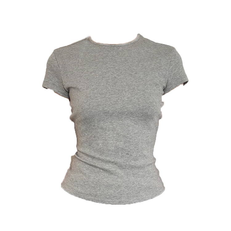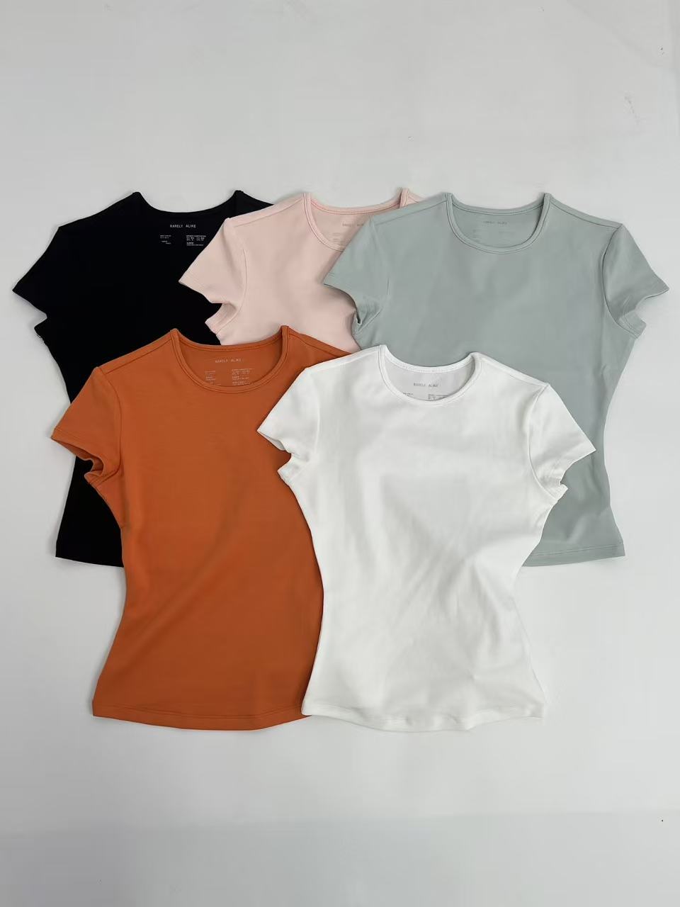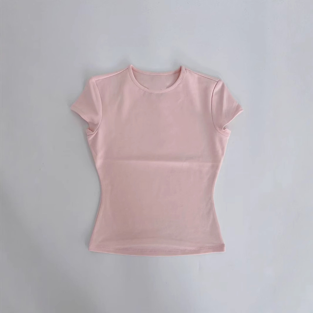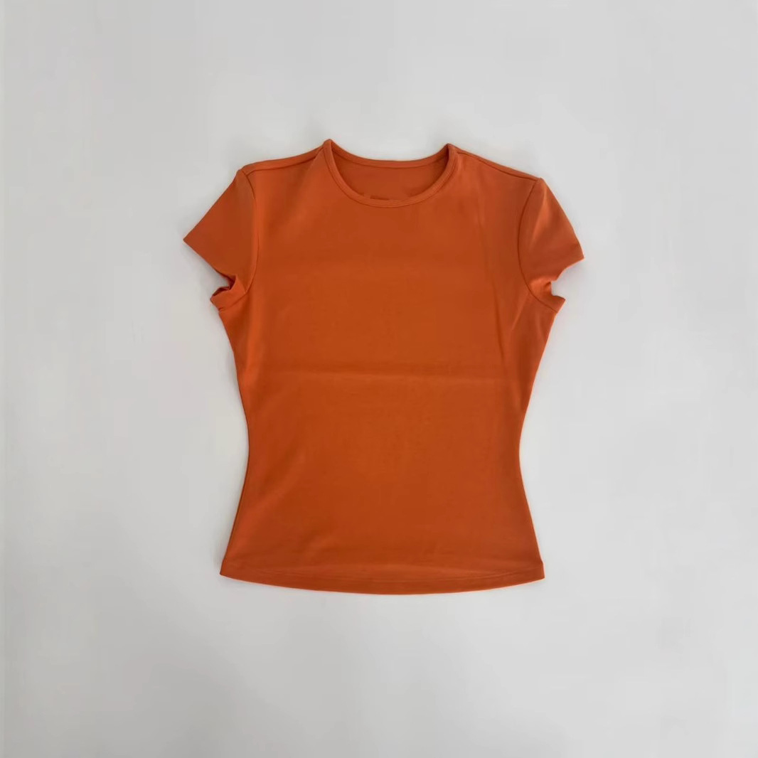 여름 도파민 "모래 시계" 기본 작은 둥근 목 짧은 소매 어깨 단색 티셔츠 여성의 올바른 버전스토어 가기