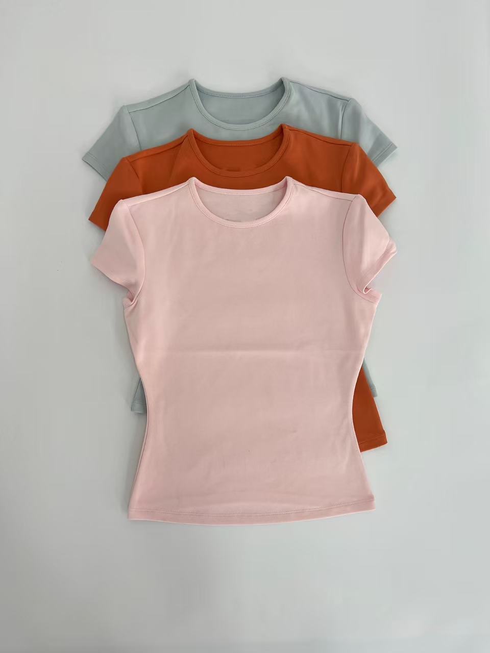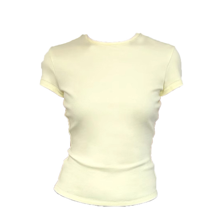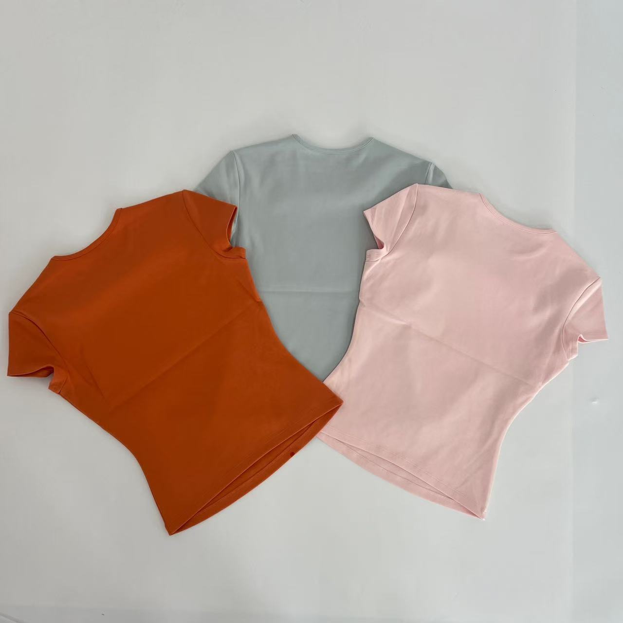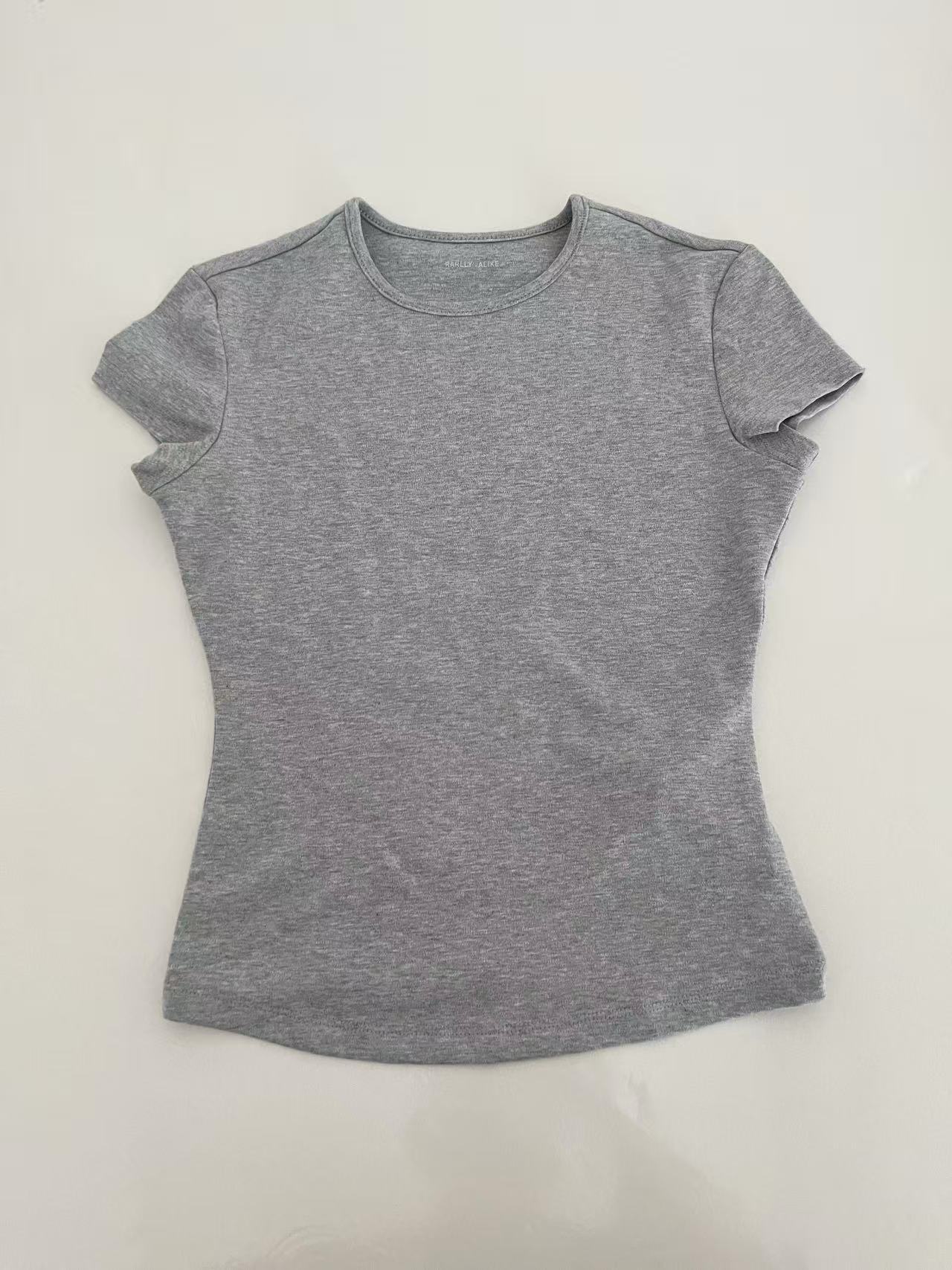 여름 도파민 "모래 시계" 기본 작은 둥근 목 짧은 소매 어깨 단색 티셔츠 여성의 올바른 버전스토어 가기