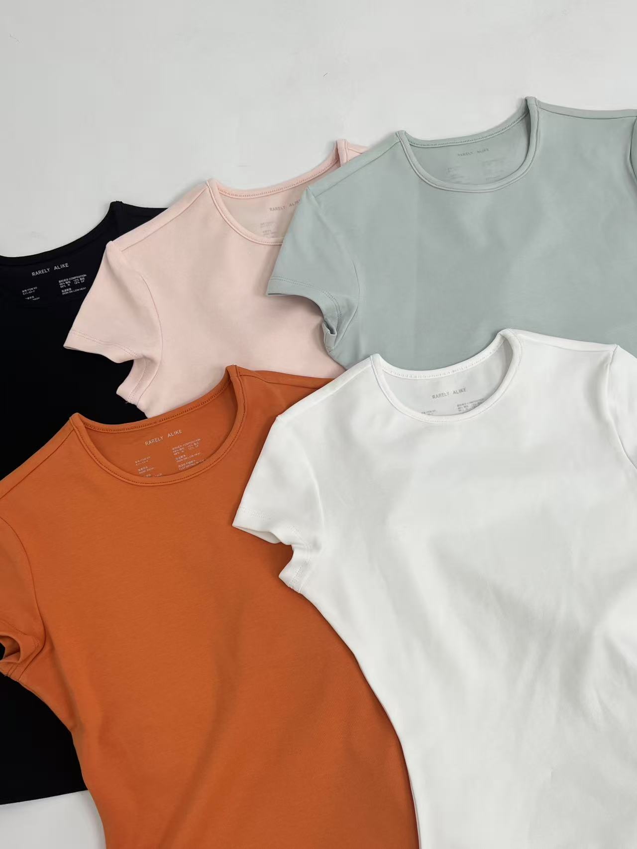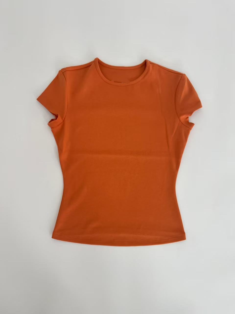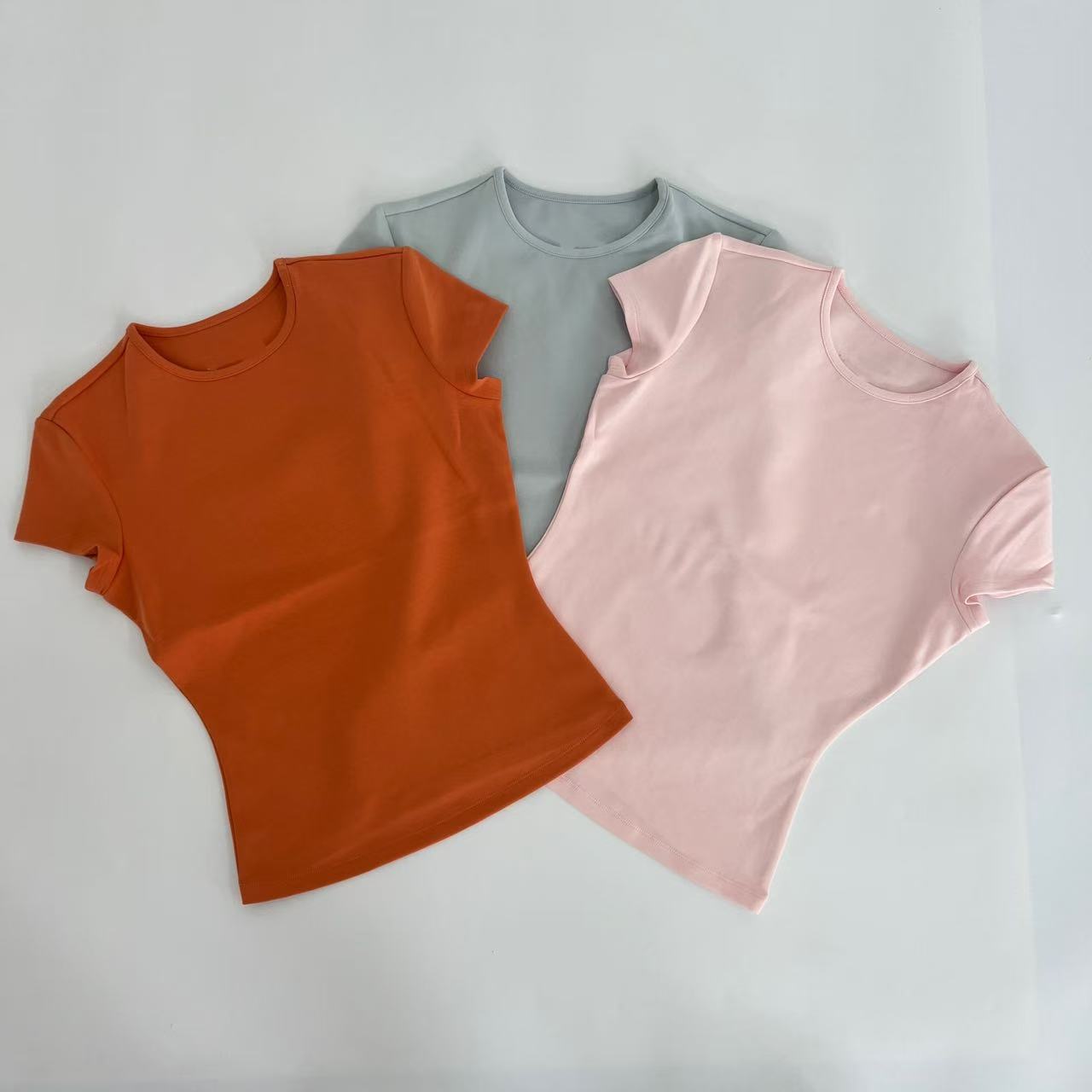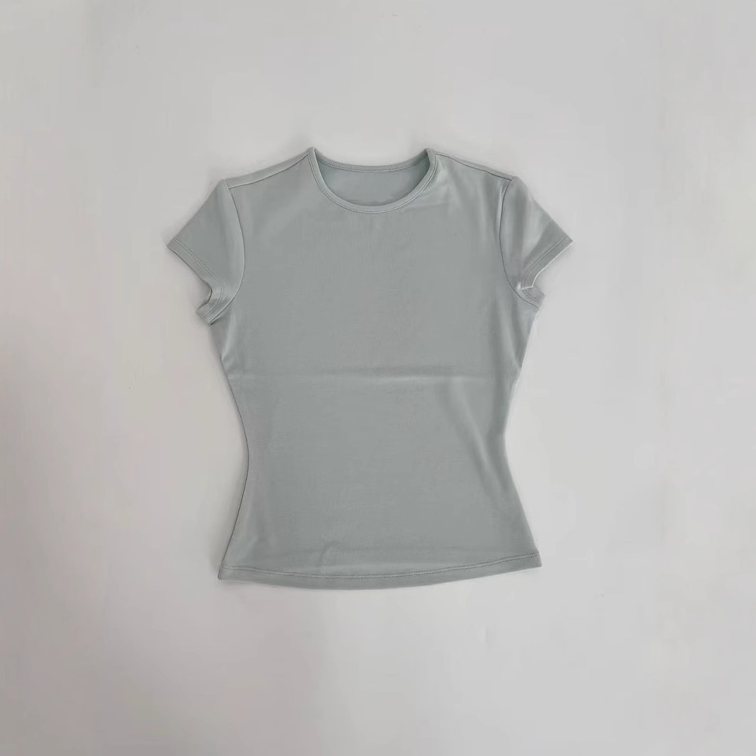 여름 도파민 "모래 시계" 기본 작은 둥근 목 짧은 소매 어깨 단색 티셔츠 여성의 올바른 버전스토어 가기