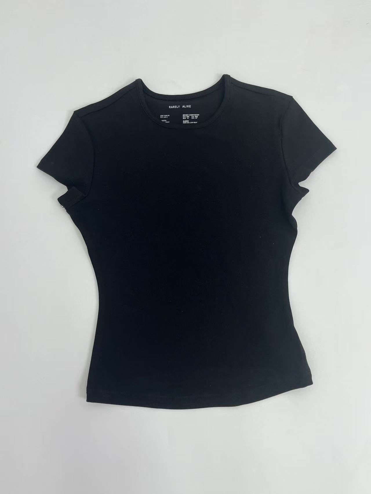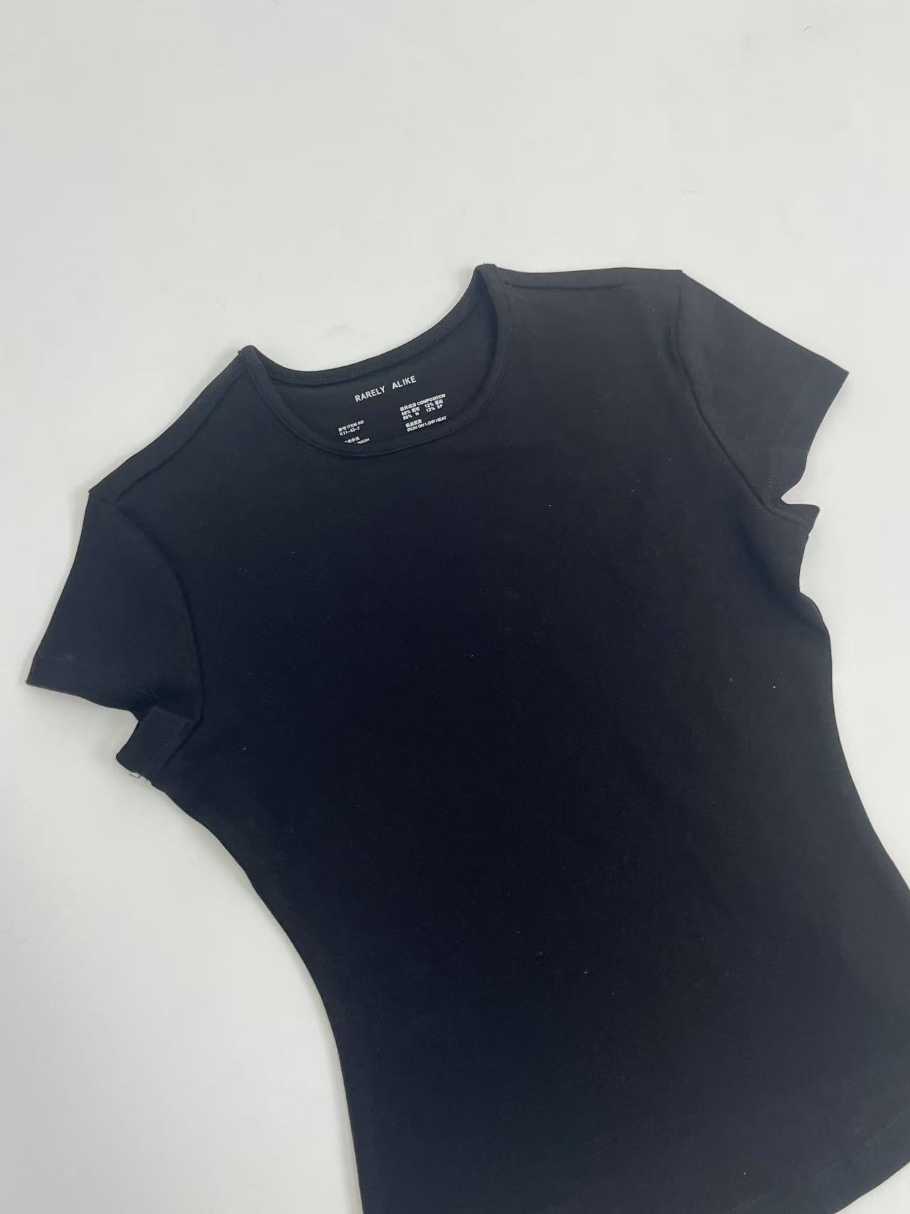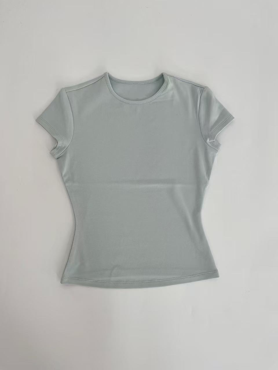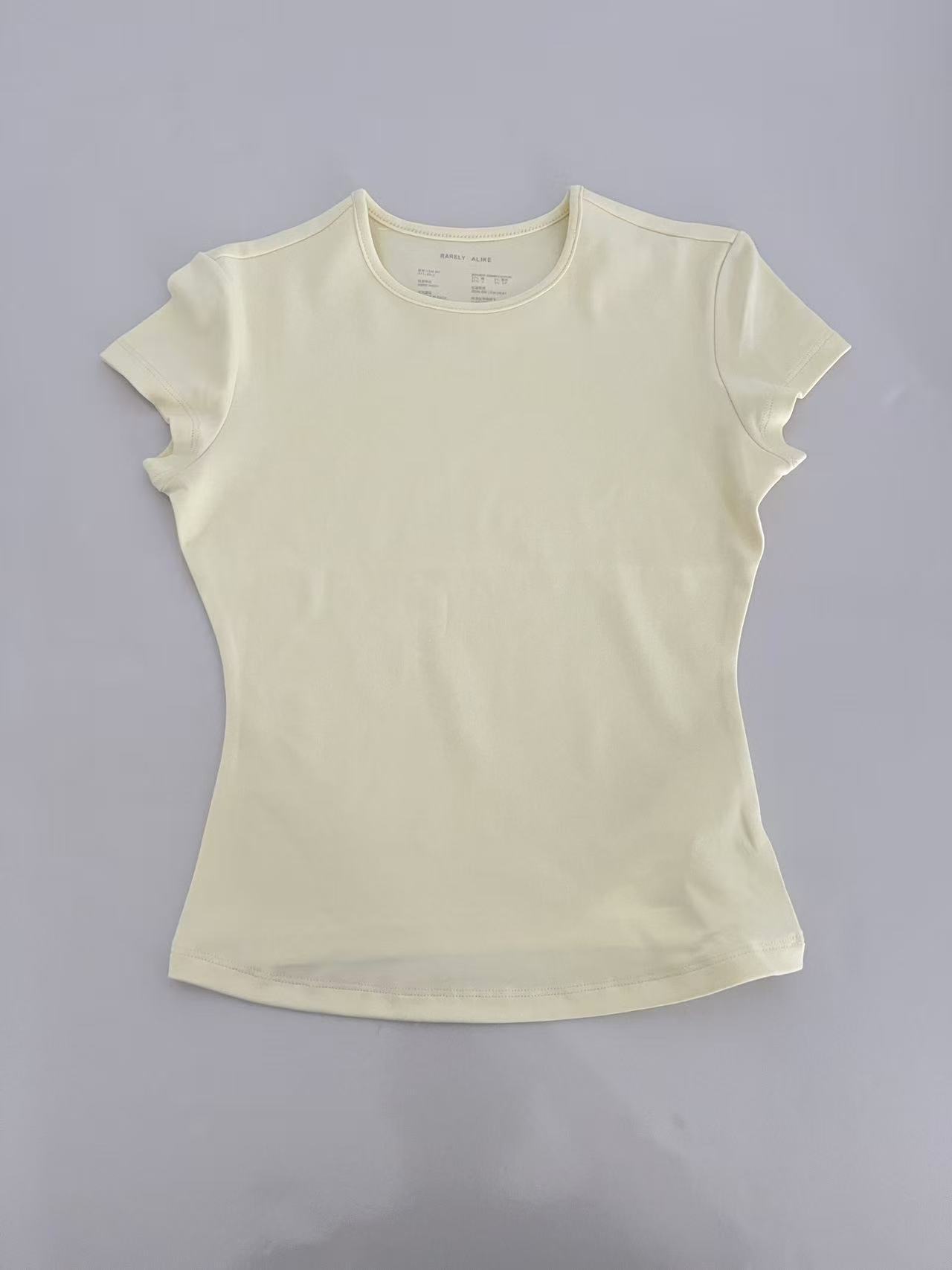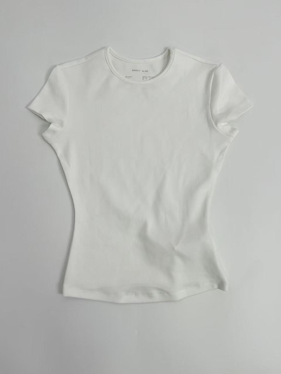 여름 도파민 "모래 시계" 기본 작은 둥근 목 짧은 소매 어깨 단색 티셔츠 여성의 올바른 버전