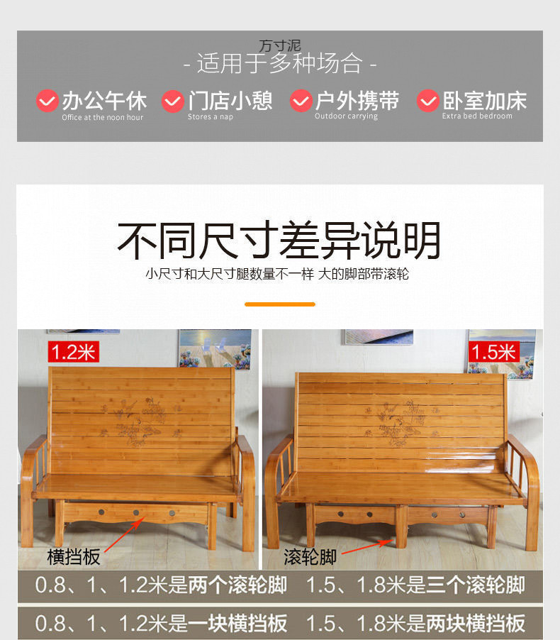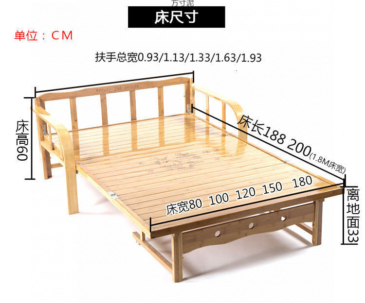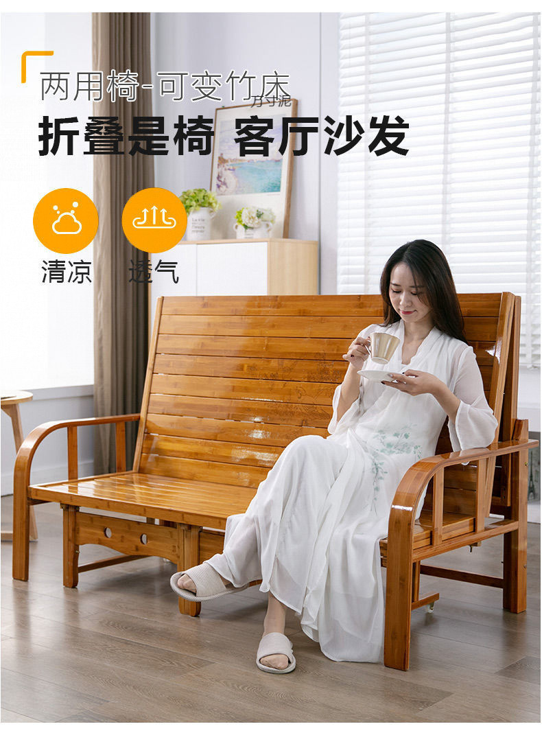 대나무 소파 베드 접이식 이중 목적 더블 싱글 침대 성인 가정 점심 시간 쿨 침대 다기능 간단한 접이식 침대스토어 가기