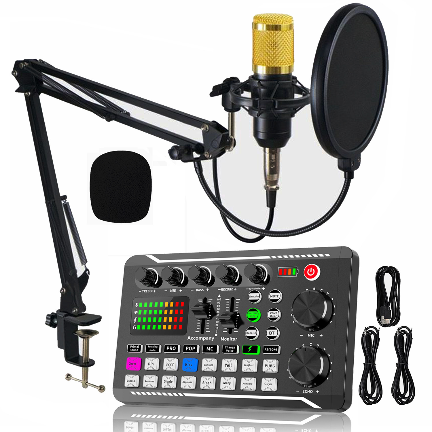 크로스보더 영어 사운드 카드 bm800 마이크 세트 휴대폰 사운드 카드 라이브 방송 팟캐스트 F998MAX 풀세트