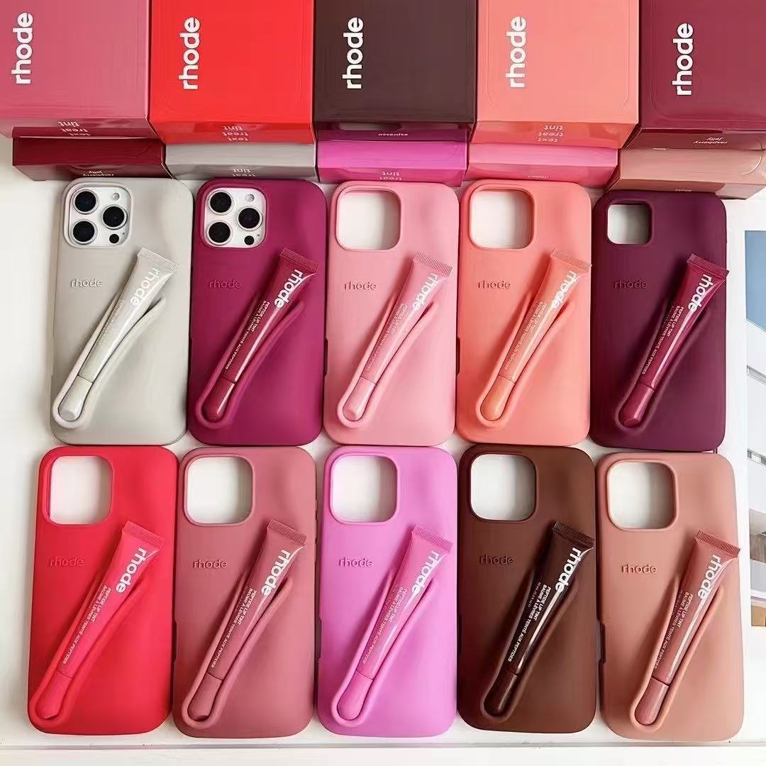 iPhone16 립스틱 컬러 실리콘 휴대폰 케이스에 적합한 하이엔드 패션 로드 도파민 헤일리 같은 립스틱