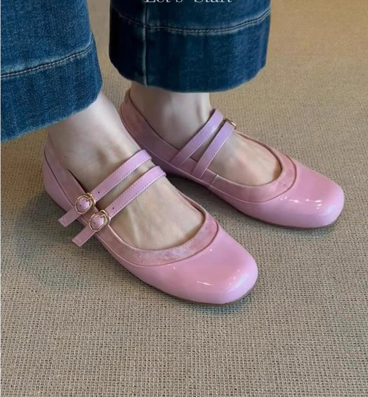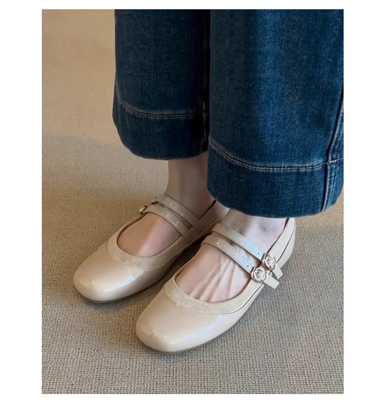 부드러운 가죽 버전 ~ 부드러운 가죽 플랫 프렌치 스타일 라운드 토 버튼 메리 제인 여성용 복고풍 펌프 발레 슈즈스토어 가기