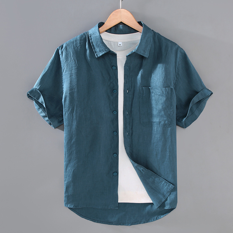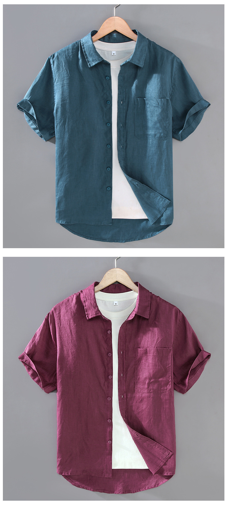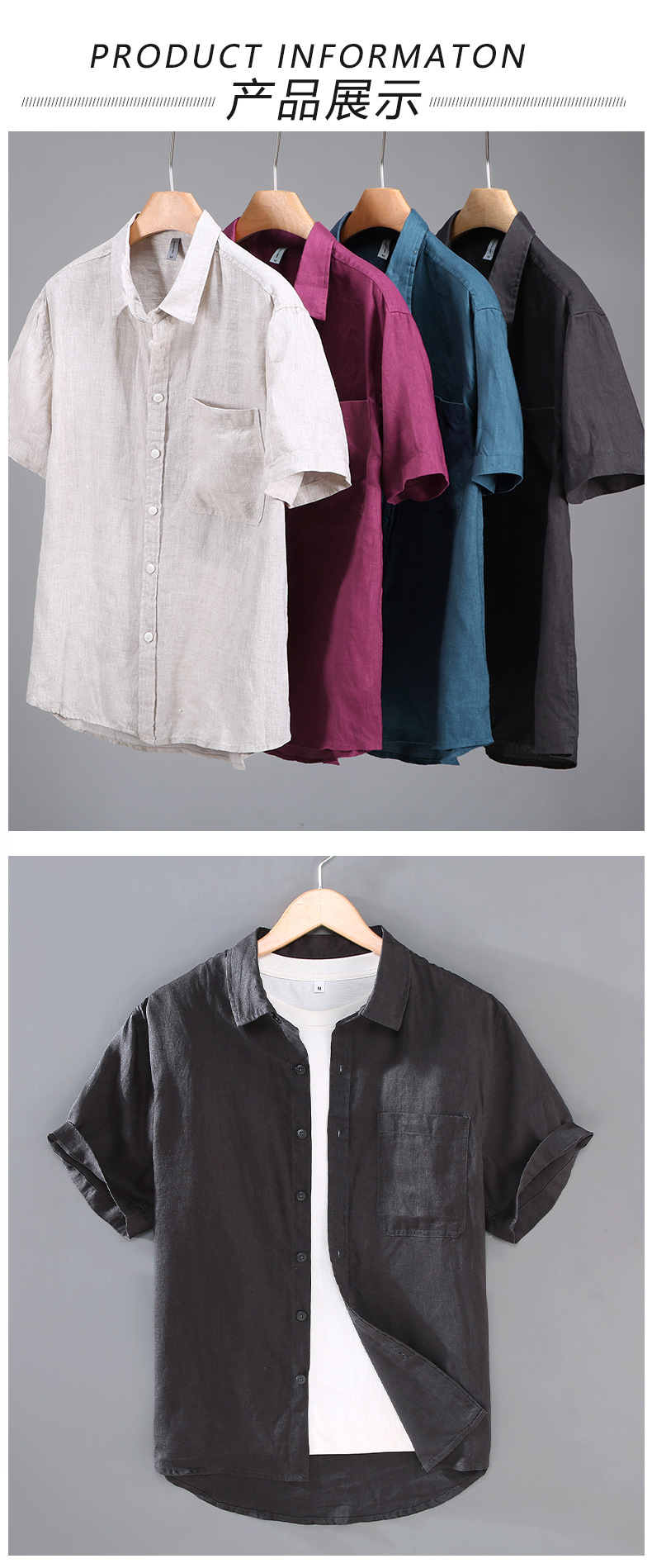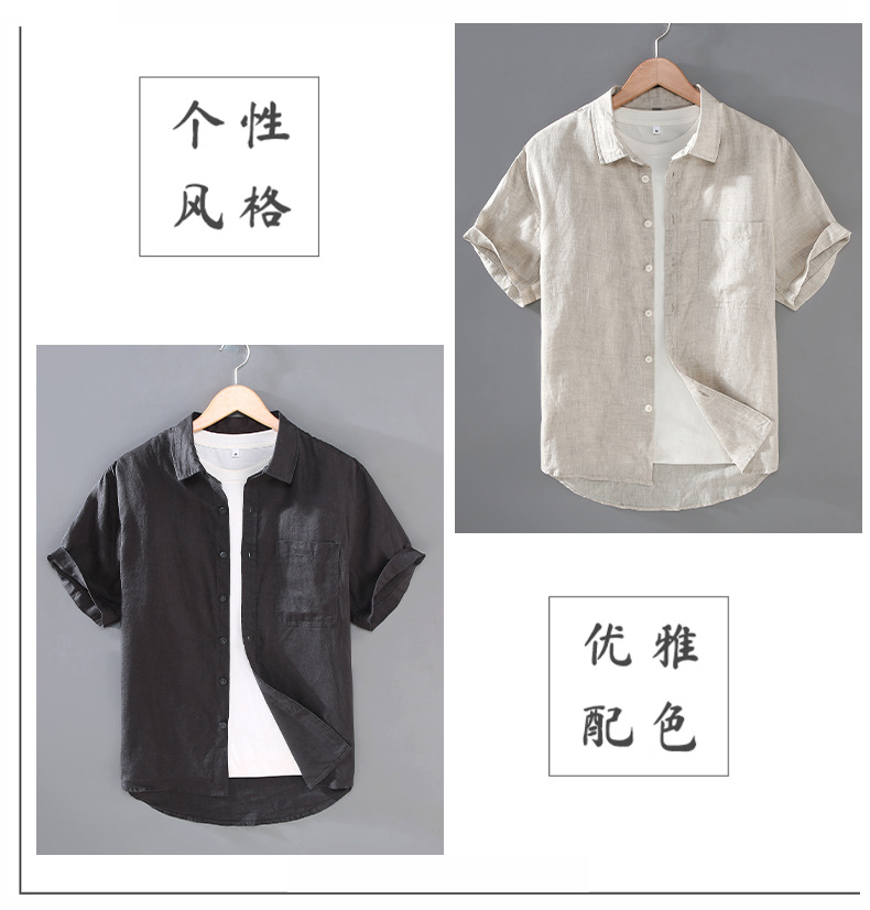 G192 일본 린넨 신선한 반팔 셔츠 남성용 다목적 예술적 캐주얼 루즈 통기성 탑 드롭 배송