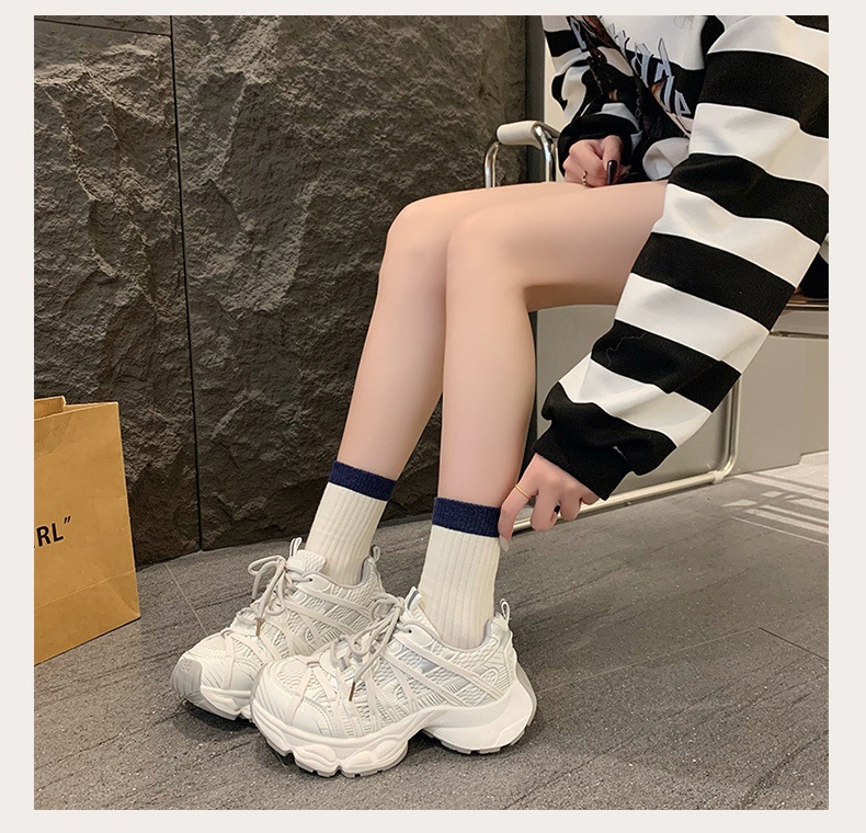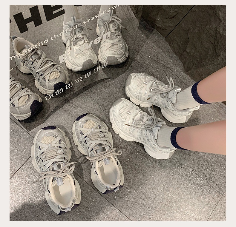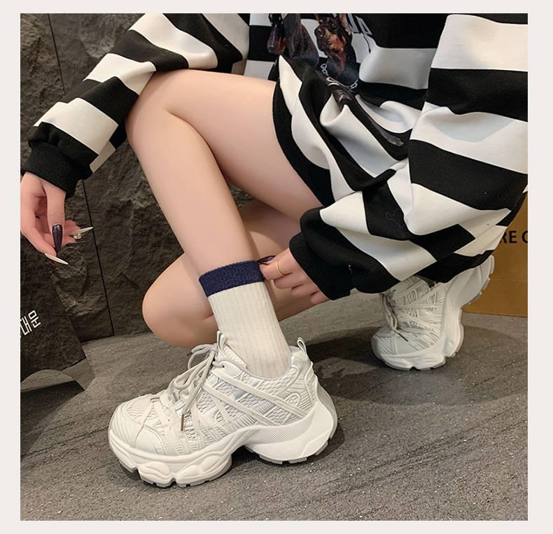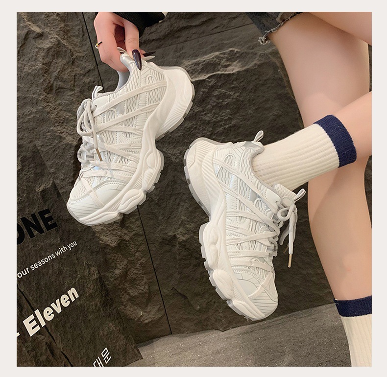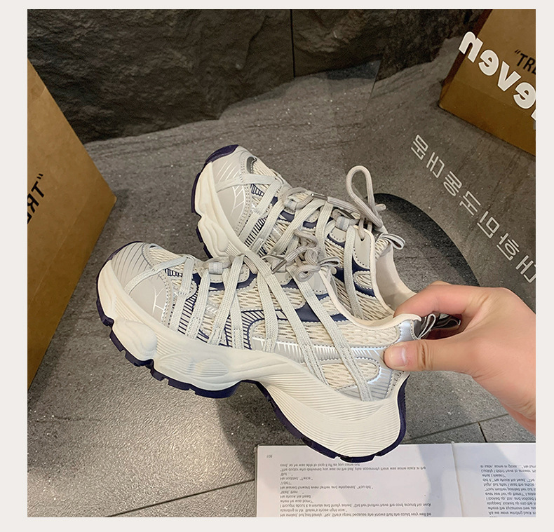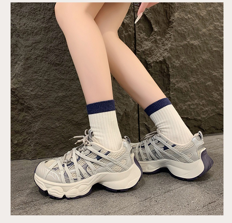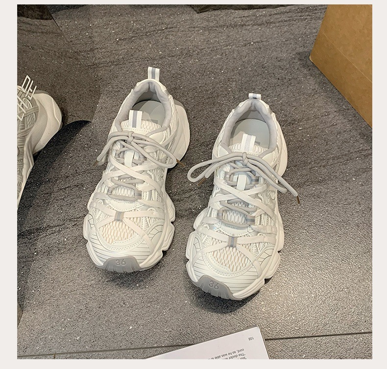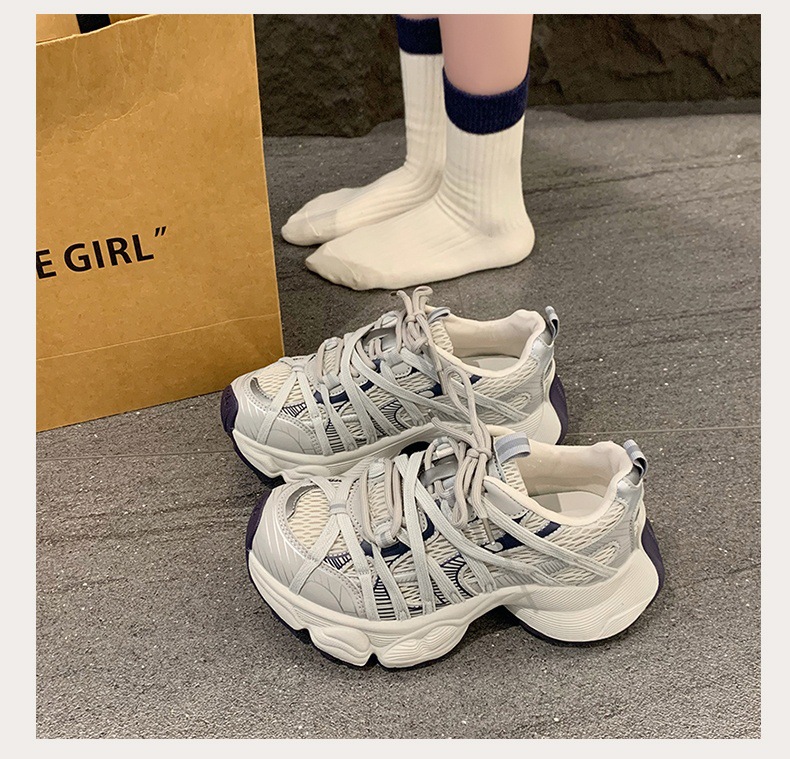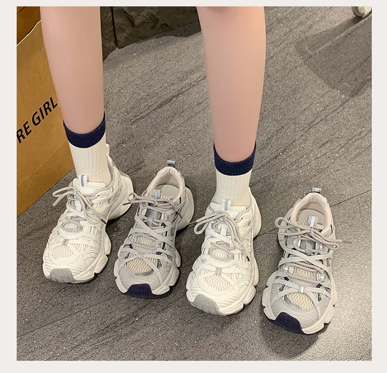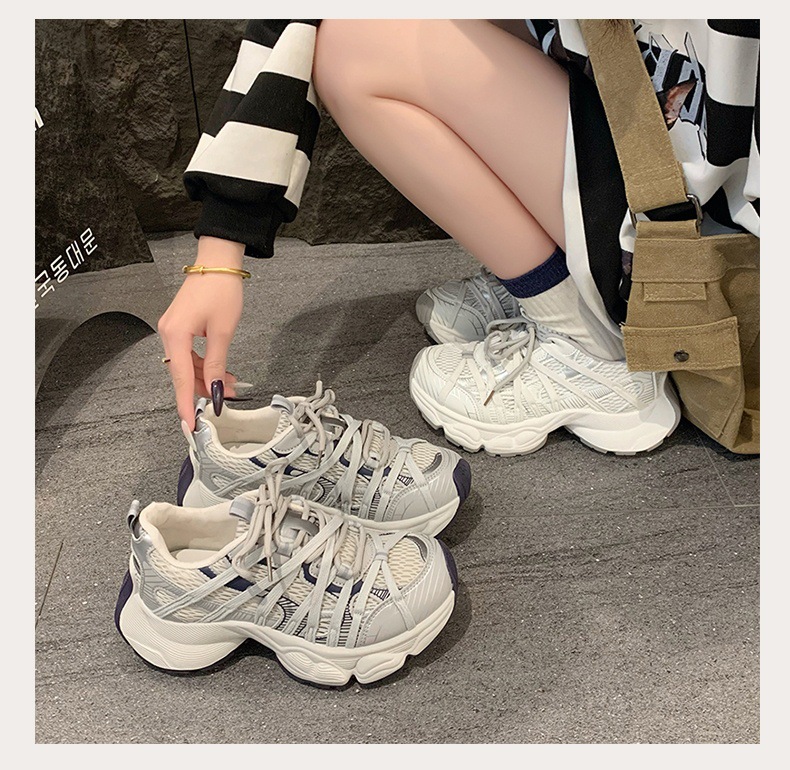 파리 스트랩 두꺼운 단독 토레 신발 여성의 2025 년 봄과 여름 새로운 통기성 메쉬 라운드 헤드 레이스 캐주얼 운동화