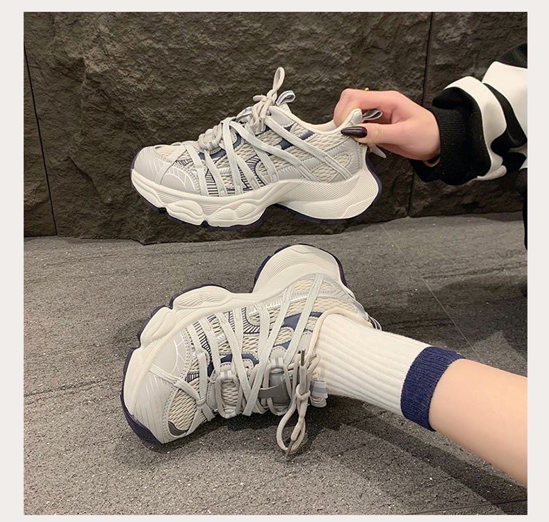 파리 스트랩 두꺼운 단독 토레 신발 여성의 2025 년 봄과 여름 새로운 통기성 메쉬 라운드 헤드 레이스 캐주얼 운동화스토어 가기
