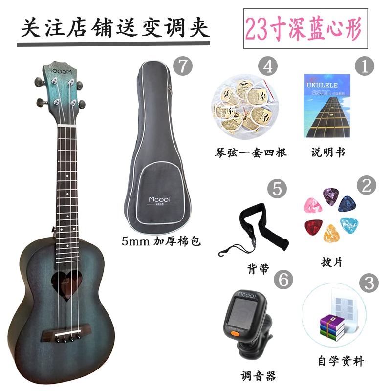 • 23inch 심해 블루 j 하트 모양 마호가니 코어 + 선물 패키지