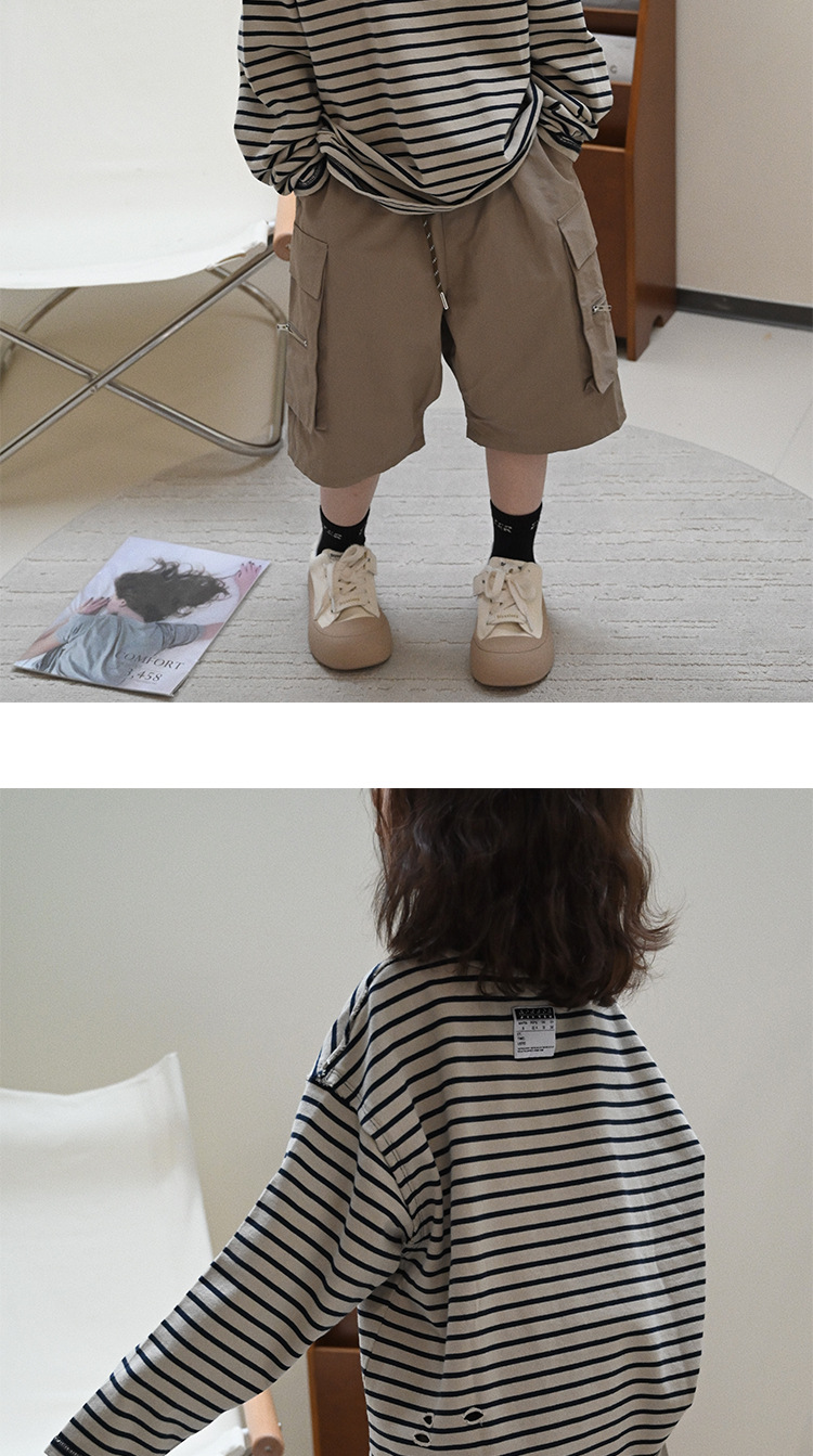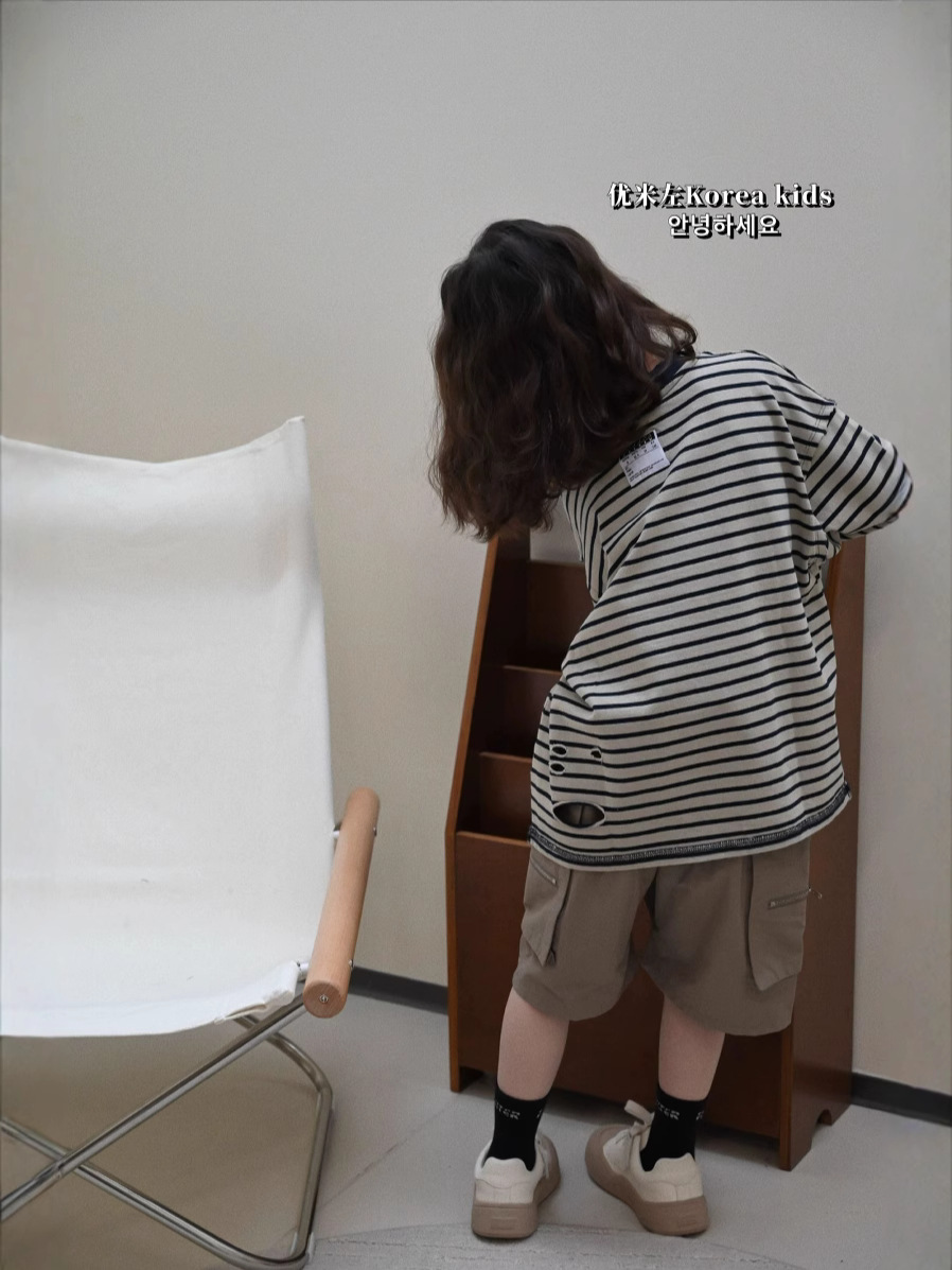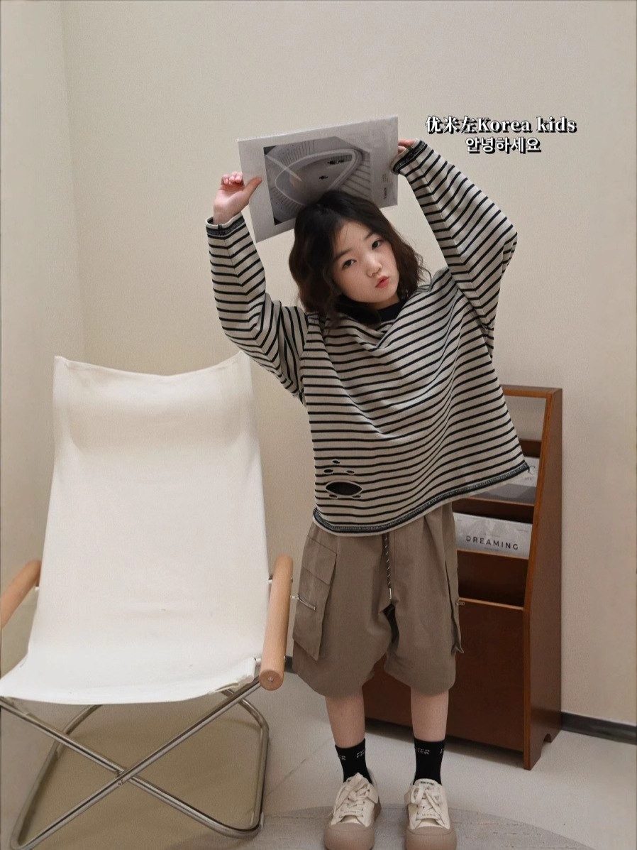 한국 아동복 여아 긴팔 티셔츠 스트라이프 아동용 셔츠 봄옷 2025 새로운 스타일 탑 소년 트렌드스토어 가기