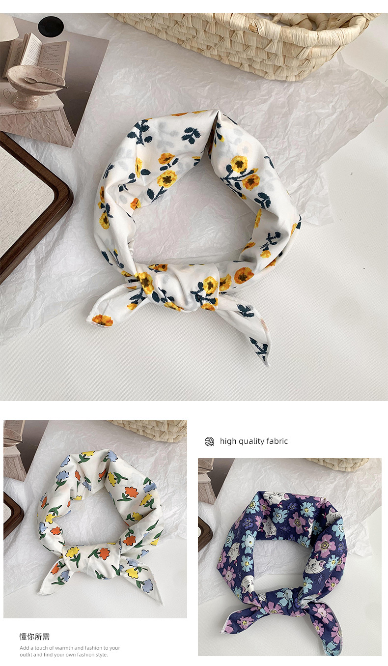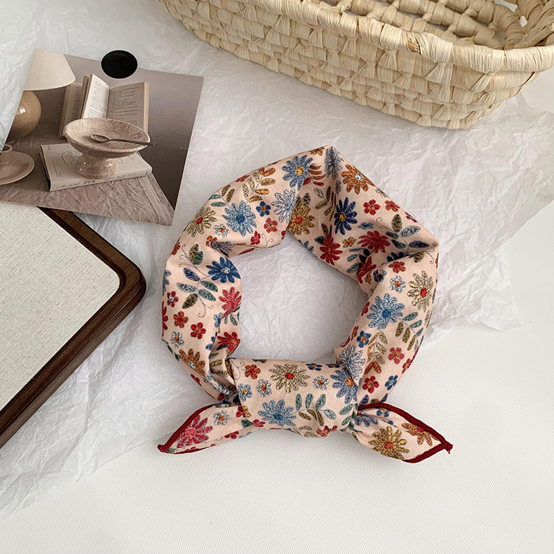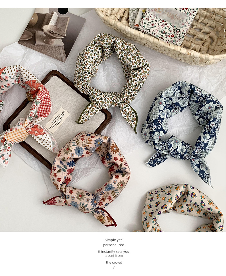 면 및 리넨 실크 스카프 목 작은 광장 스카프 패션 예술적 패션 우아한 스카프 머리 스카프 여름 여성의 목가적 인 스타일 헤어 액세서리 헤드웨어