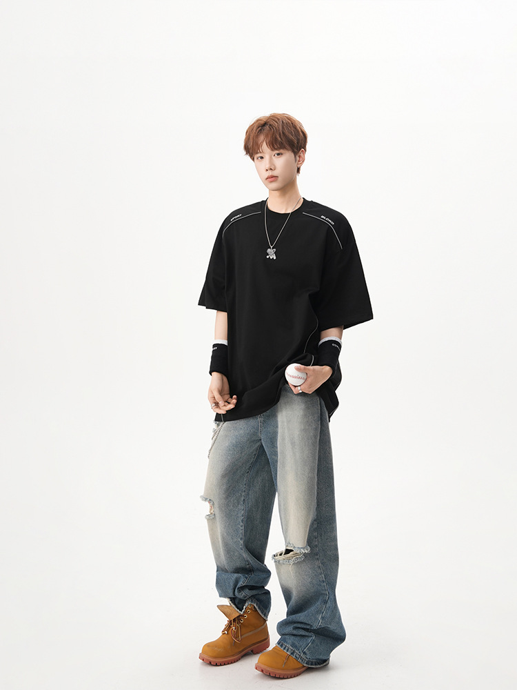 솔로나 반팔 티셔츠 남녀 여름 새 패션 브랜드 루즈 디자인 센스 반소매 올매치 커플 캐주얼 탑스토어 가기