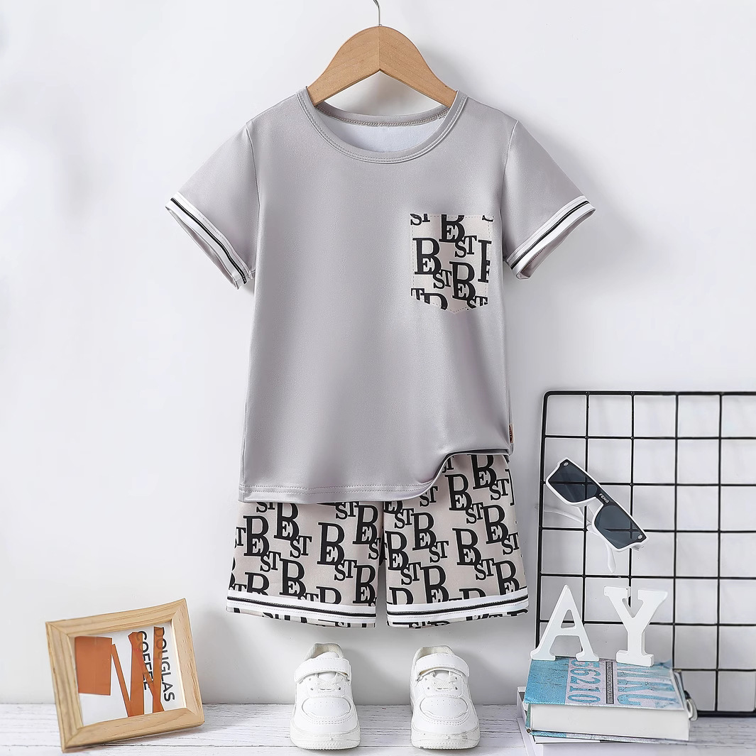 2 팩 소년 세트 패션 캐주얼 풀오버 여름 소년 패션 반바지 T 스웨트 셔츠