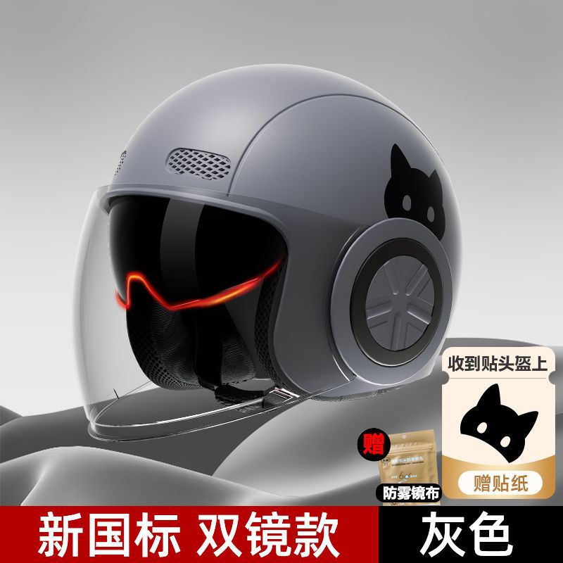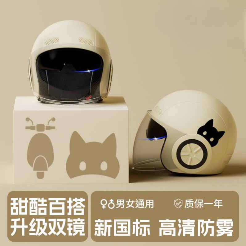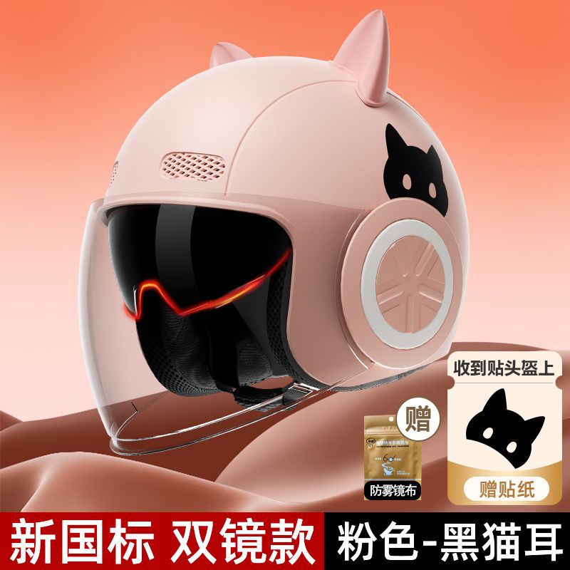새로운 귀여운 새끼 고양이 전기 자동차 헬멧 여성 겨울 따뜻한 이중 거울 남자 배터리 자동차 반 헬멧
