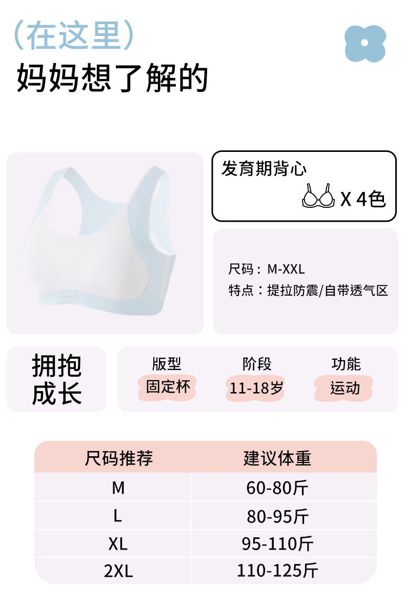 여아 속옷, 중학생 여아 속옷, 고등학생, 초등학생 발달 조끼, 여성용 무봉제 충격 방지 브라 도매스토어 가기