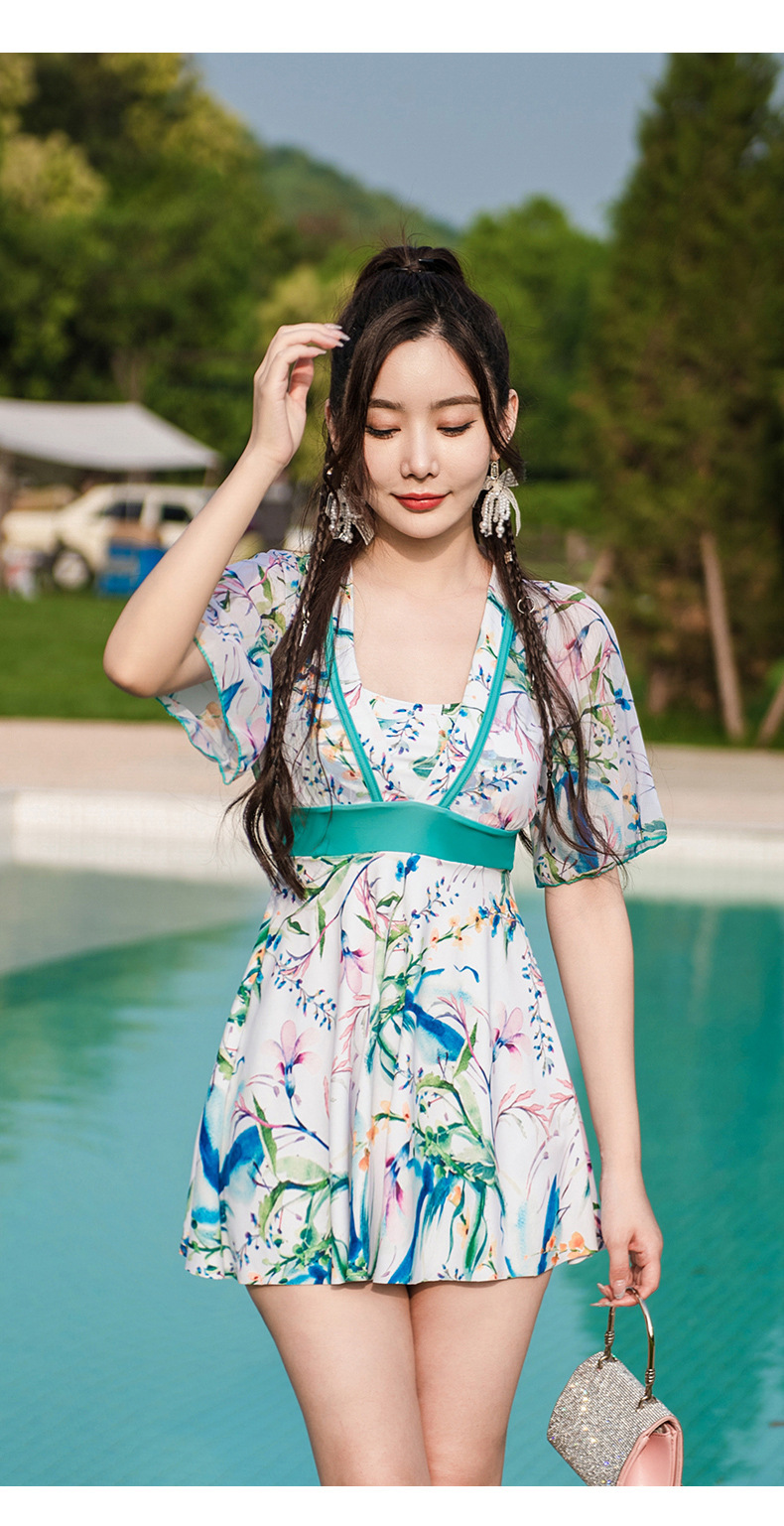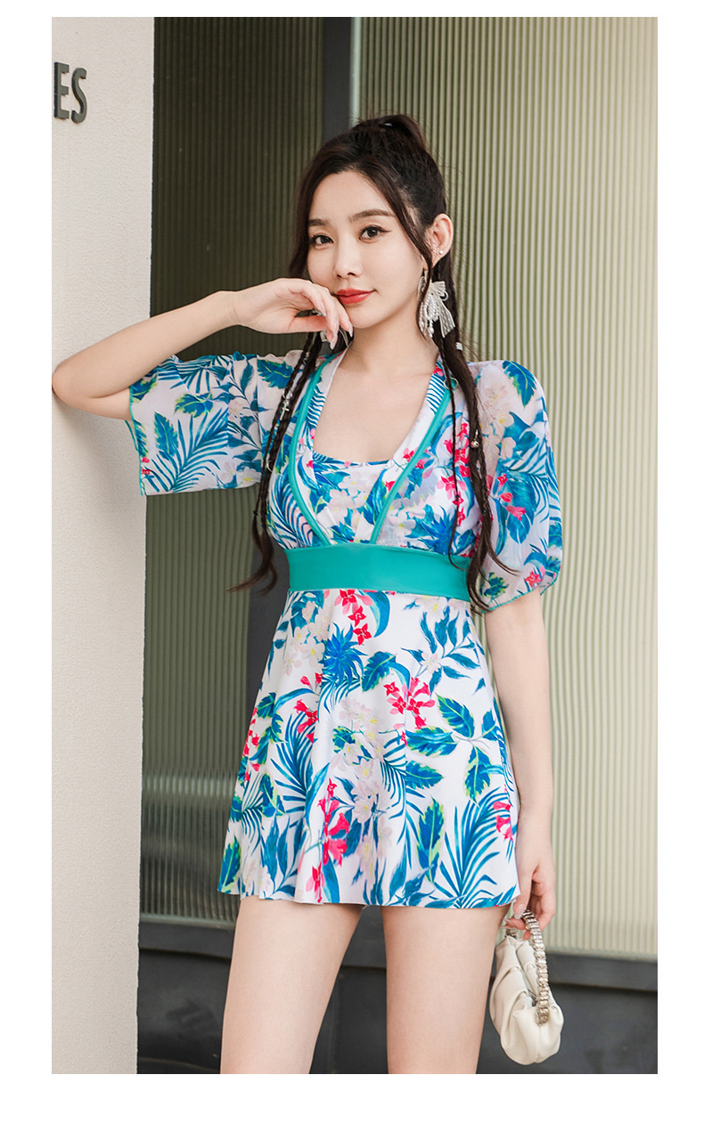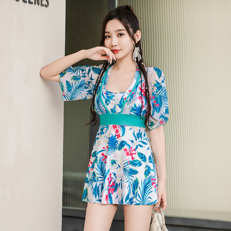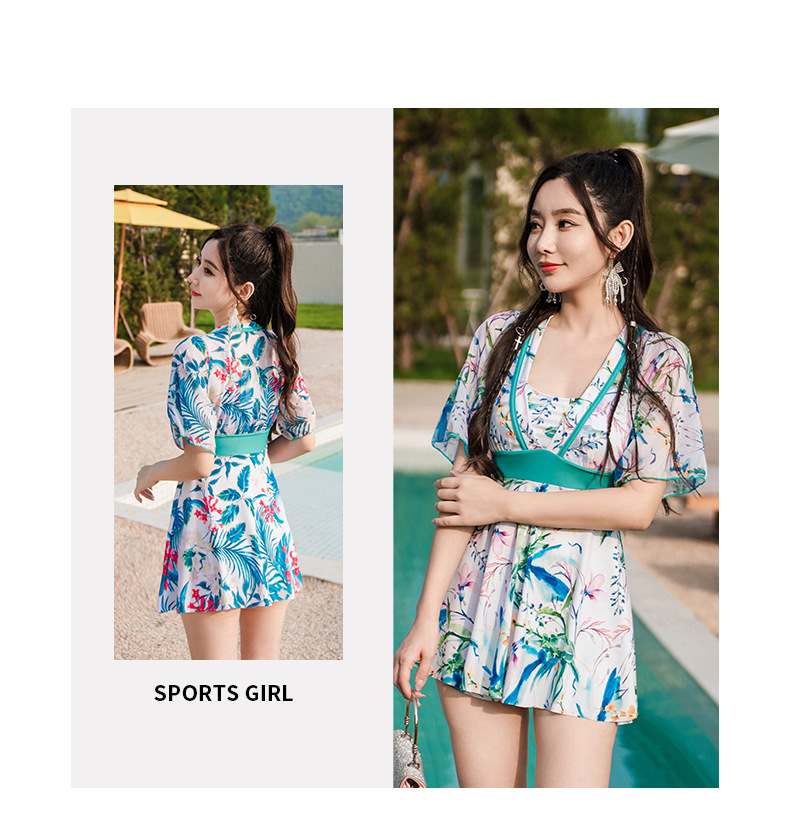 수영복 여성 원피스 스커트 하이 웨이스트 슬리밍 플러스 사이즈 프린트 대외 무역 자외선 차단제 AliExpress