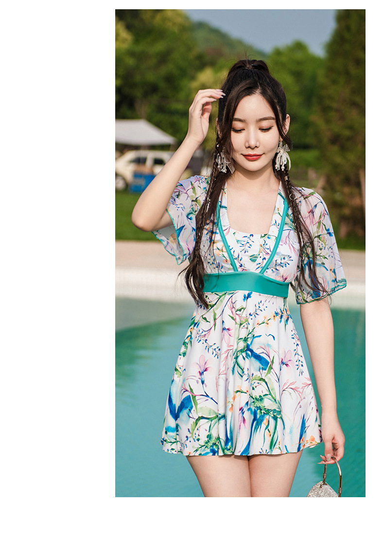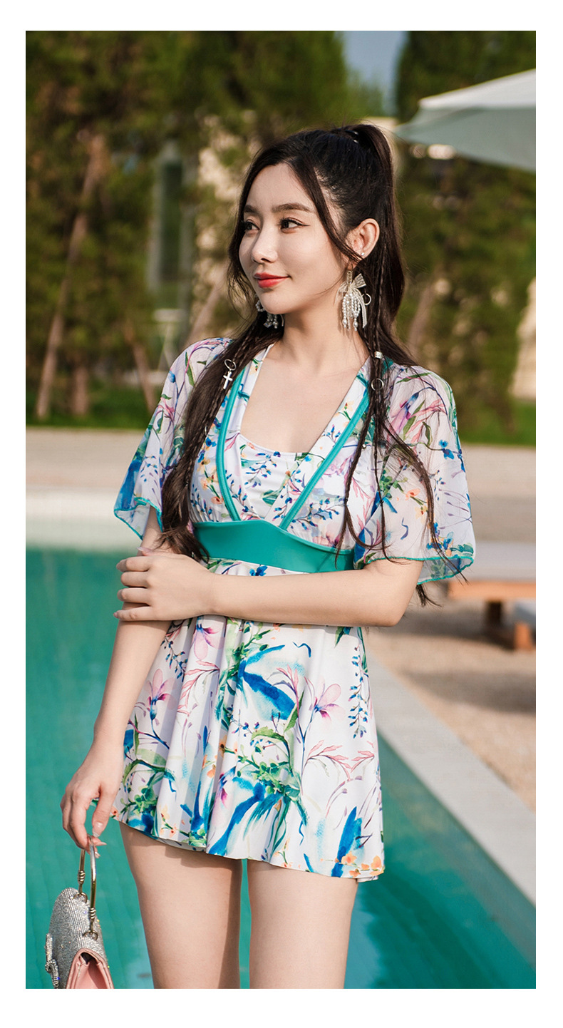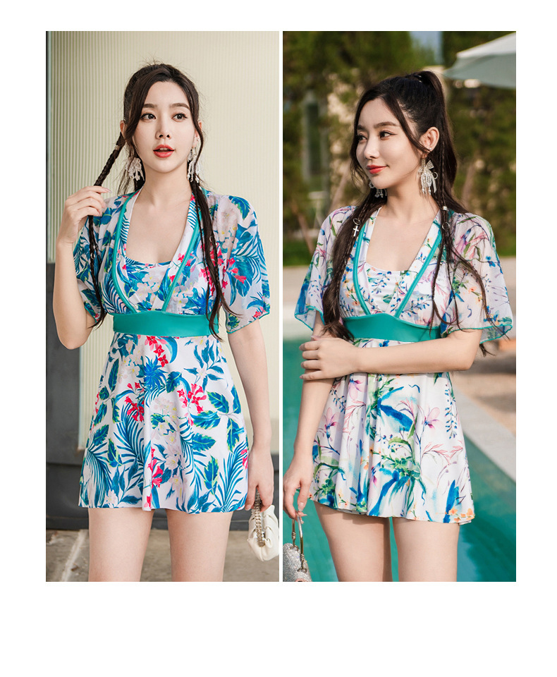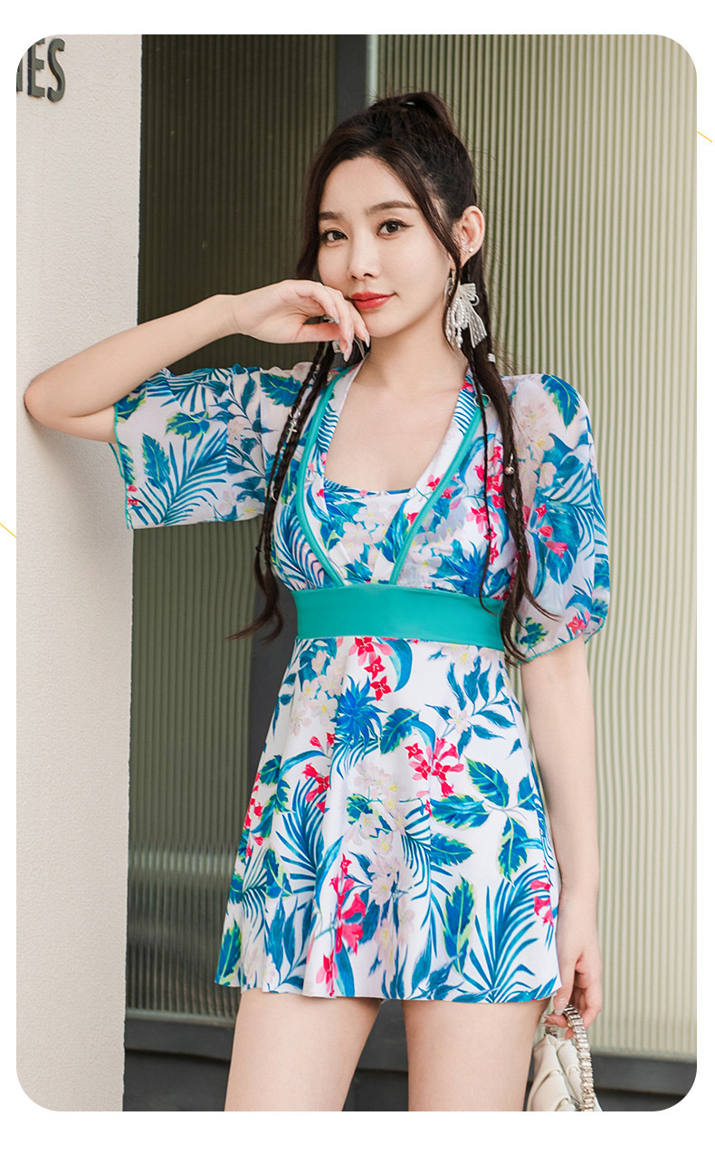 수영복 여성 원피스 스커트 하이 웨이스트 슬리밍 플러스 사이즈 프린트 대외 무역 자외선 차단제 AliExpress