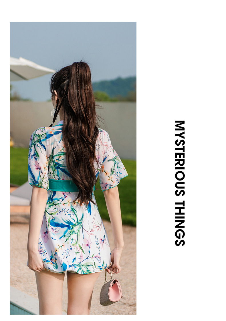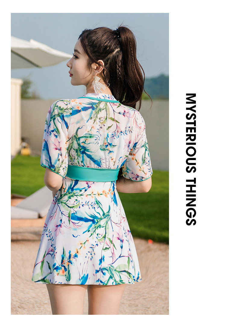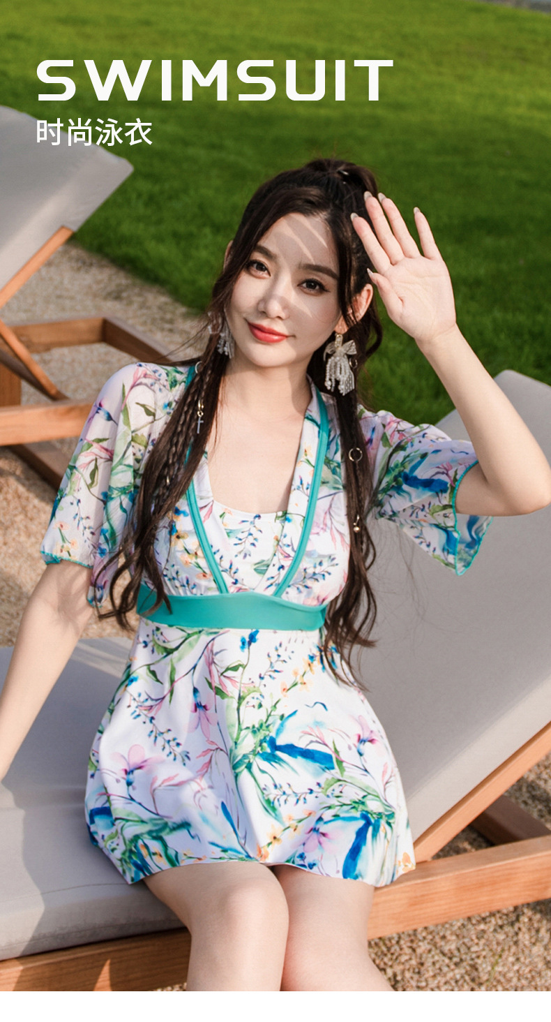 수영복 여성 원피스 스커트 하이 웨이스트 슬리밍 플러스 사이즈 프린트 대외 무역 자외선 차단제 AliExpress스토어 가기
