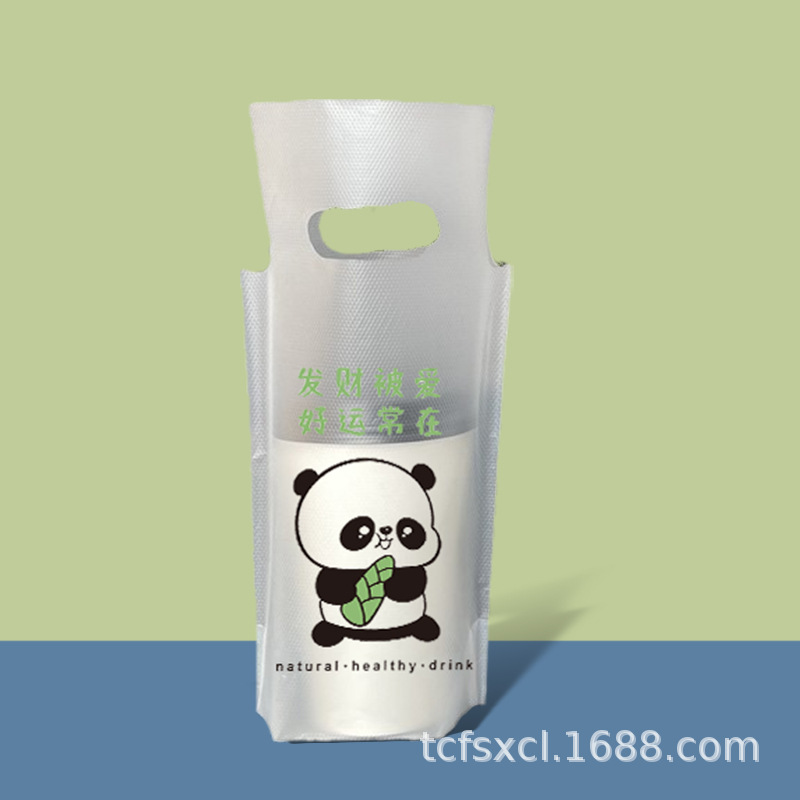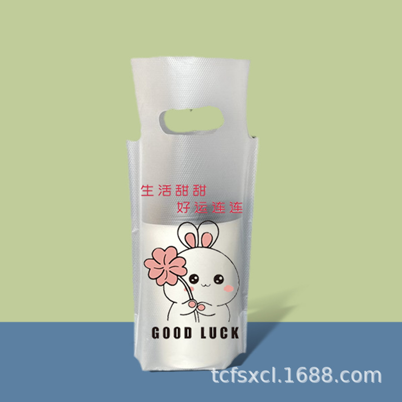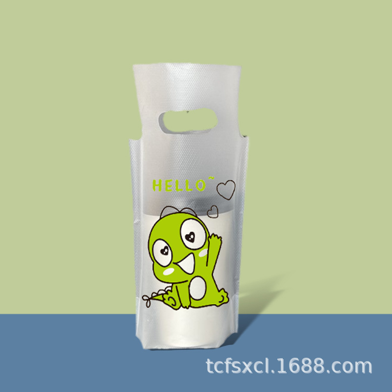 일회용 우유 차 컵 포장 상업용 음료 싱글 및 더블 컵 테이크 아웃 플라스틱 포장 가방 만화 두꺼운 도매스토어 가기