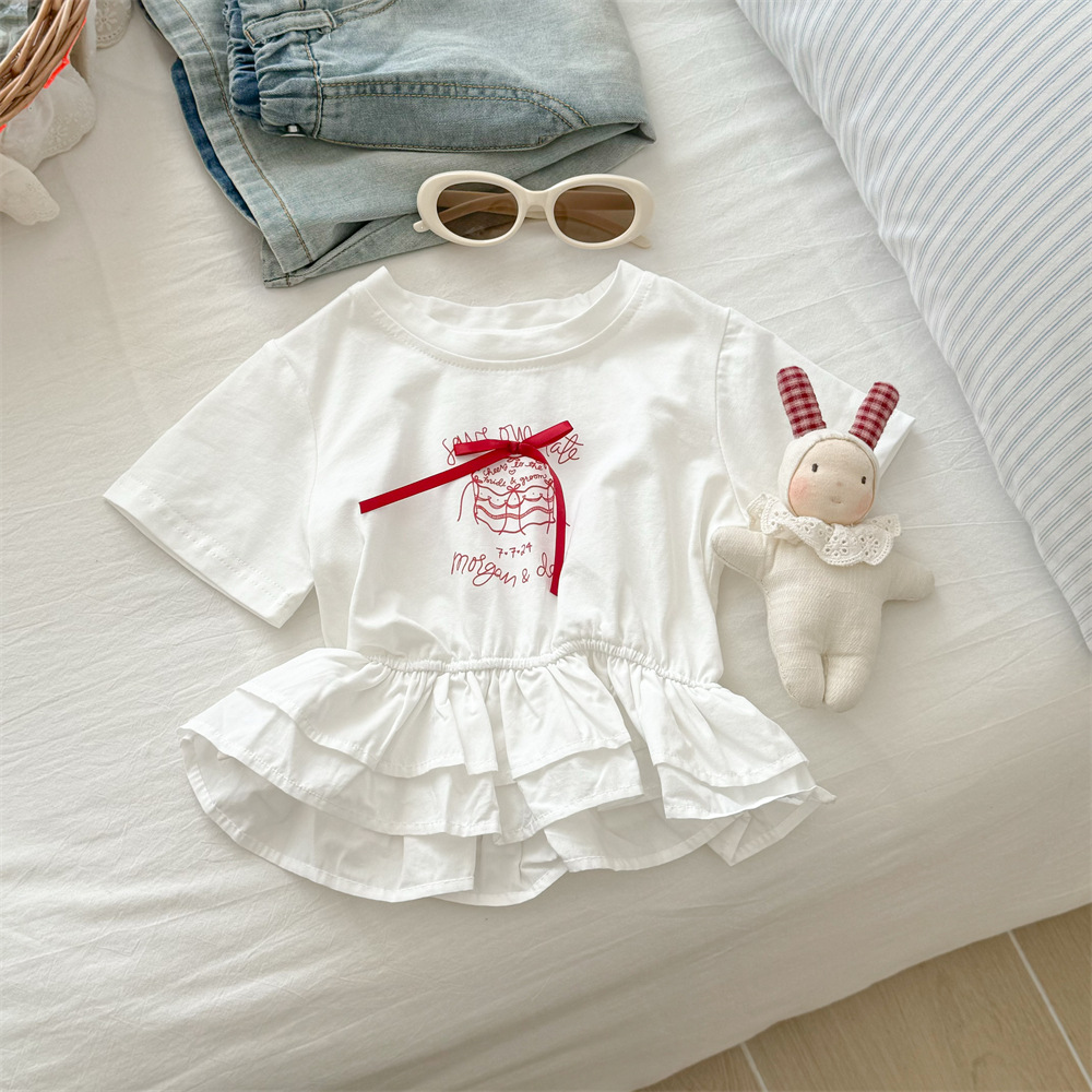 Xiaoxian Ning 여아용 리본 케이크 티셔츠, 한국 스타일, 다용도, 달콤하고 귀여운 면 반팔, 고품질, 너무 예뻐요