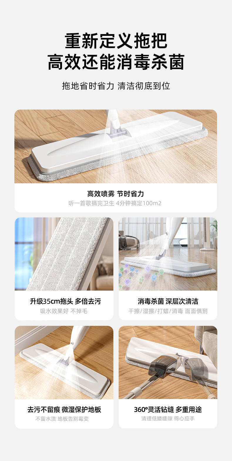 핫 스타일 가정용 원 드래그 깨끗한 새로운 핸즈프리 습식 및 드라이 듀얼 사용 게으른 바닥 도마 물 스프레이 플랫 걸레