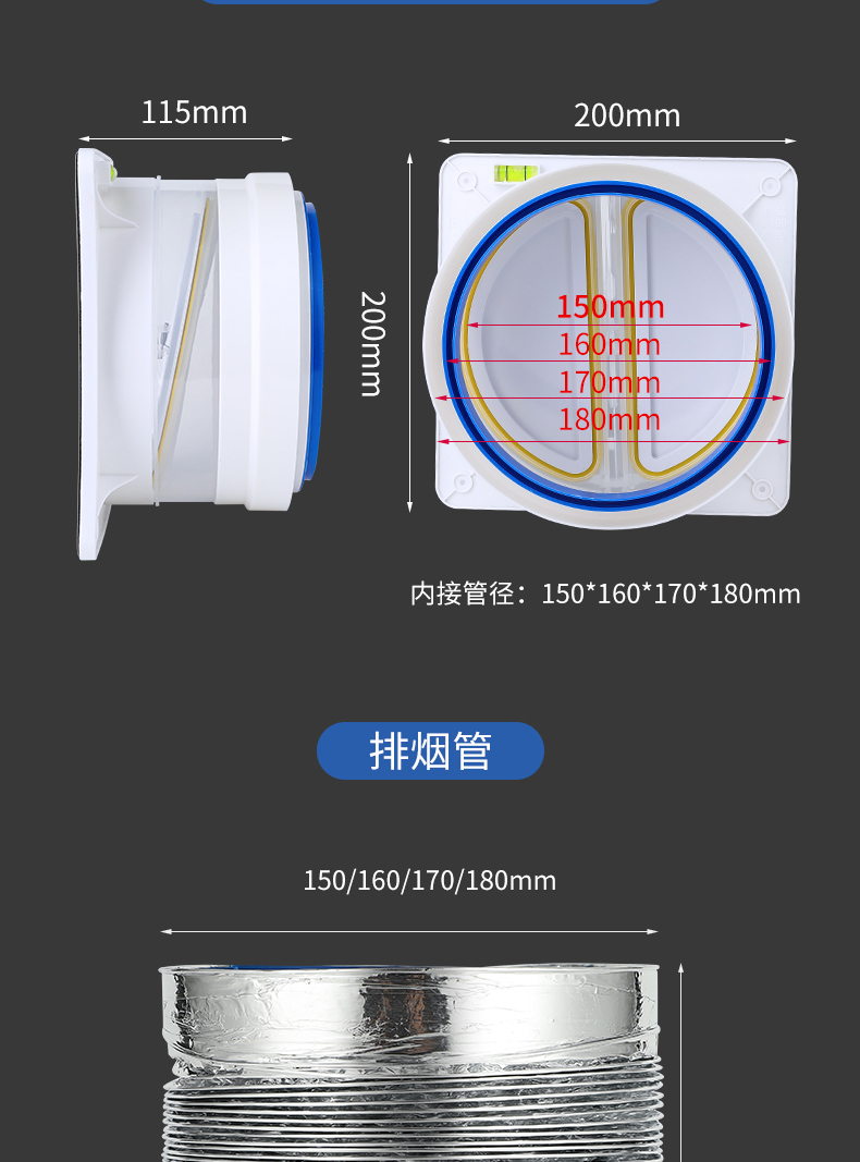 • aa [업그레이드·방연밀폐모델] 주방 1개 + 1.5m *160 연기 파이프, 무료 전용 선물 가방