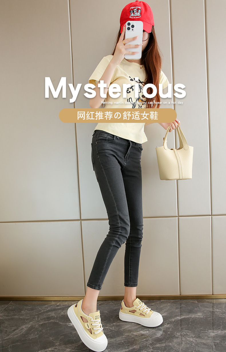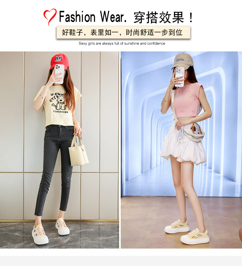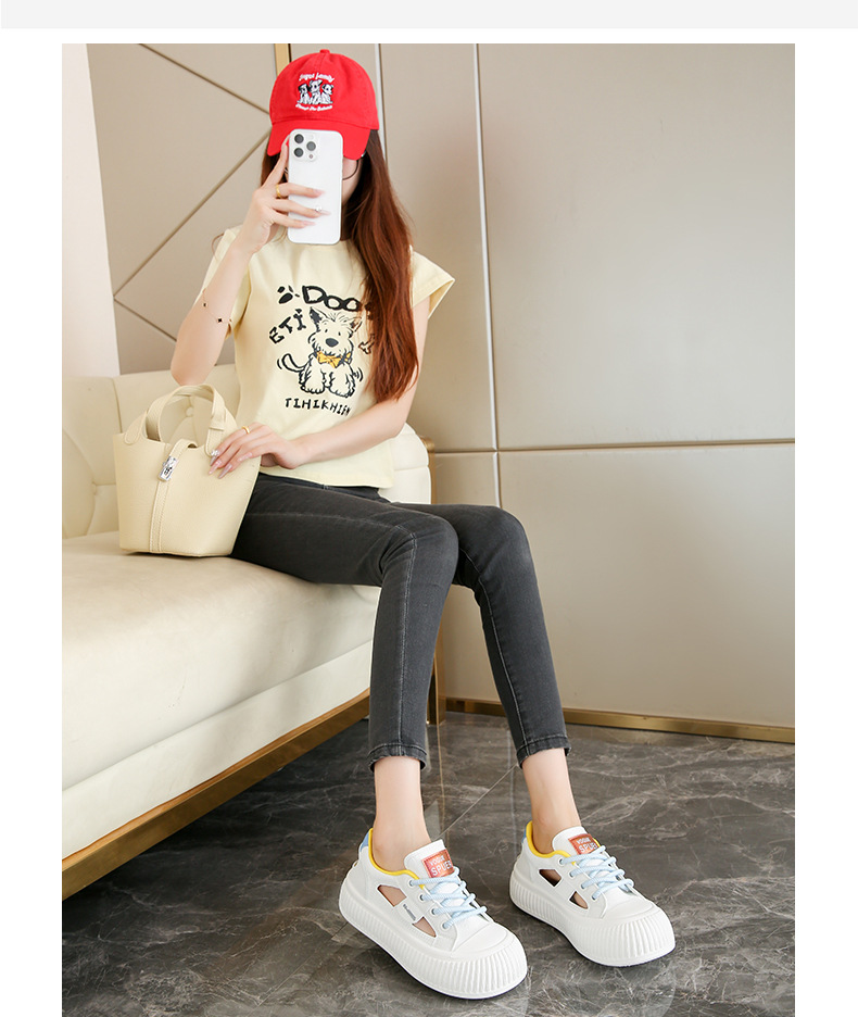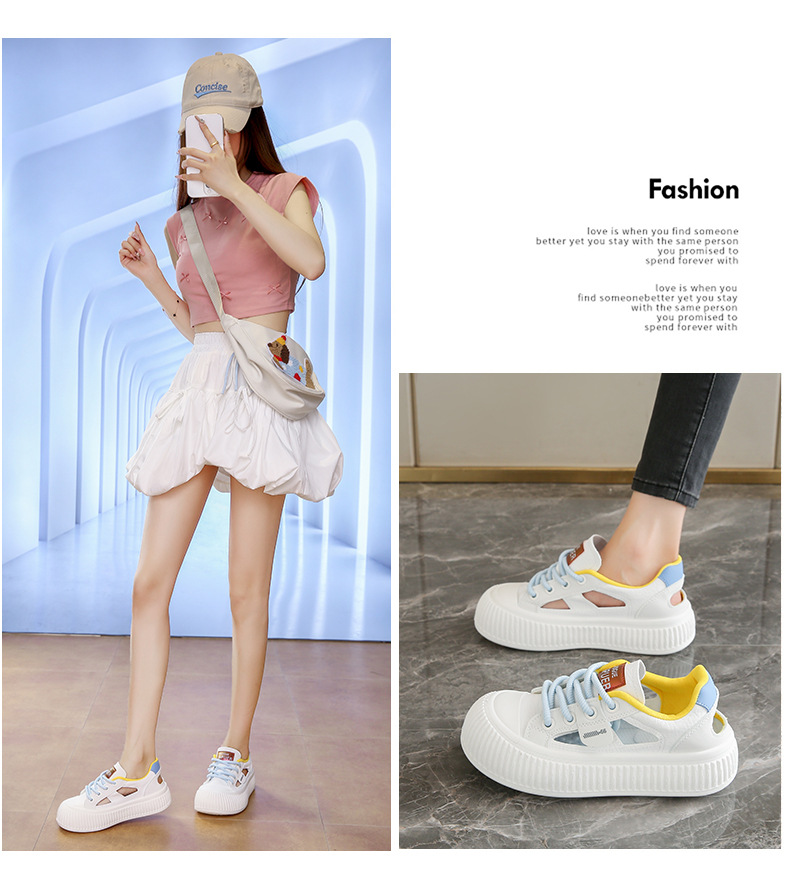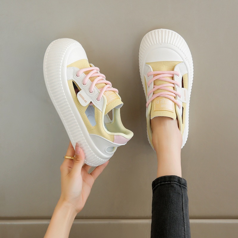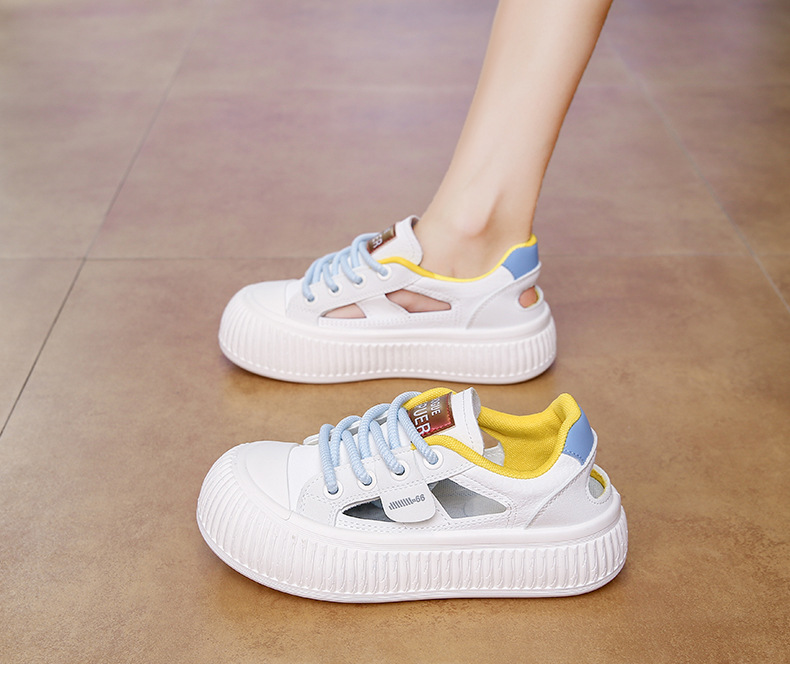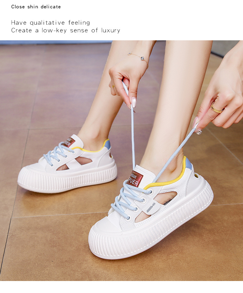 패셔너블한 여성 신발 여름 신상 흰색 신발 한국어 버전 ins 여성 학교 중공 통기성 두꺼운 밑창 높이 증가 캐주얼 신발스토어 가기
