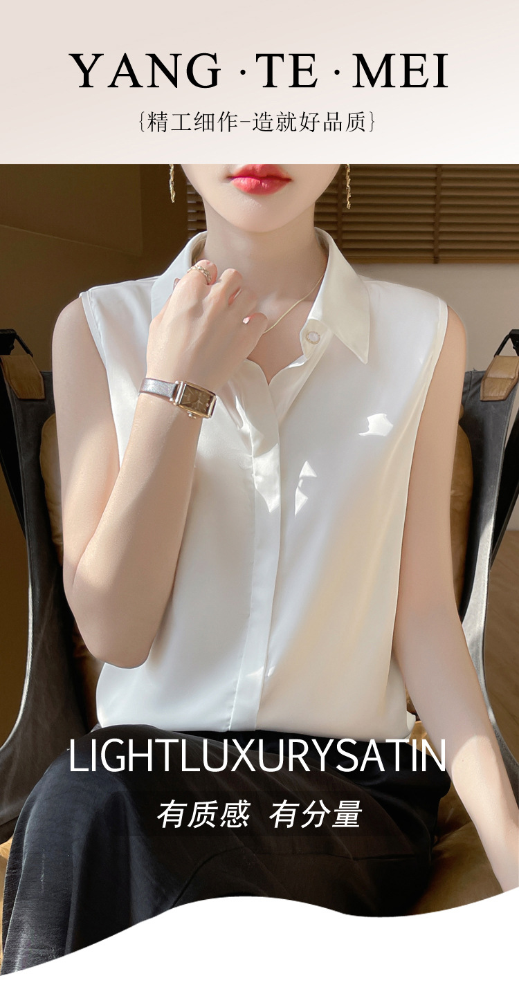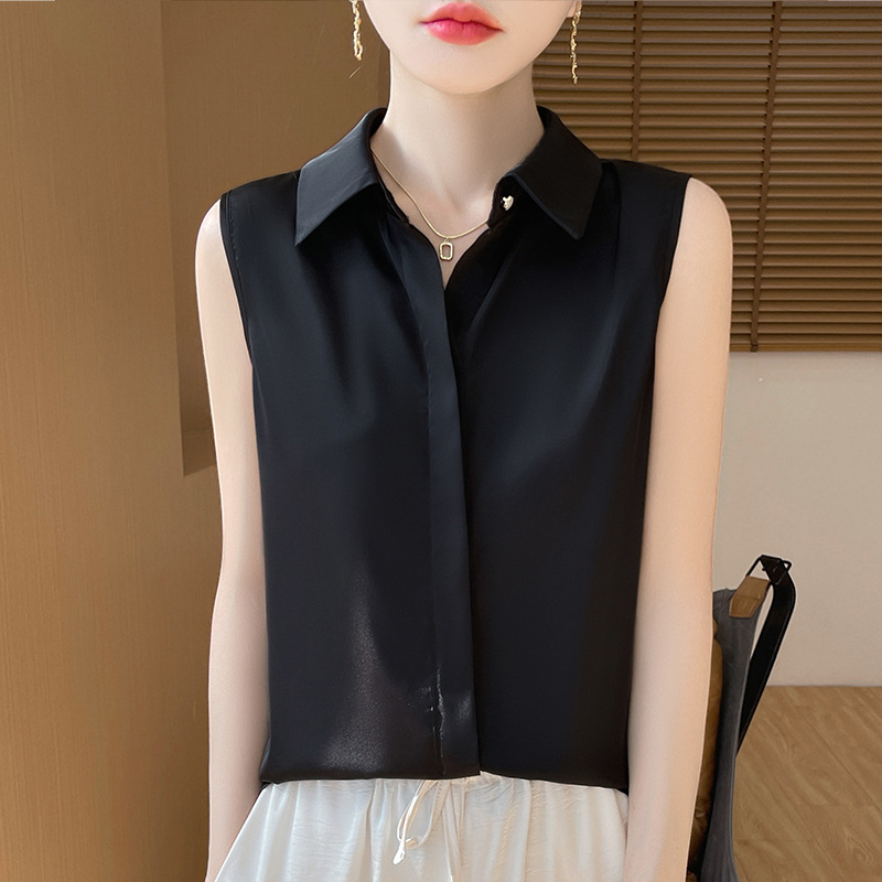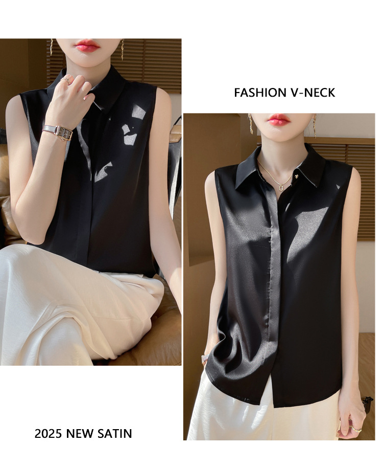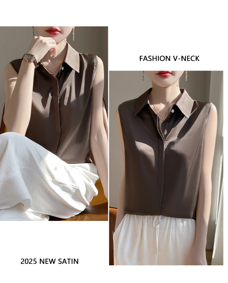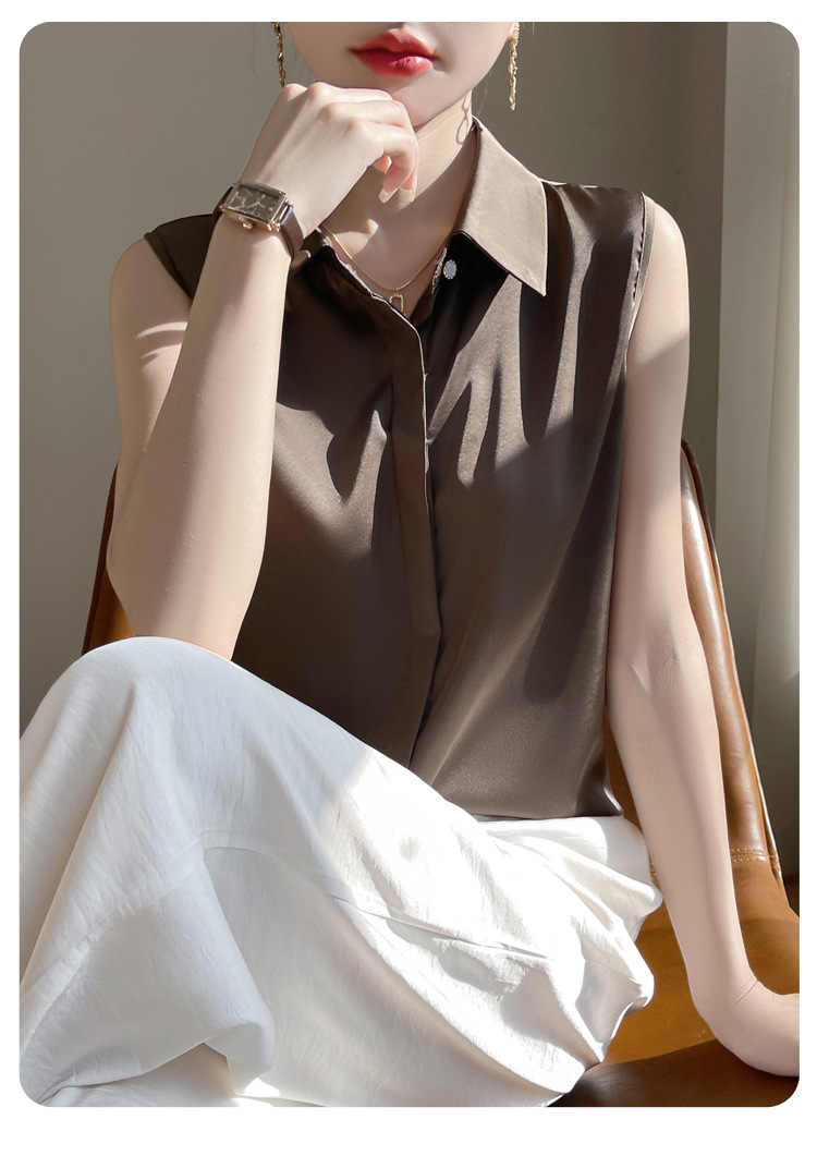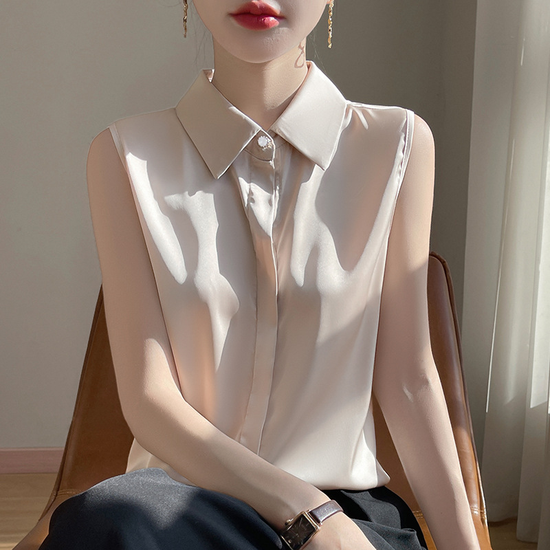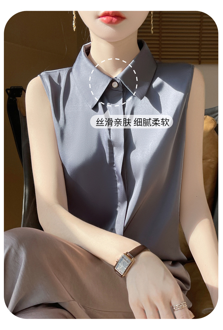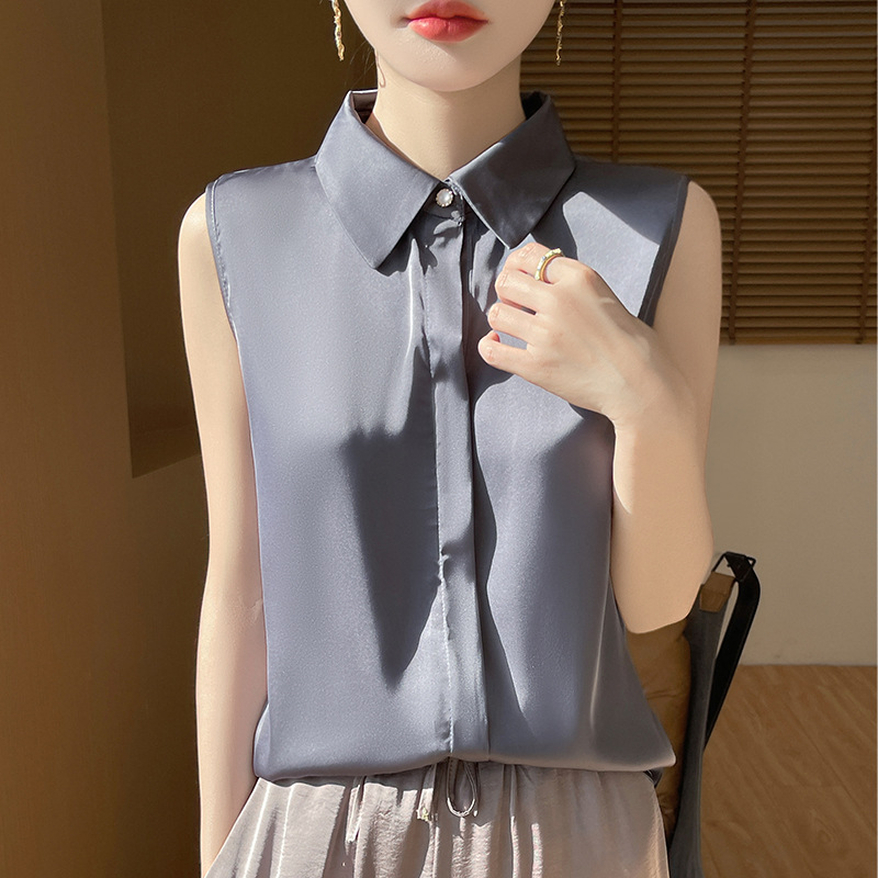 여름 우아한 민소매 폴로 칼라 셔츠 새로운 새틴 셔츠 느슨한 올매치 캐주얼 슬림 셔츠 도매스토어 가기