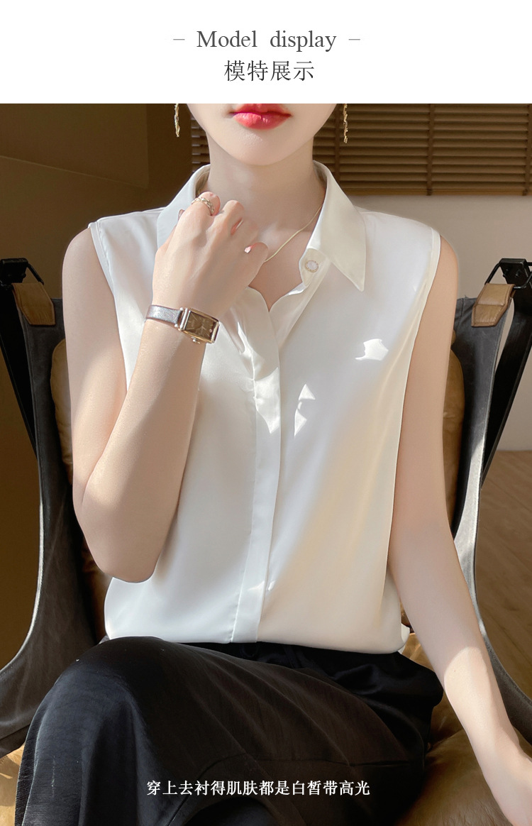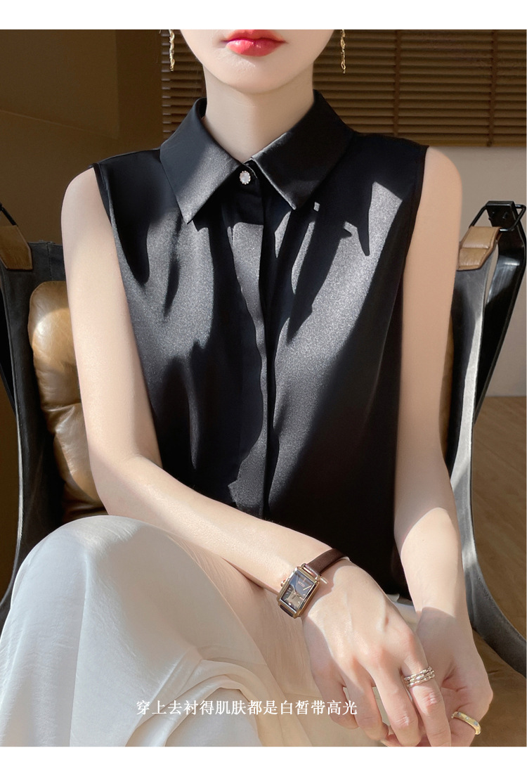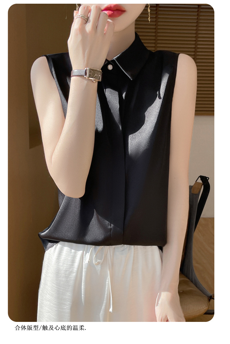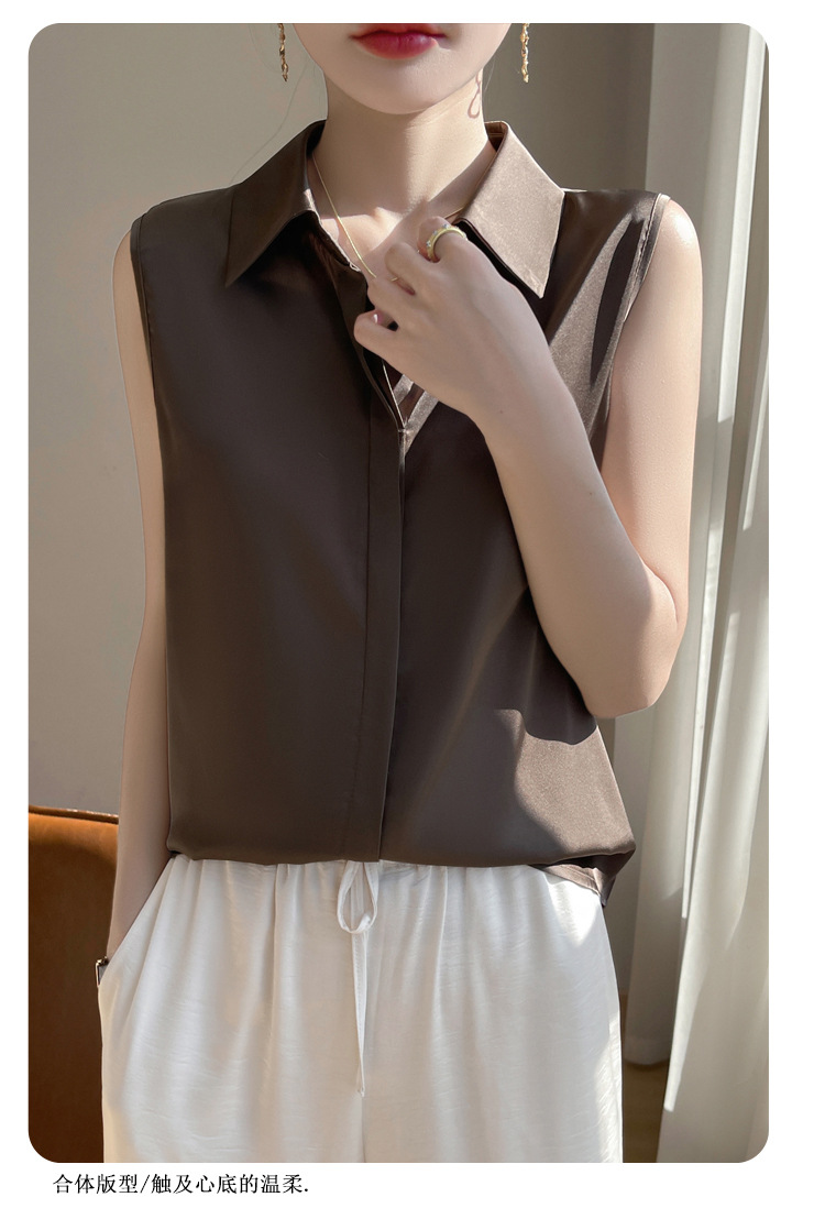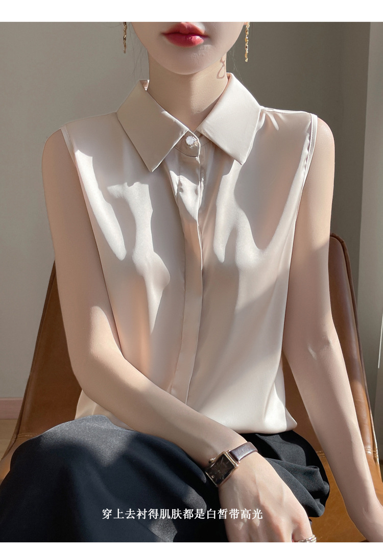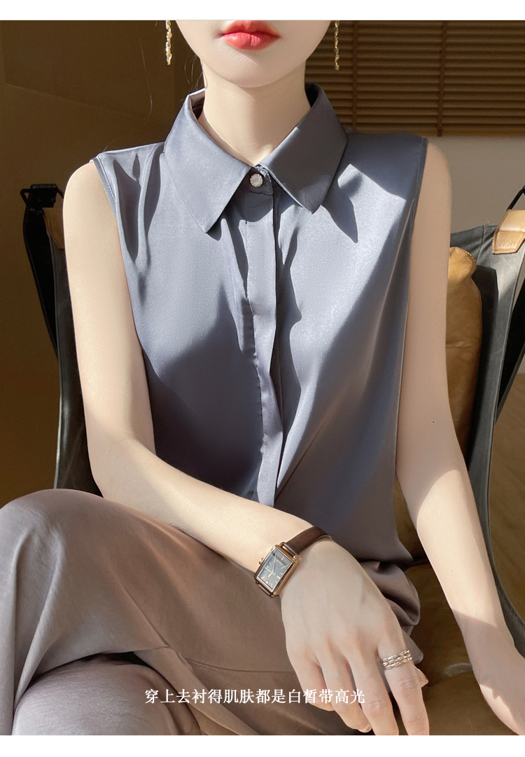 여름 우아한 민소매 폴로 칼라 셔츠 새로운 새틴 셔츠 느슨한 올매치 캐주얼 슬림 셔츠 도매스토어 가기