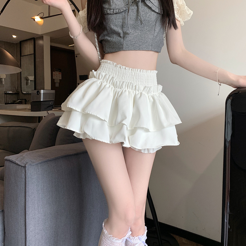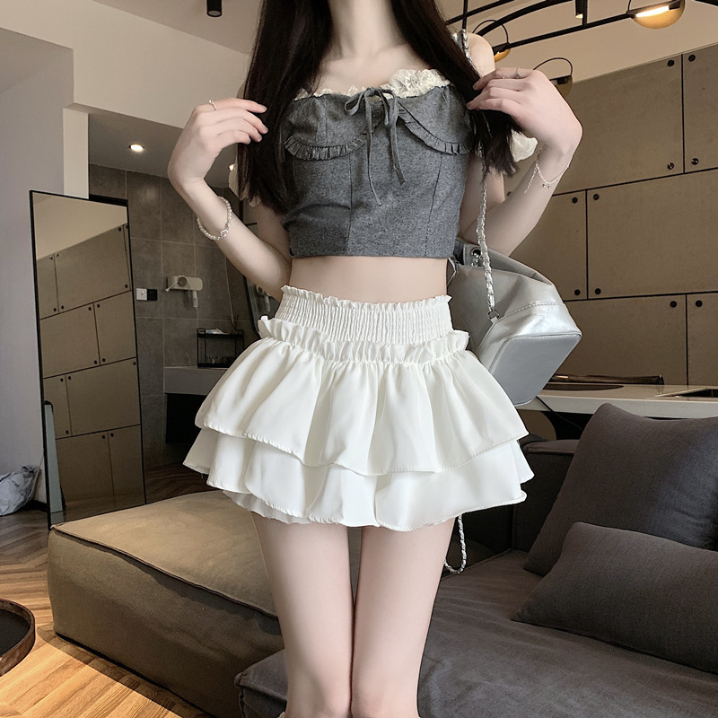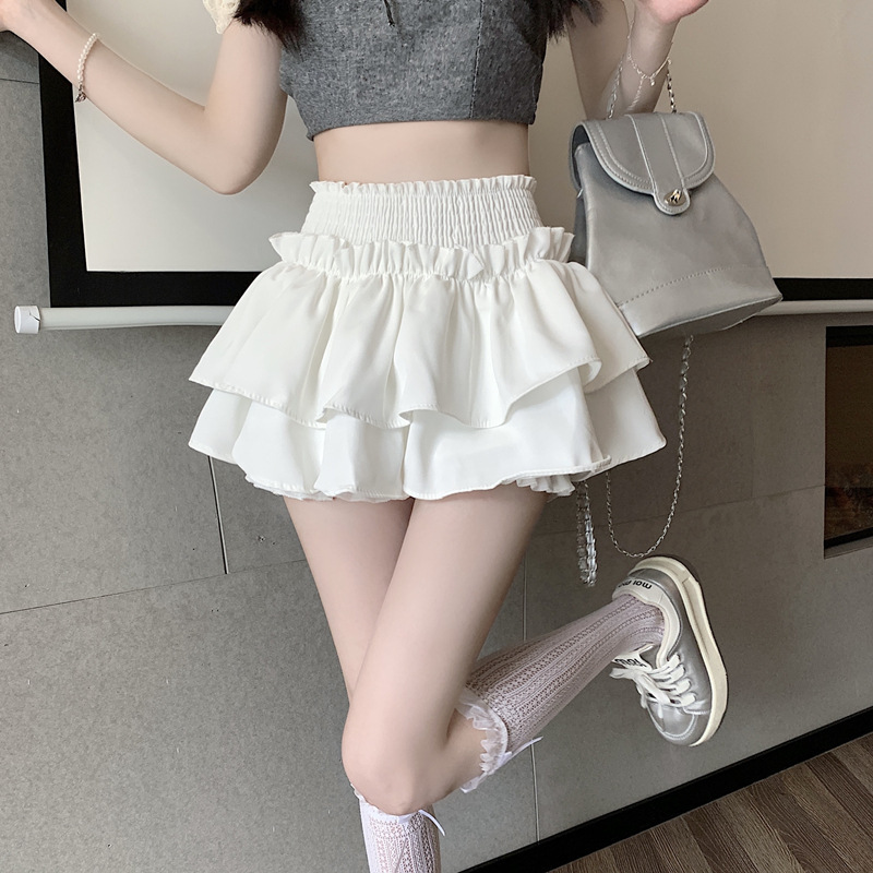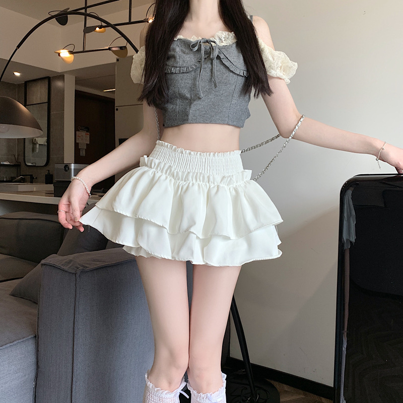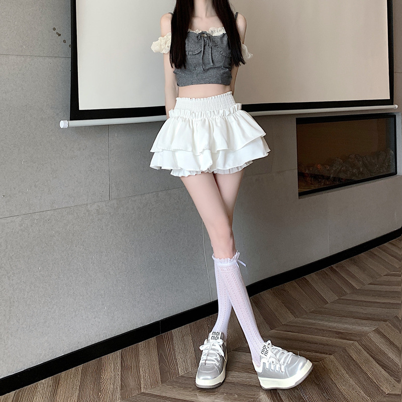 흰색 짧은 치마 여성 발레 스타일 프릴 퍼프 케이크 스커트 2025 여름 핫 소녀 곰팡이 하이 웨이스트 버드 스커트