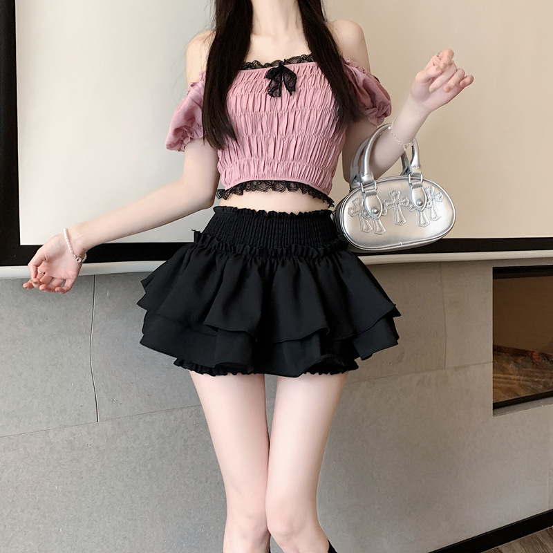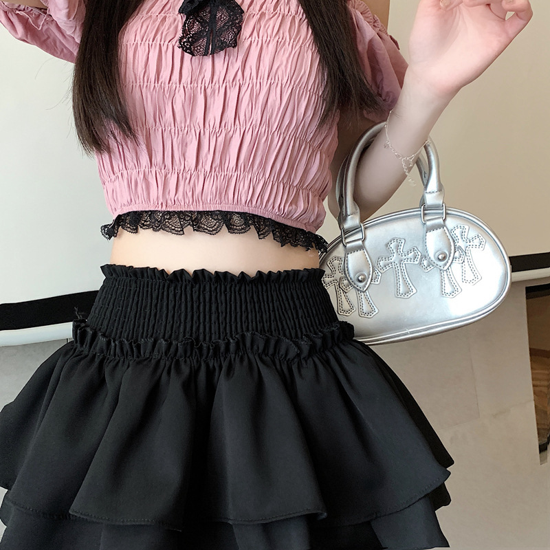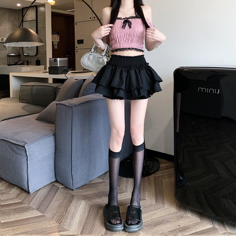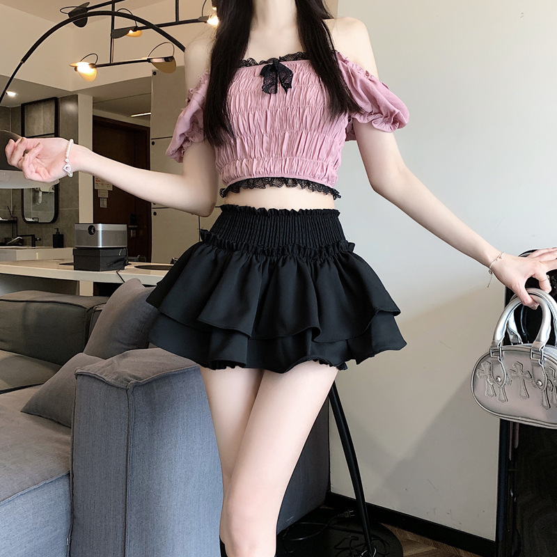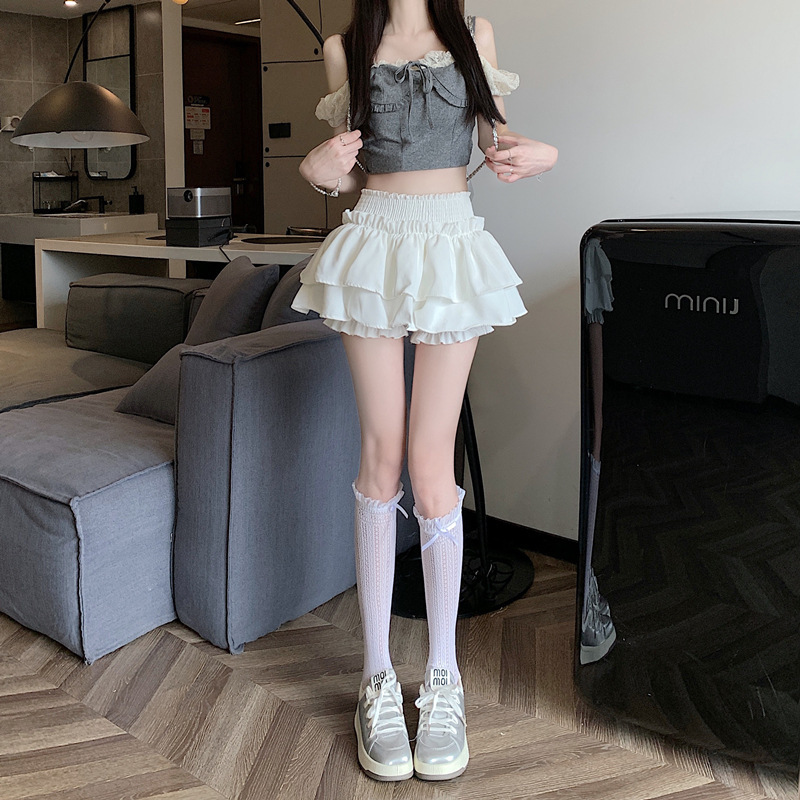 흰색 짧은 치마 여성 발레 스타일 프릴 퍼프 케이크 스커트 2025 여름 핫 소녀 곰팡이 하이 웨이스트 버드 스커트