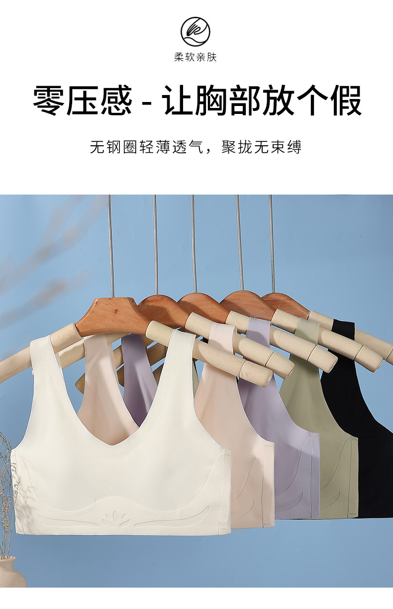 여름 얇은 토끼 귀 컵 추적없는 속옷 Rimless 통기성 편안한 집결 방지 처짐 소녀 브라