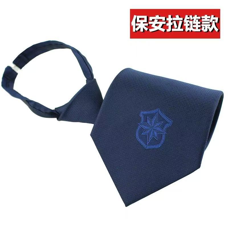 本公司是保安协会领带定点单位仅此一家,保安领带专做10几年,设计颜色都出自我司,藏青,枣红,拉链,手打都有现货.