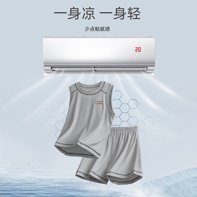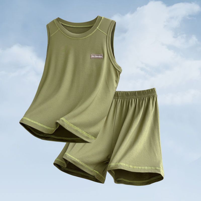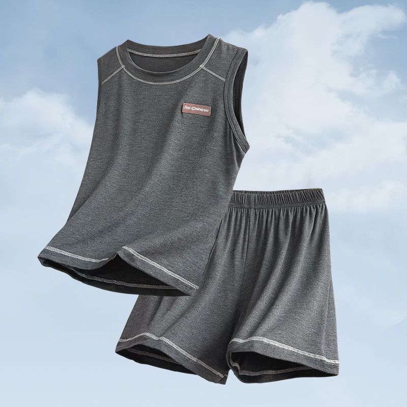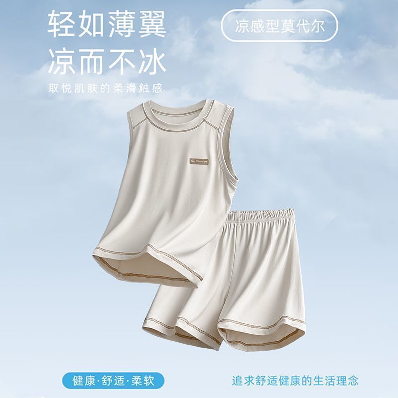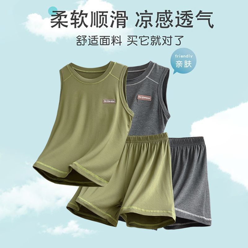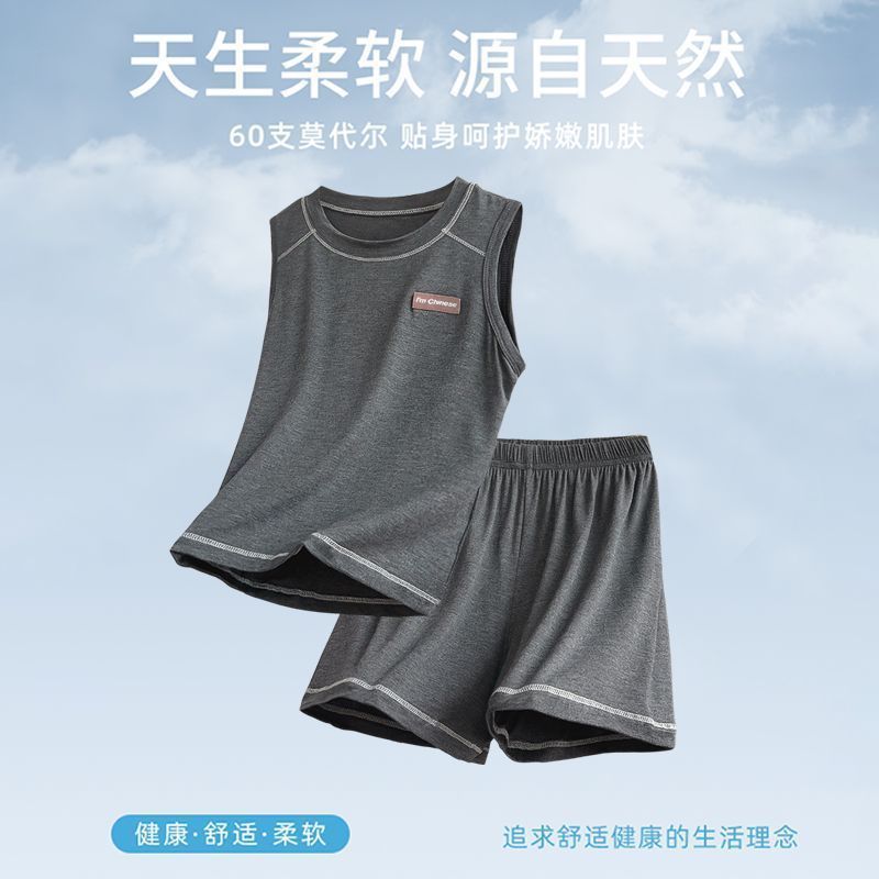 모달 아동 잠옷, 여름용 얇은 남아 조끼 세트, 큰 남아 가정복, 에어컨 의류, 여름 스타일스토어 가기