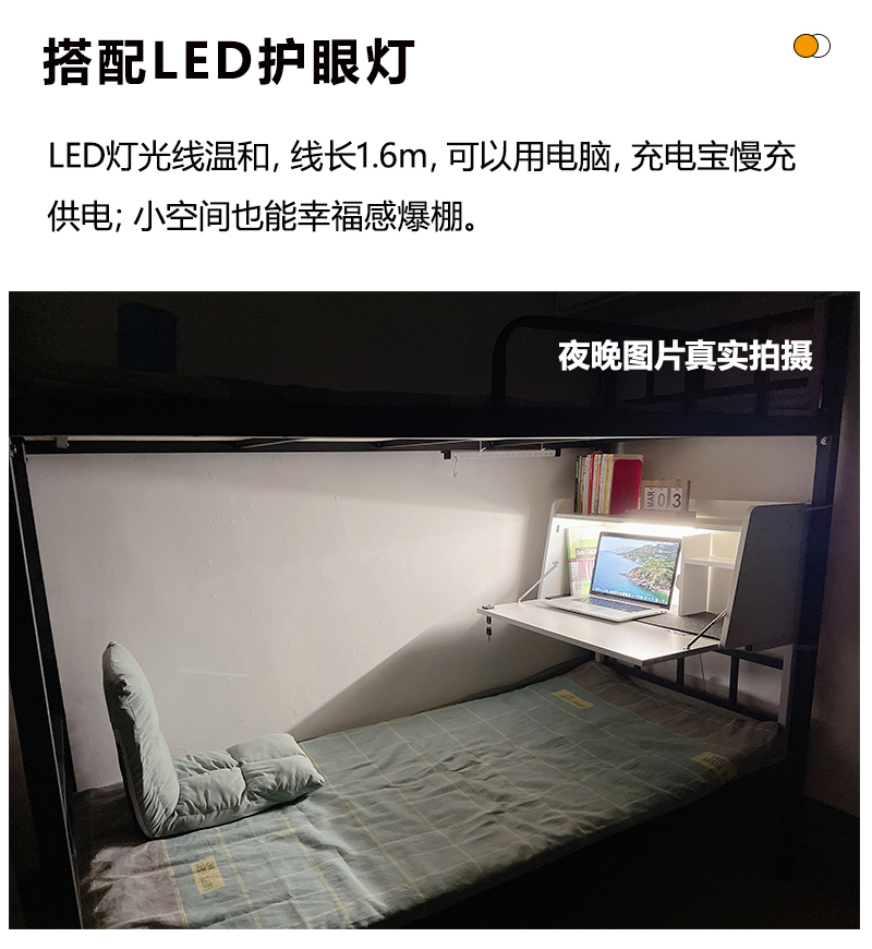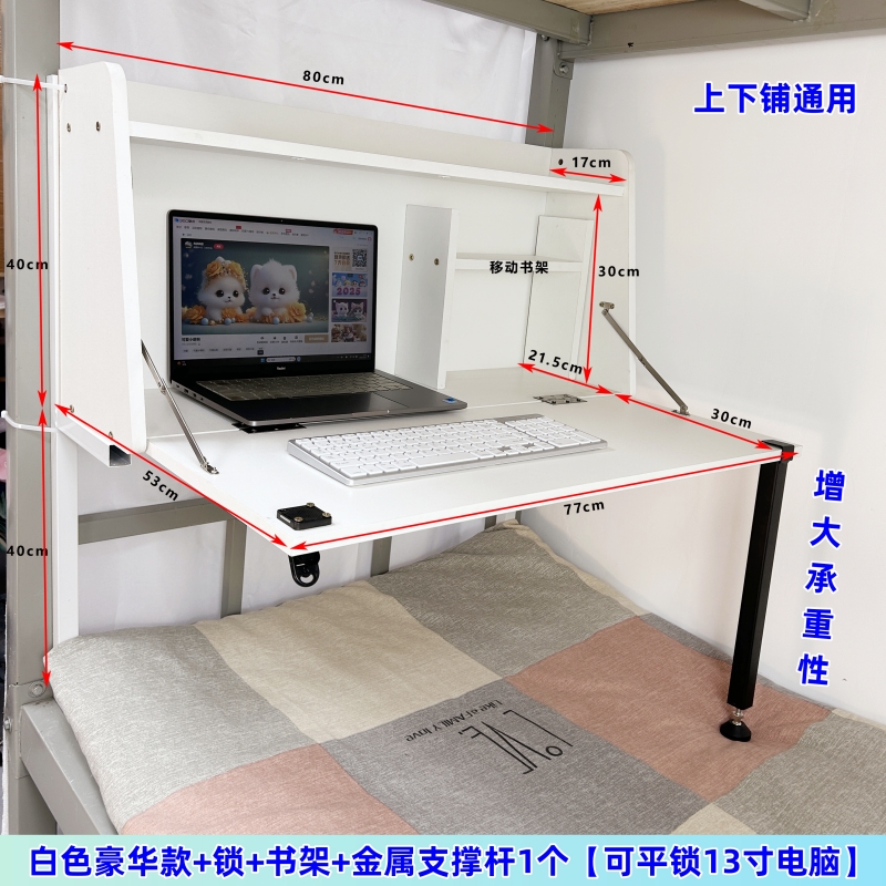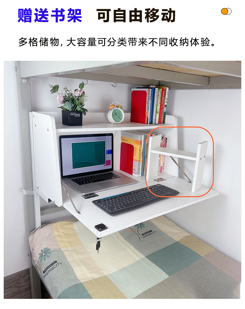 기숙사 침대 책상은 공중에 높이 들어올릴 수 있어 학생 기숙사의 하단 수납 공간을 확장할 수 있습니다. 학습용 접이식 컴퓨터 책상