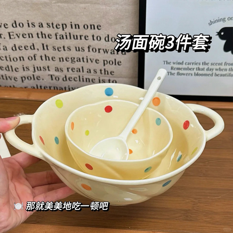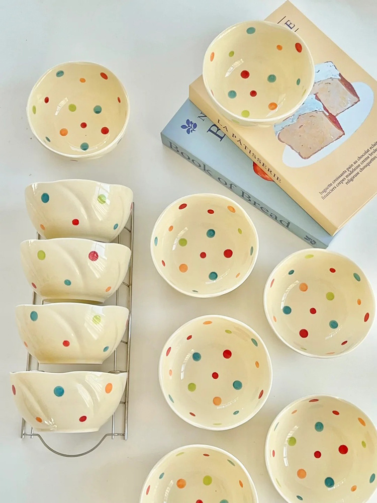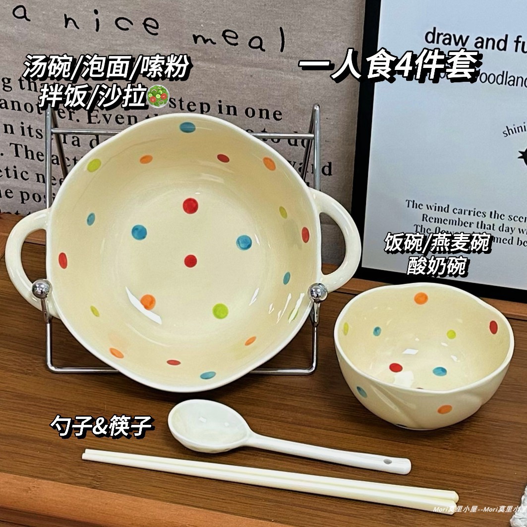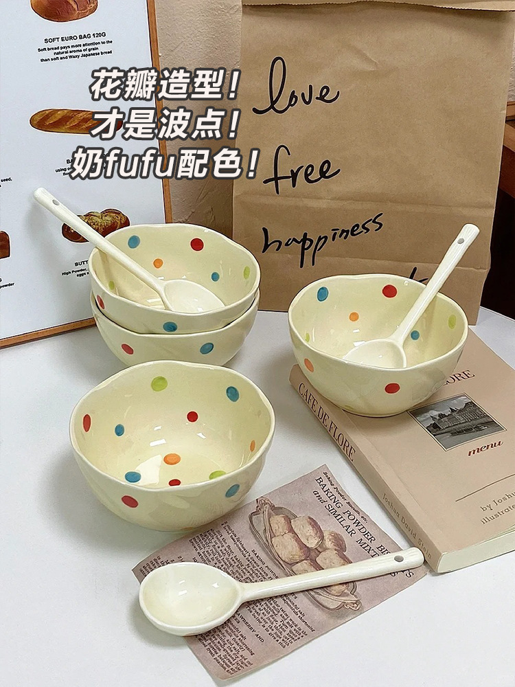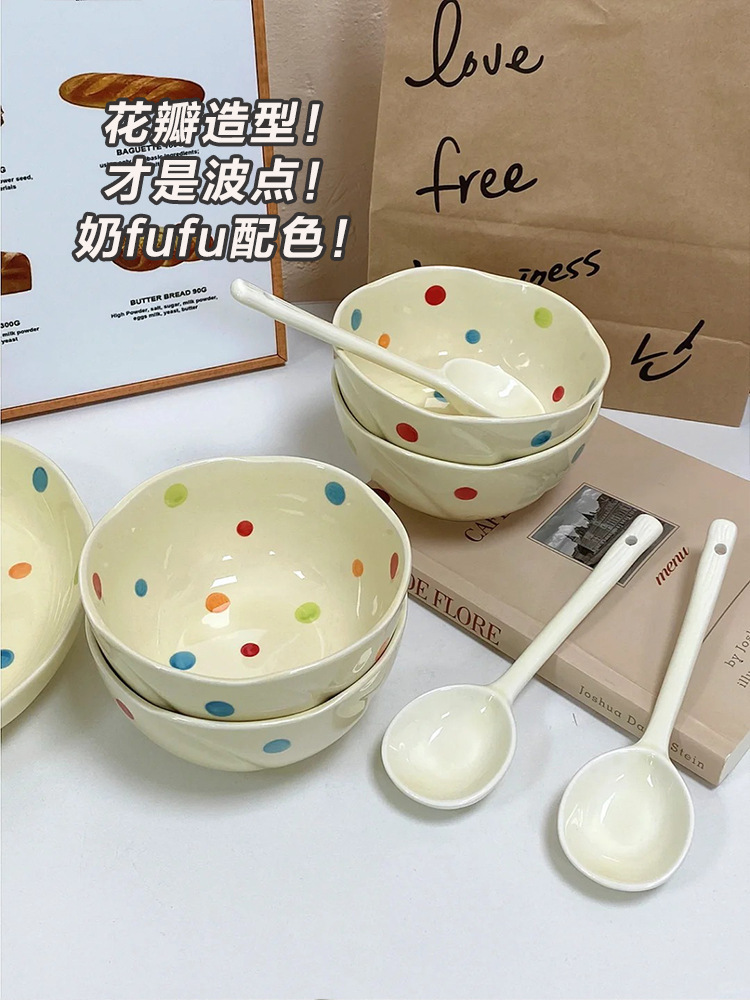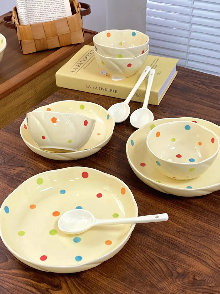 작은 빨간 책 폭발 추천 컬러 웨이브 도트 세라믹 식기 세트 높은 색상 가치 간단한 세라믹 그릇 수프 도매스토어 가기