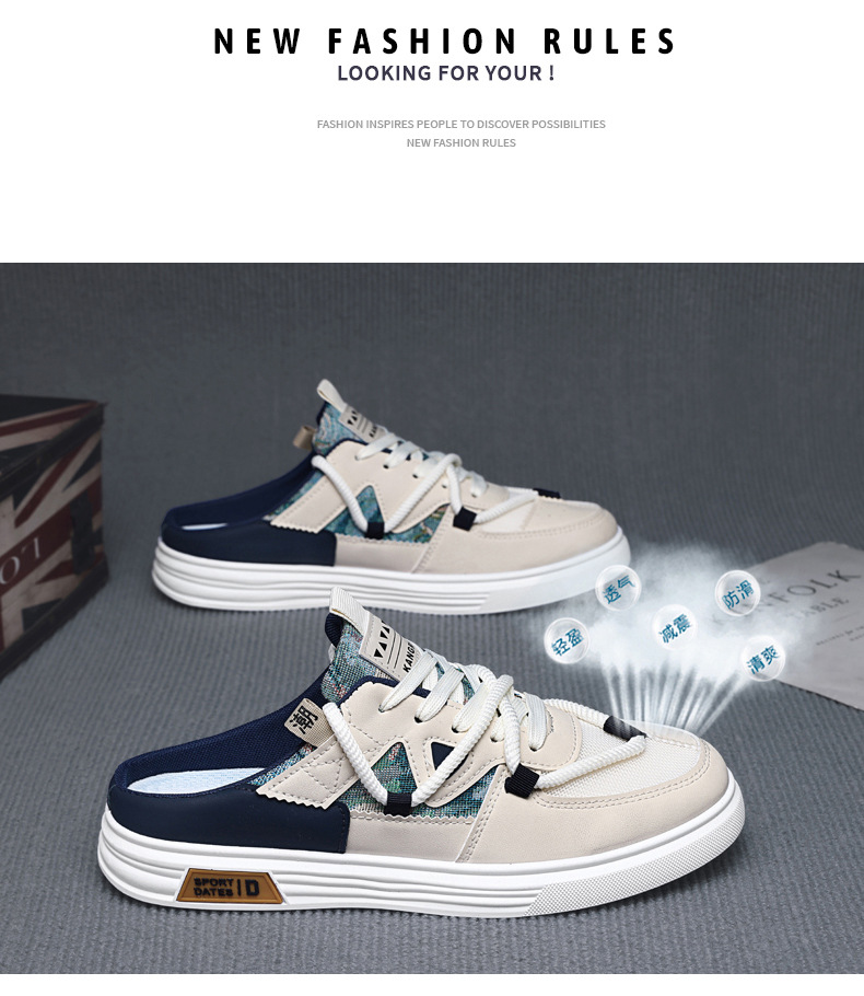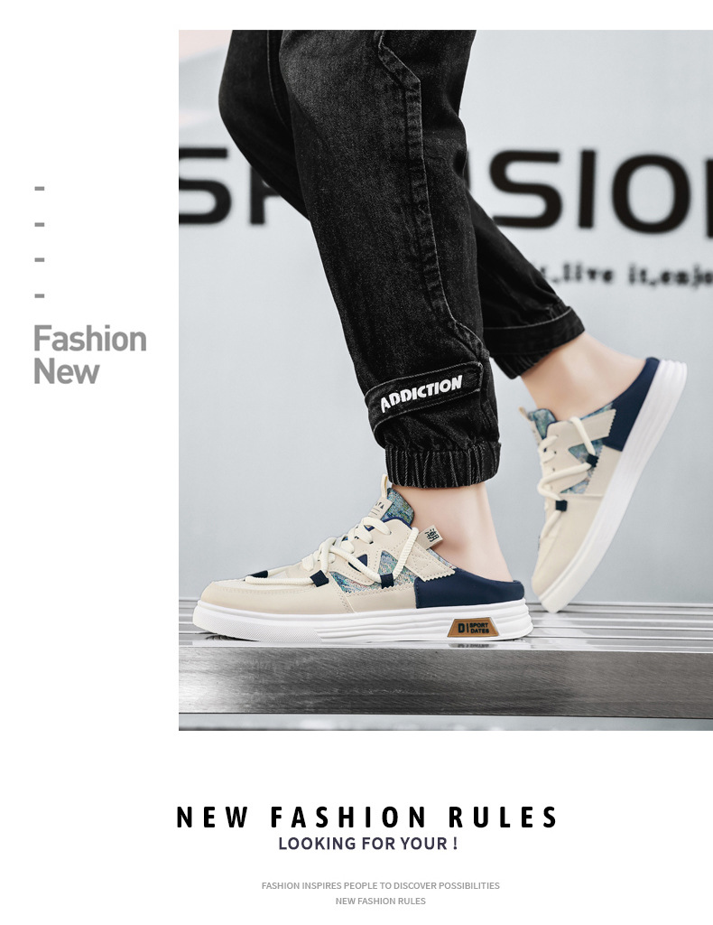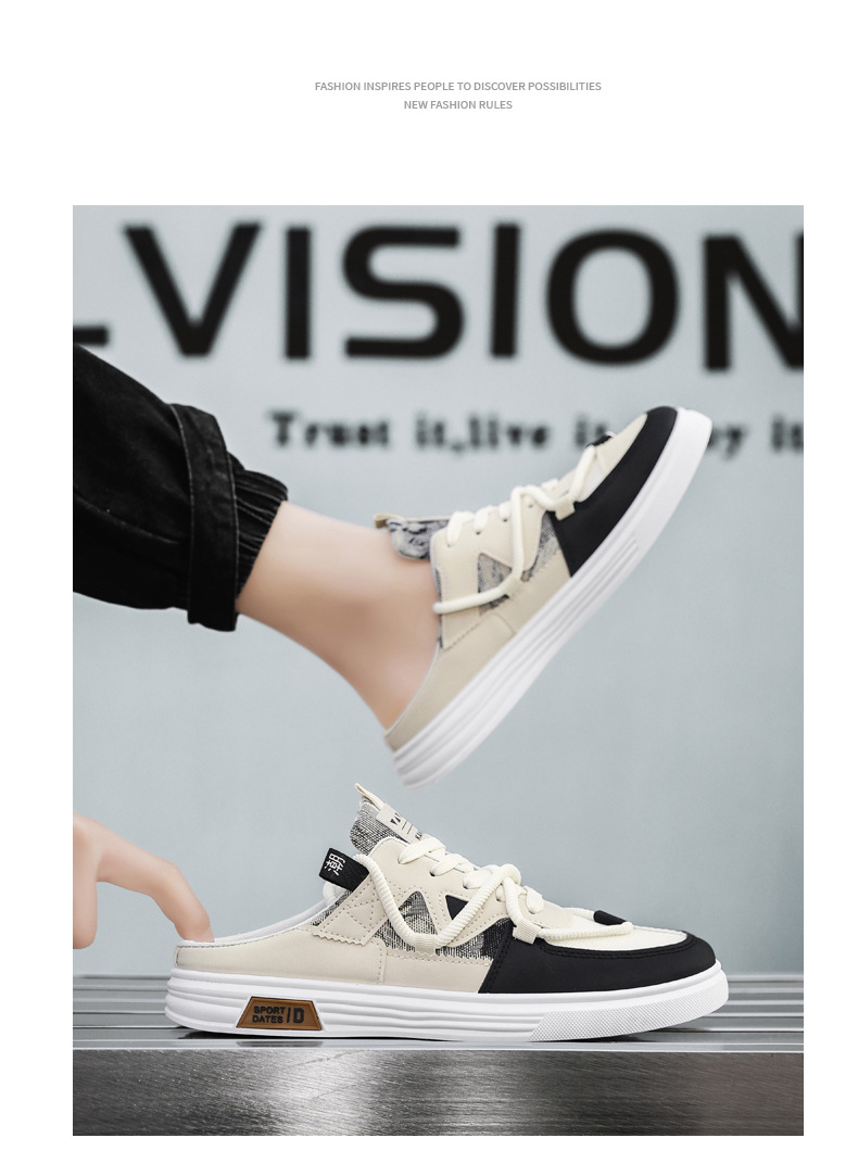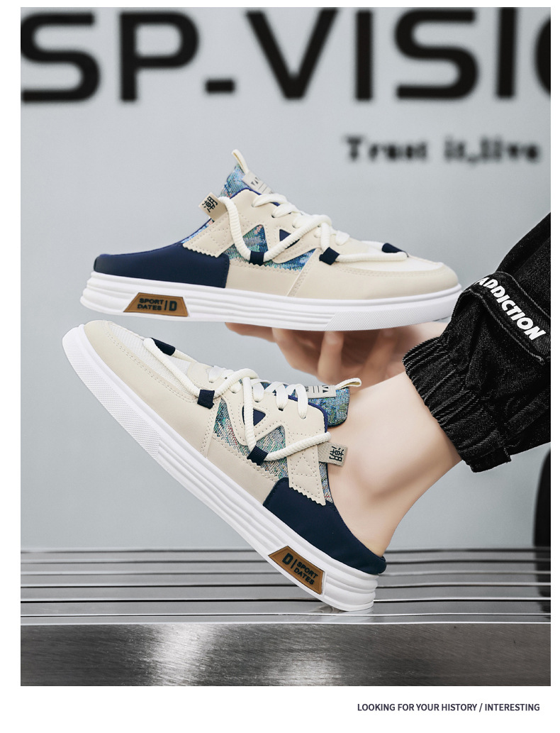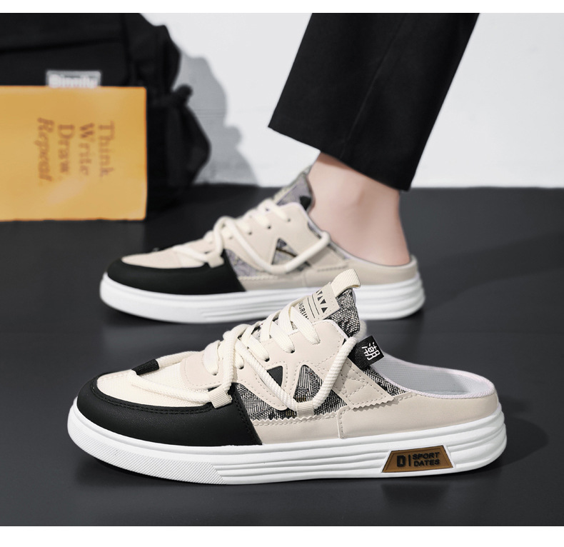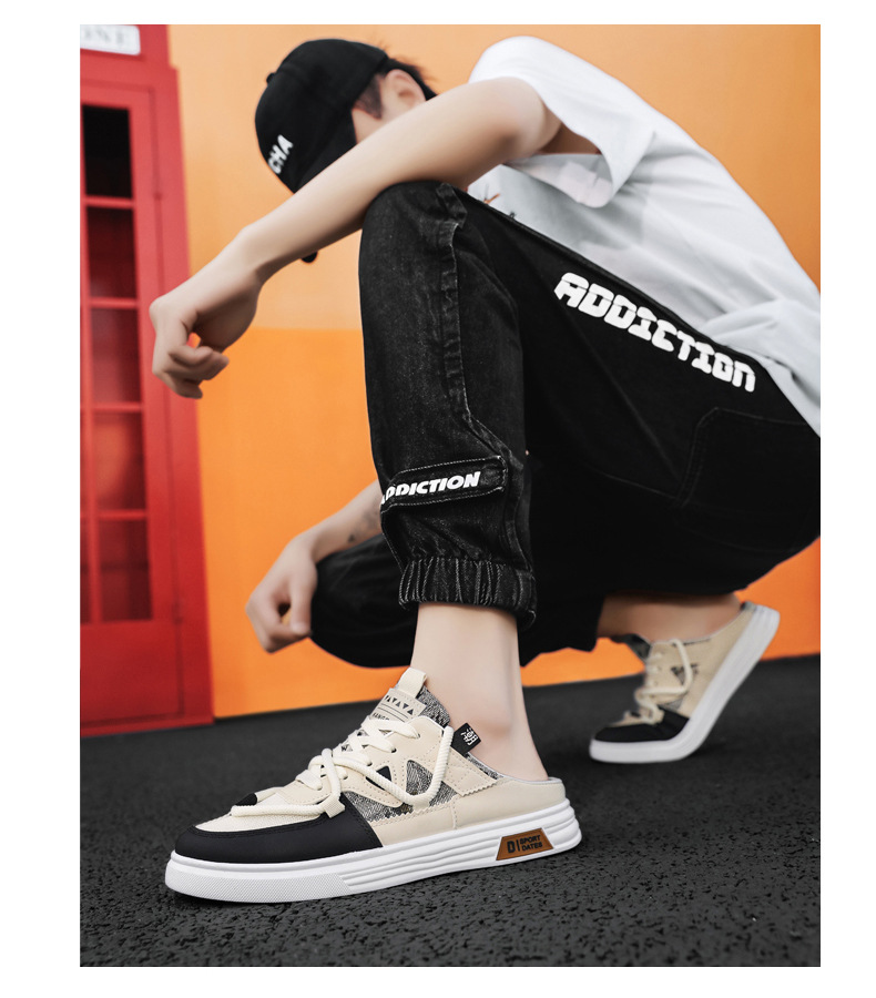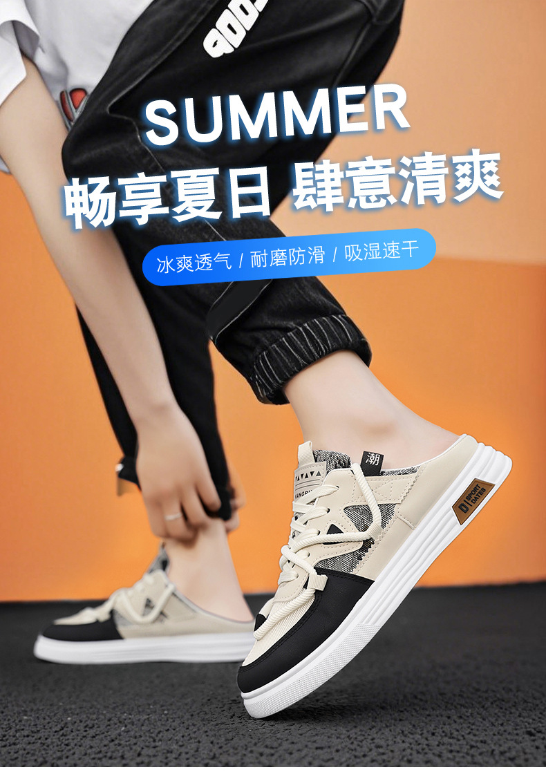 캔버스 신발 남자 2025 새로운 여름 외부 통기성 샌들 발 뒤꿈치가없는 스포츠 게으른 슬립 온 하프 슬리퍼스토어 가기
