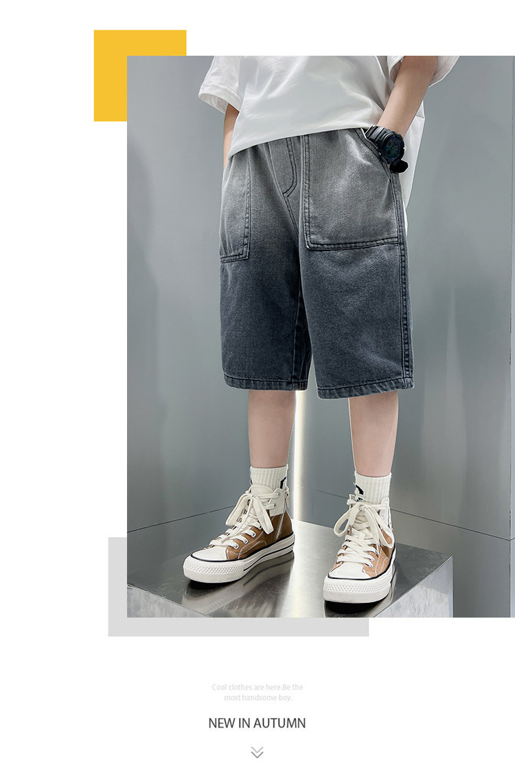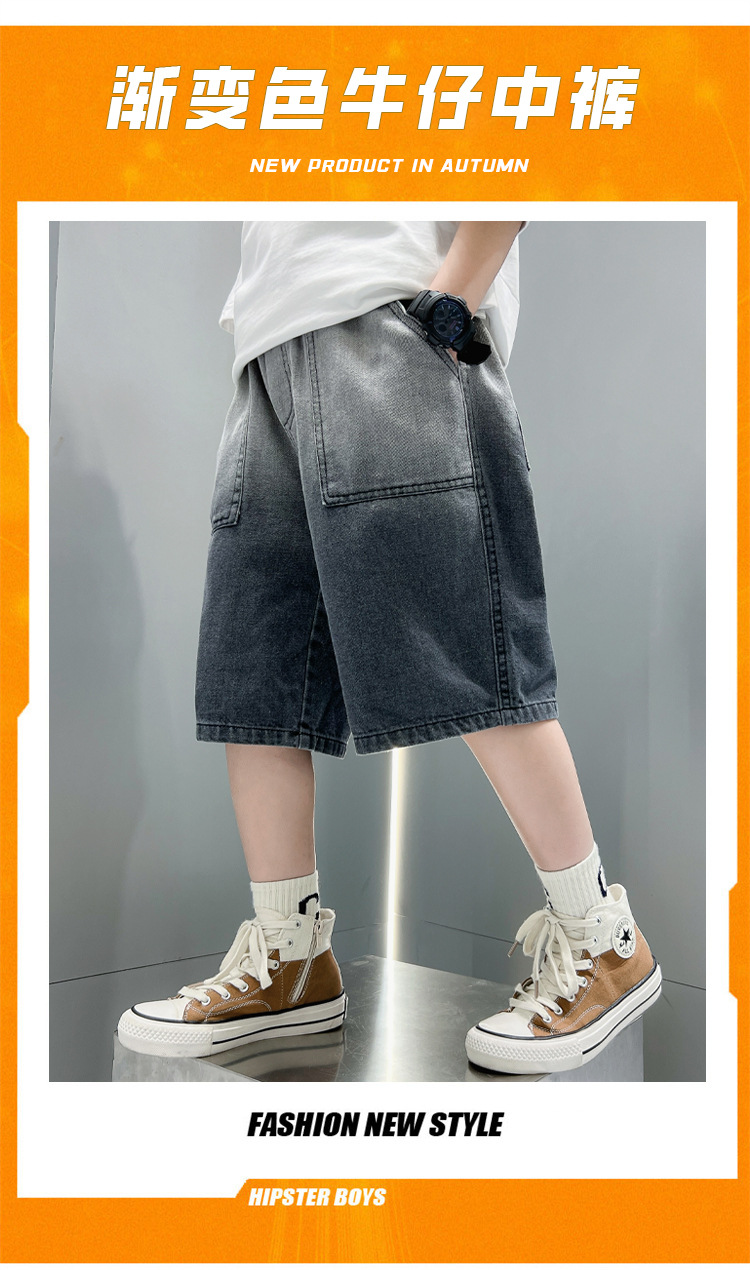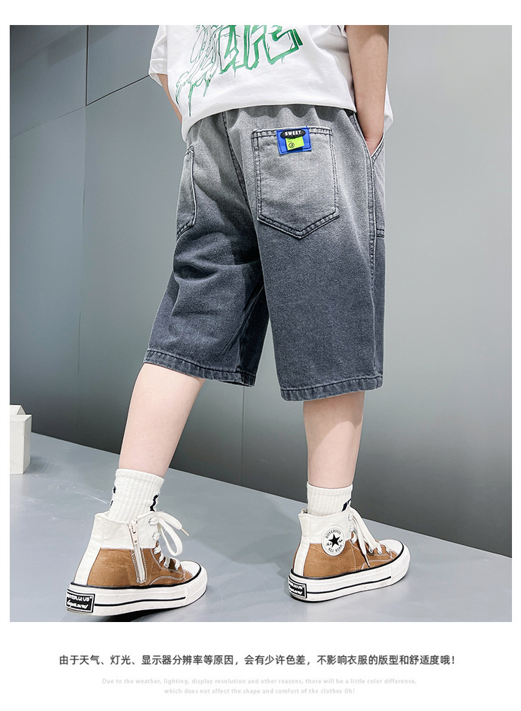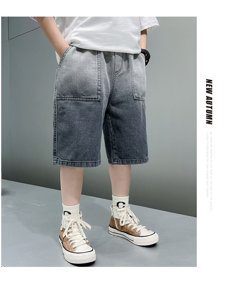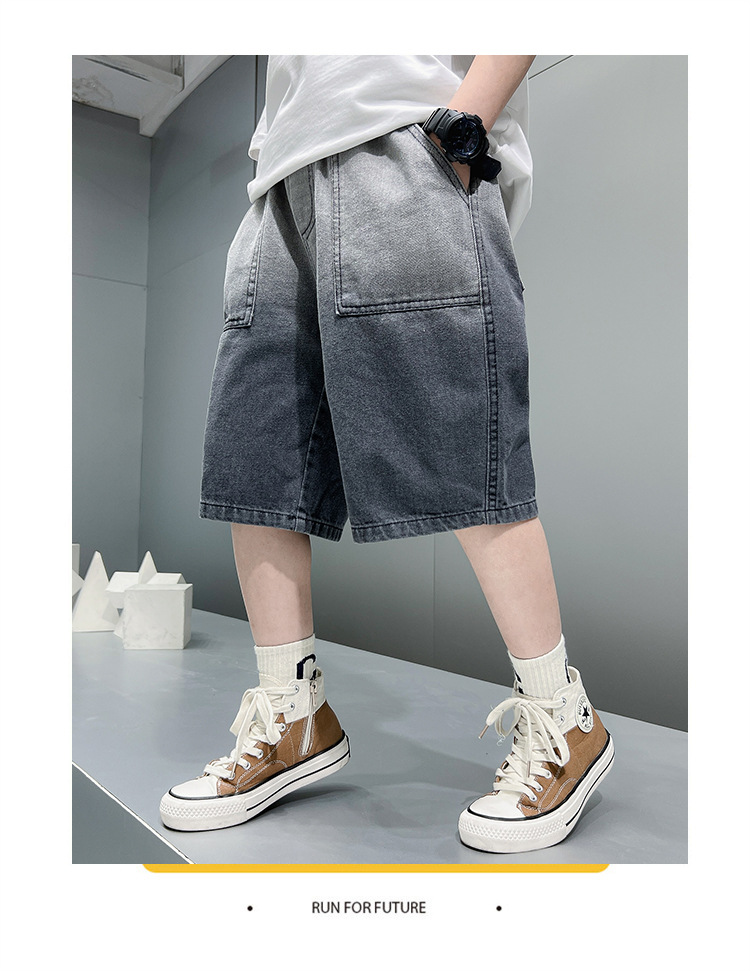 소년 데님 반바지 2025 여름 새로운 중대형 어린이 그라디언트 5 점 바지 얇은 잘 생긴 어린이 여름 바지스토어 가기