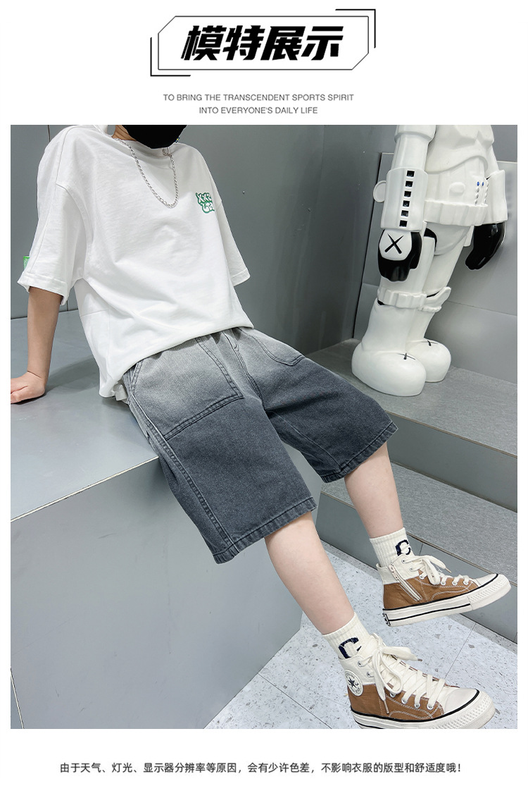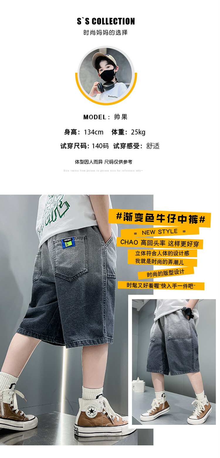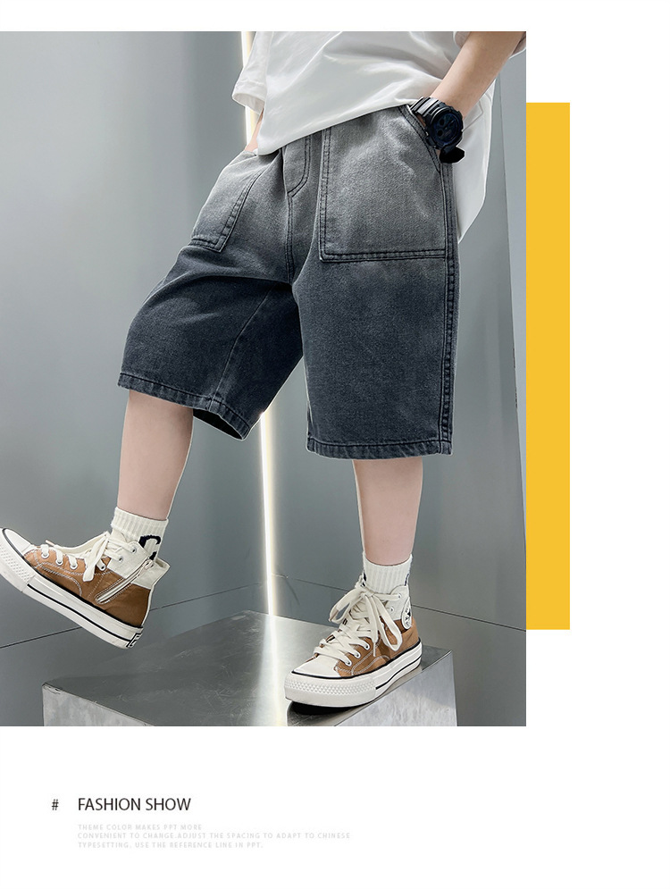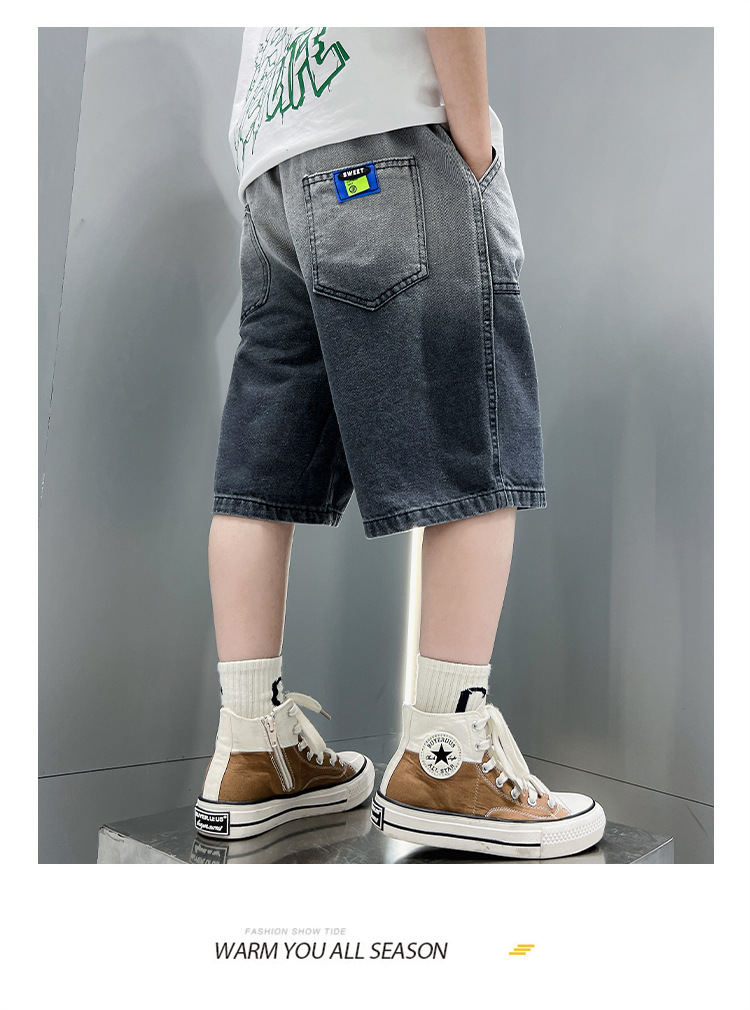 소년 데님 반바지 2025 여름 새로운 중대형 어린이 그라디언트 5 점 바지 얇은 잘 생긴 어린이 여름 바지스토어 가기