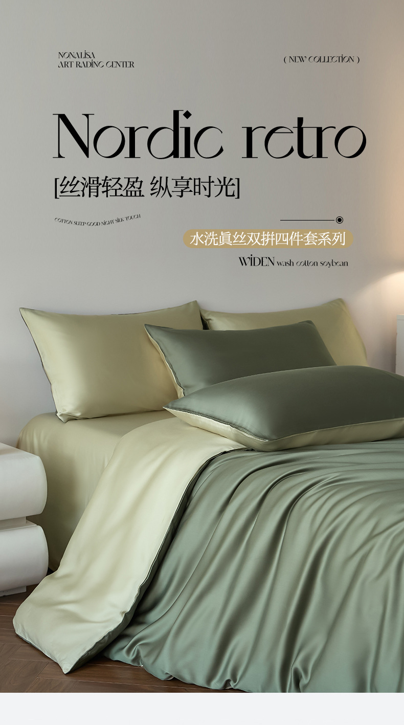 가벼운 고급 세척 실크 4 조각 세트 아이스 실크 침대 시트 퀼트 커버 이불 커버 높은 수준의 알몸 침구 침구 여름