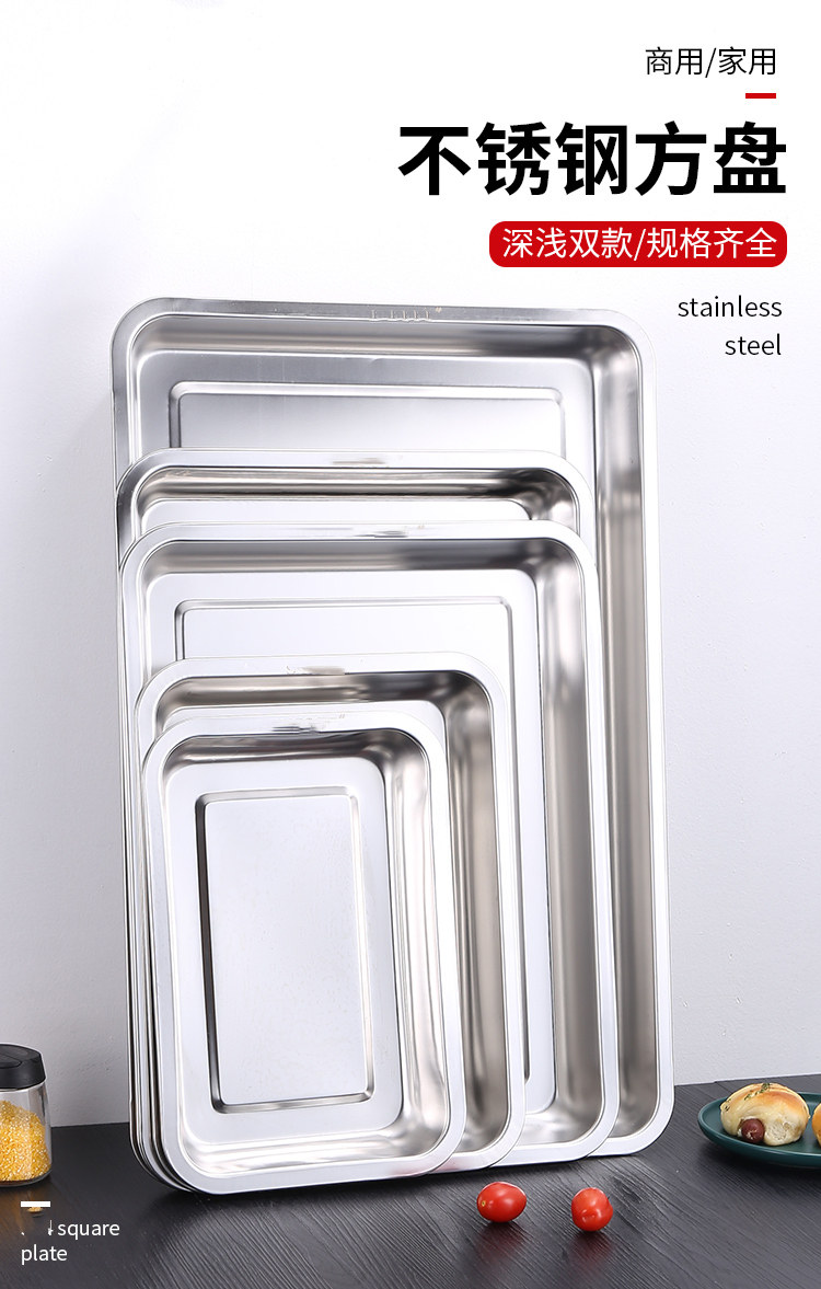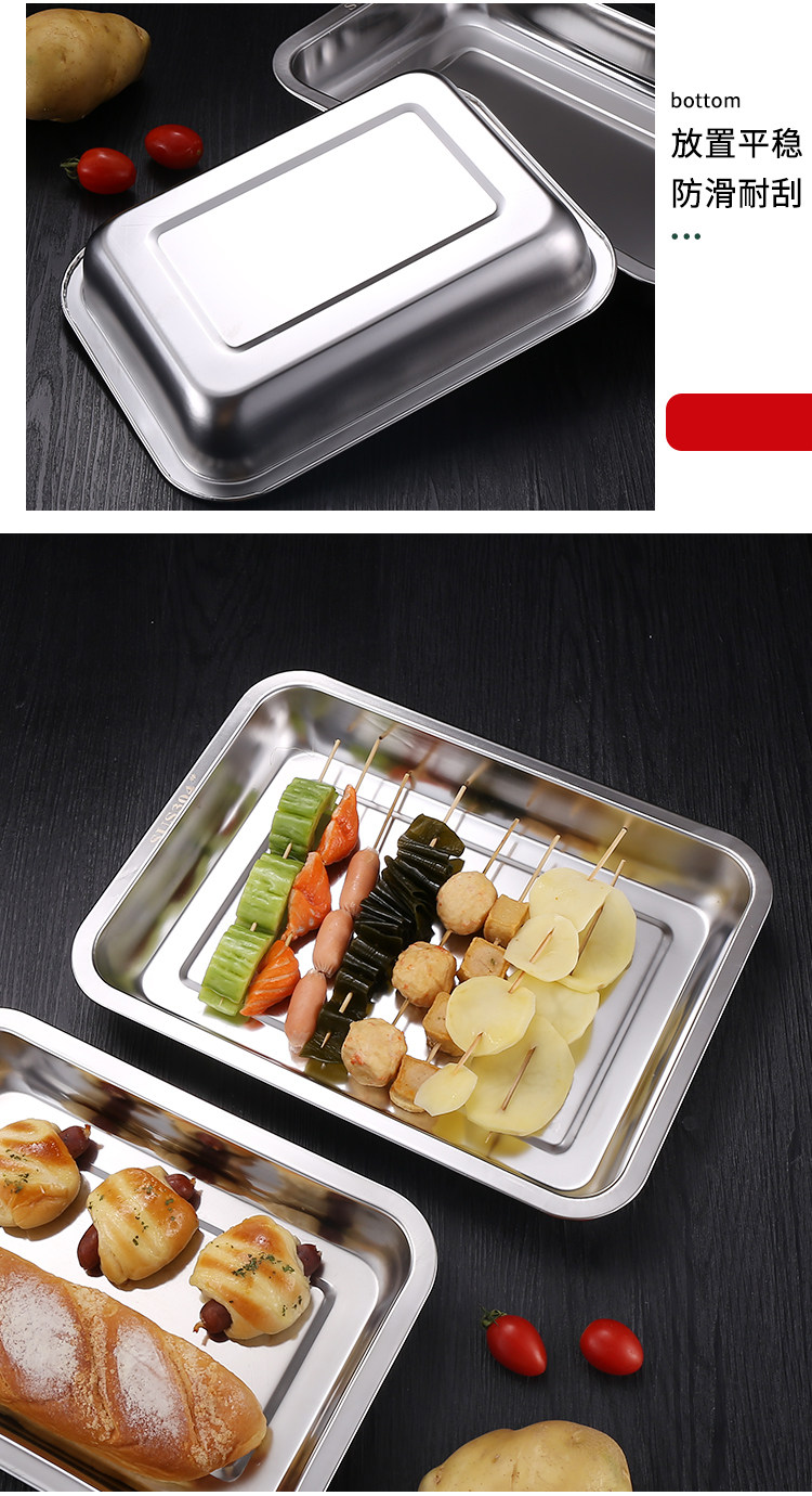 08 자석이 있는 두꺼운 디너 플레이트, 스테인레스 스틸 직사각형 트레이, 사각 플레이트, 바베큐 플레이트, 밥찜 플레이트, 라이스 롤 플레이트, 가정용