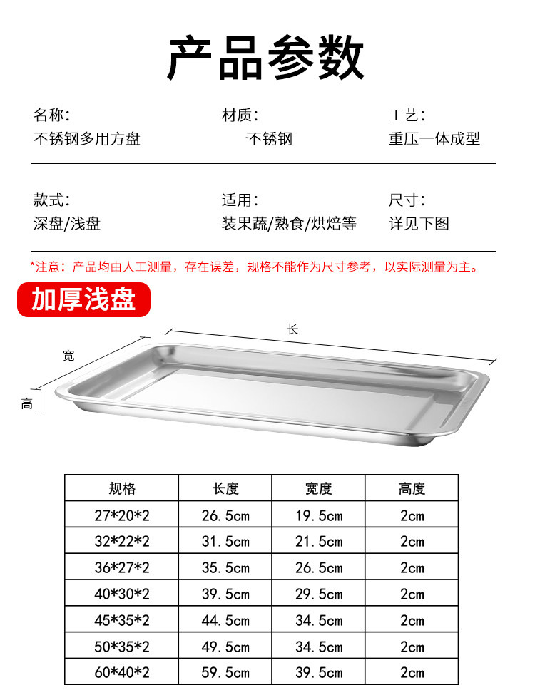 08 자석이 있는 두꺼운 디너 플레이트, 스테인레스 스틸 직사각형 트레이, 사각 플레이트, 바베큐 플레이트, 밥찜 플레이트, 라이스 롤 플레이트, 가정용스토어 가기