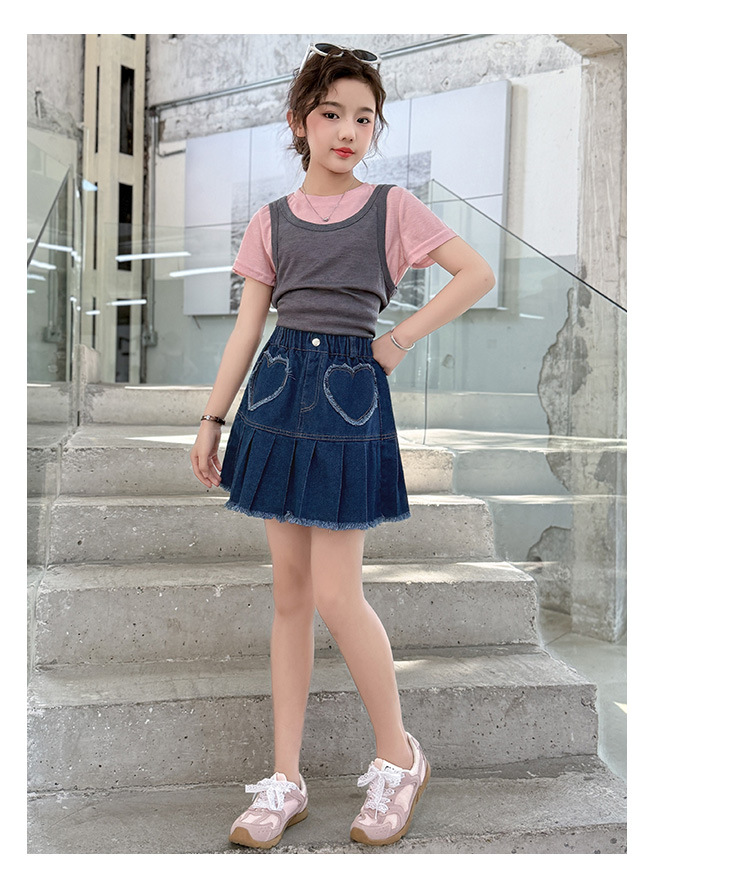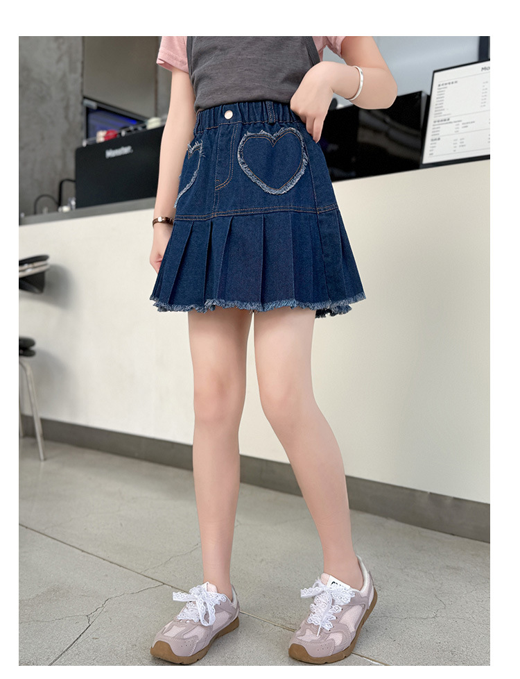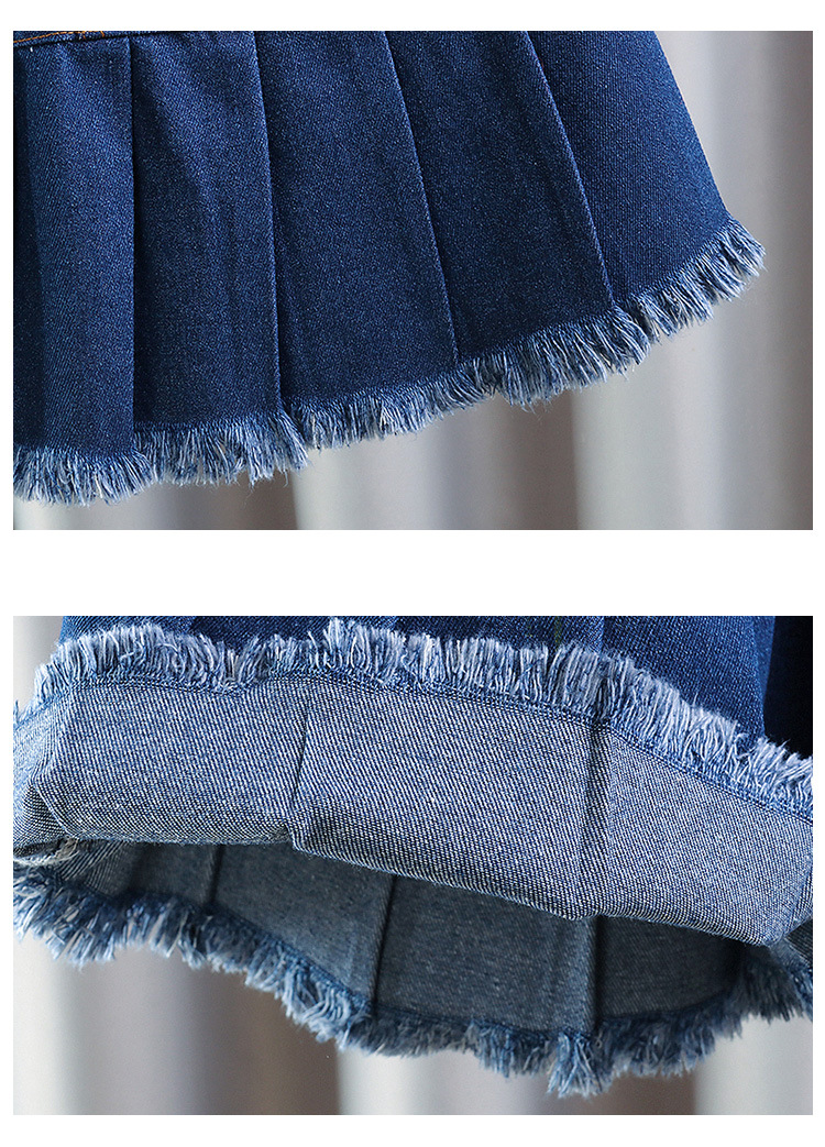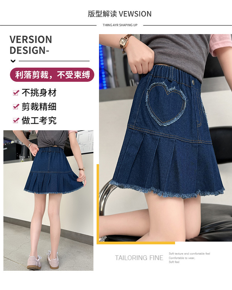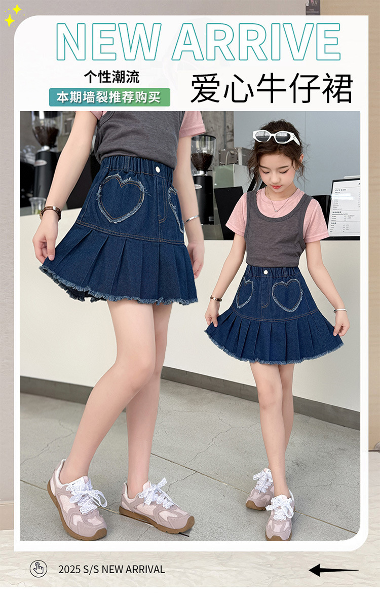 여아 데님 스커트, 패셔너블한 2025년 여름 신상 스타일, 중대형 아동용 패셔너블 플리츠 스커트, 아동용 여름 스커트스토어 가기