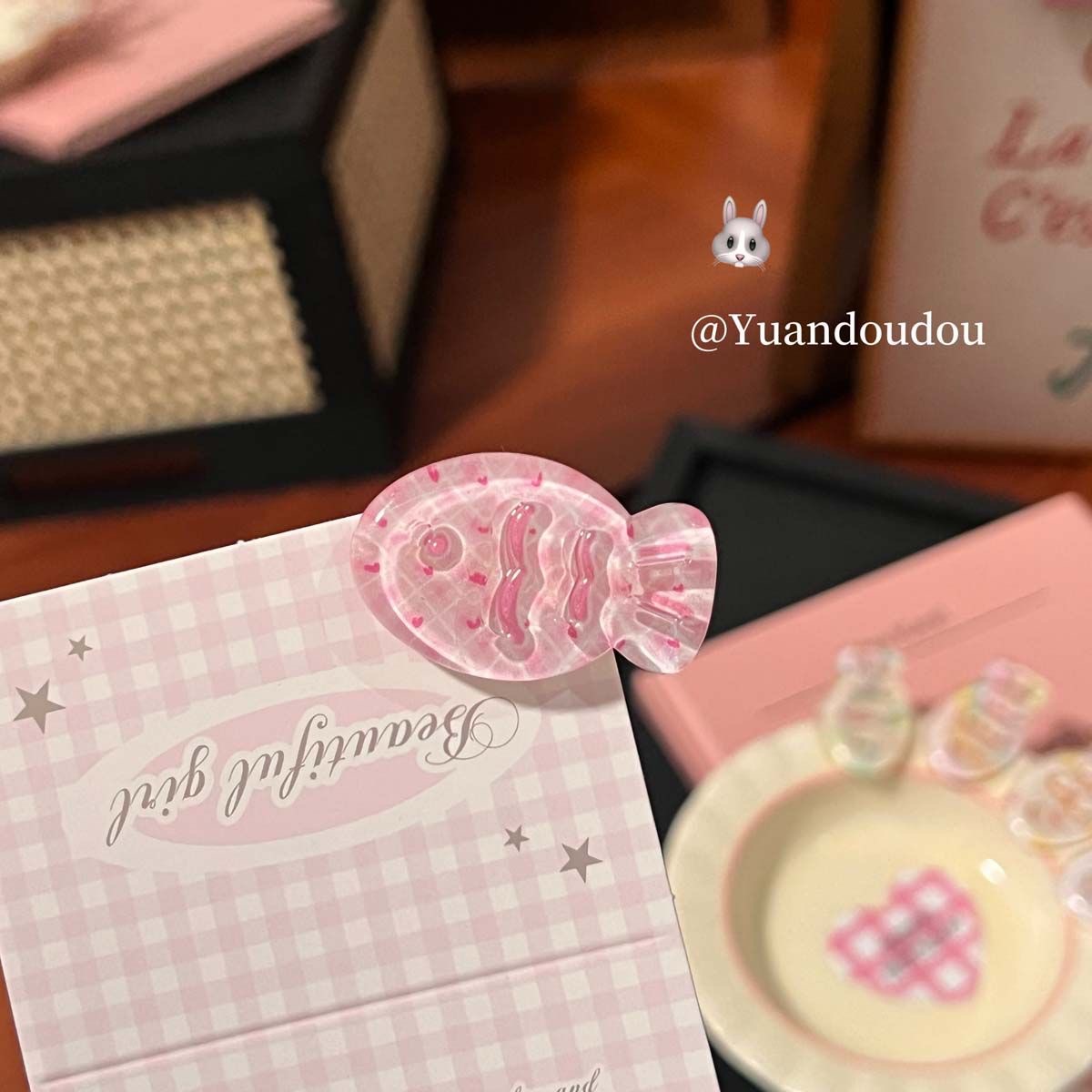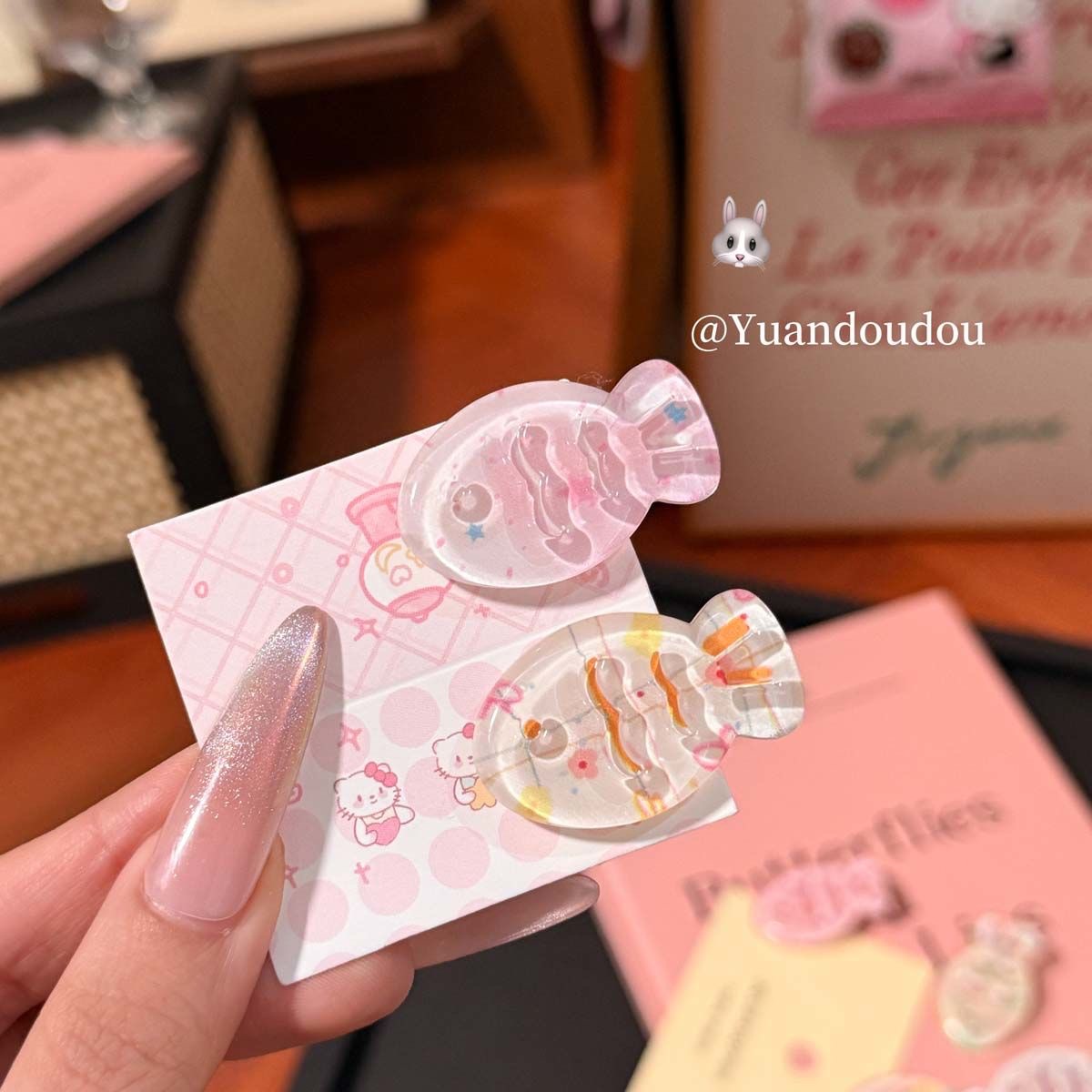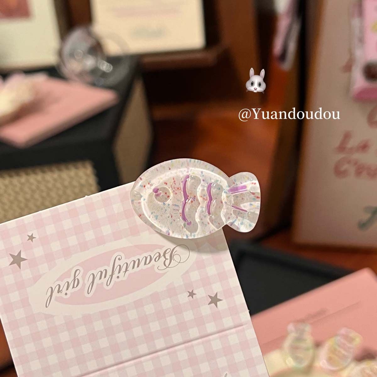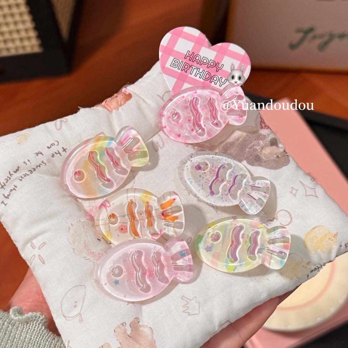 귀여운 패턴 클리어 머리핀 빛나는 여름 맑은 물고기 방귀 만화 여성을위한 모든 경기 소녀의 머리스토어 가기