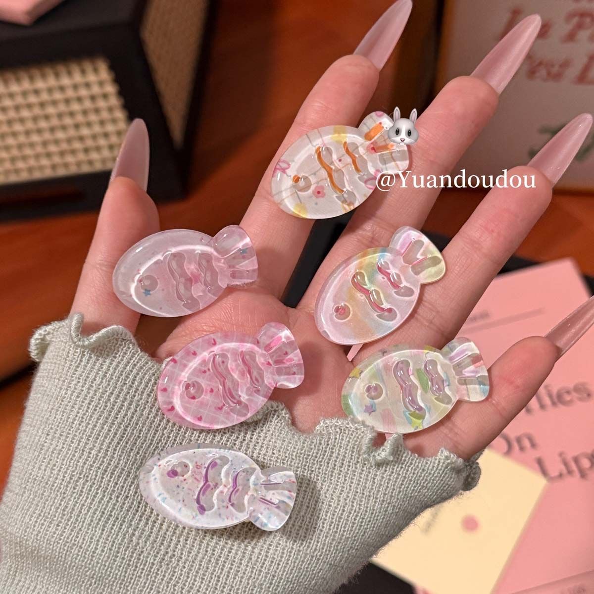 귀여운 패턴 클리어 머리핀 빛나는 여름 맑은 물고기 방귀 만화 여성을위한 모든 경기 소녀의 머리