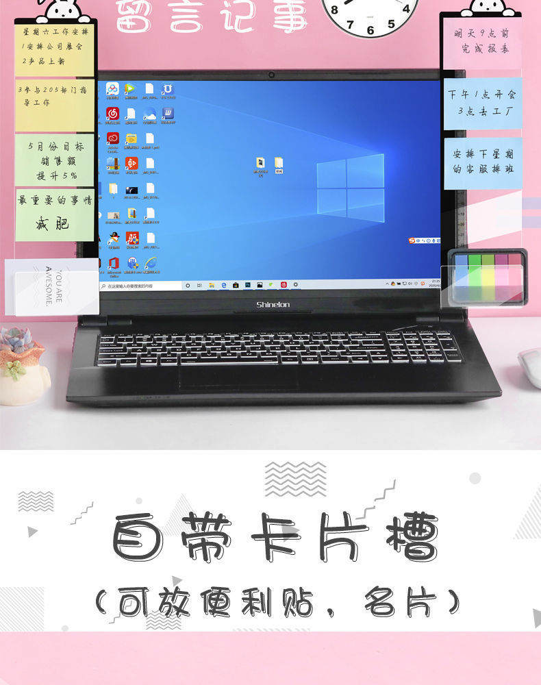 컴퓨터, 메시지 보드, 사이드 폴더, 메모 라벨, 스티커 보드, 사무실 책상, 모니터, 사이드 노트 옆에