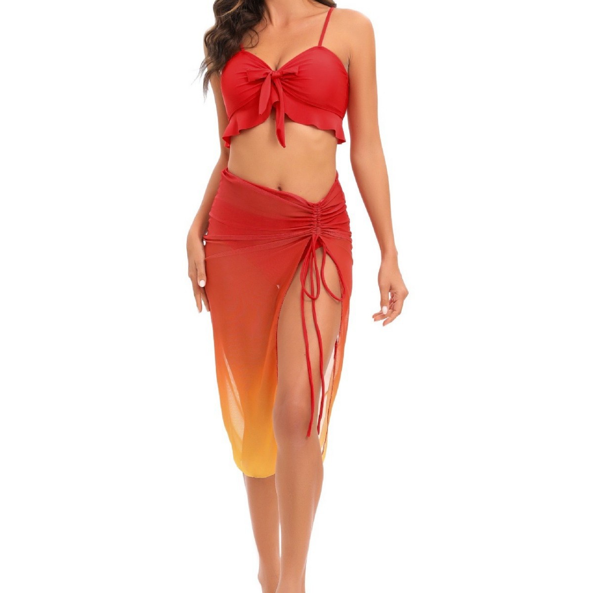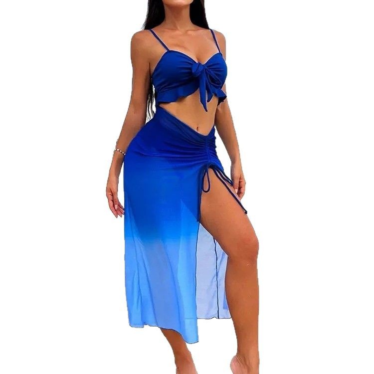 2025 새로운 스타일 스플릿 3 피스 보수적 인 비키니 스커트 메쉬 섹시한 유럽과 미국의 아마존 스타일 수영복 도매스토어 가기