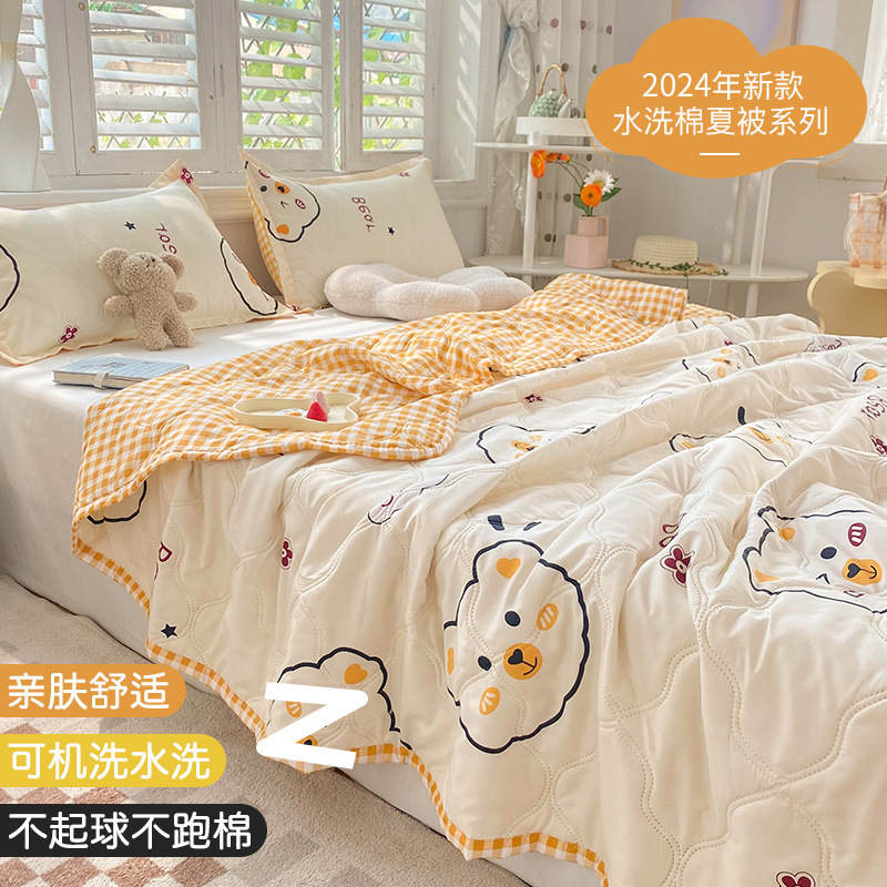 여름 이불 더블 에어컨 이불 가정용 워시 코튼 얇은 여름 이불 기숙사 싱글 이불 코어 세탁기로 세탁 가능