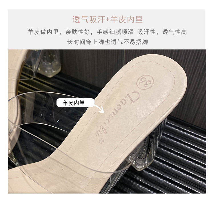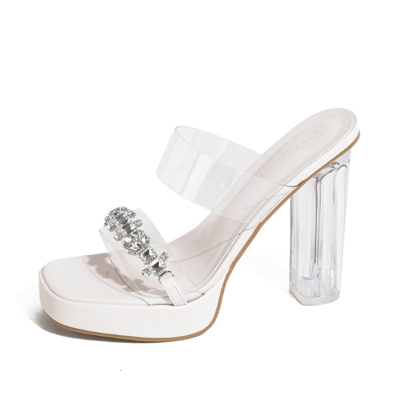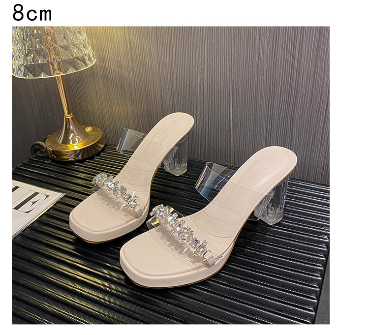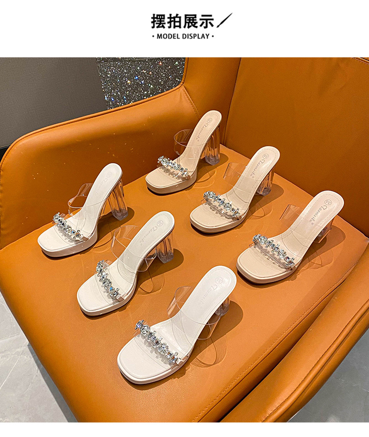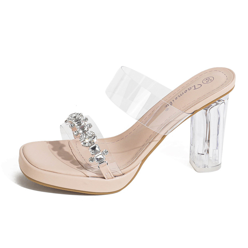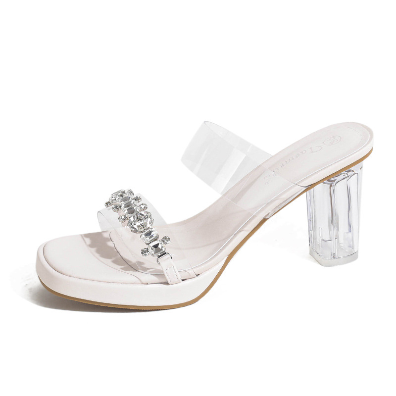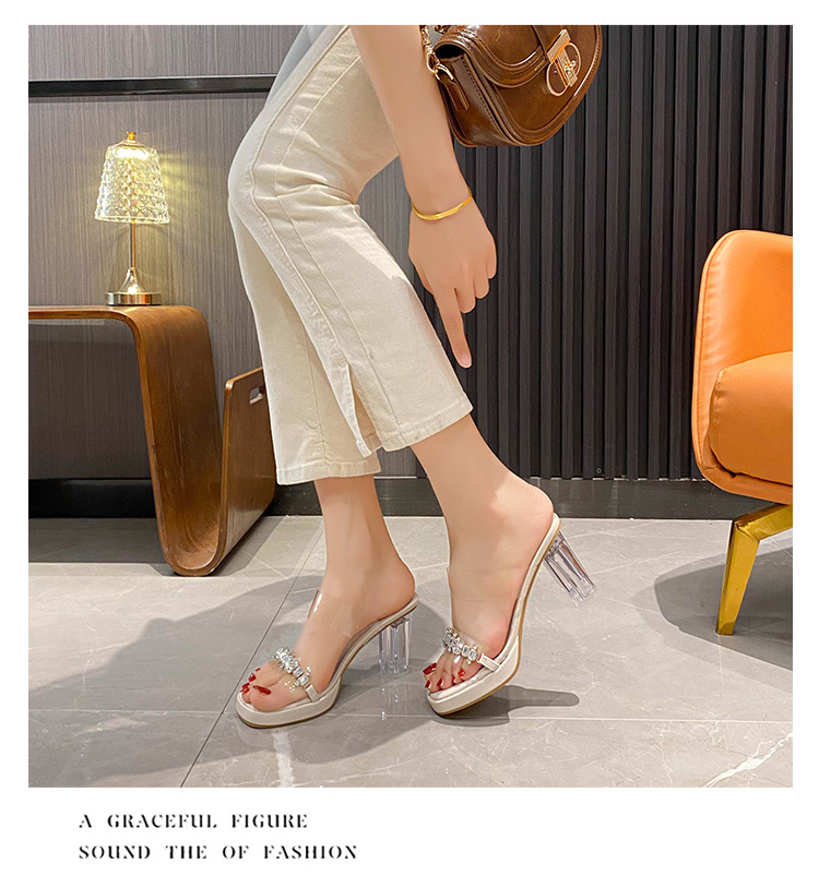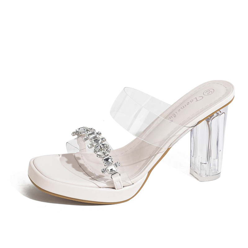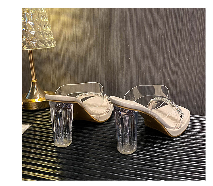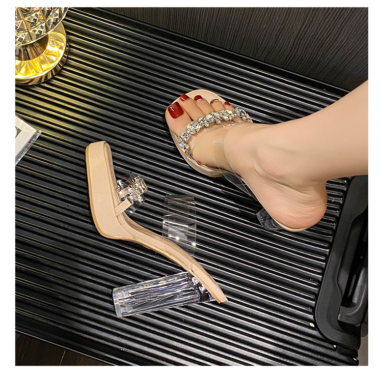 샌들과 슬리퍼 여성용 Ins 트렌디 한 여름 사이버 연예인 투명 오픈 발가락 하이힐 프렌치 스타일 우아한 라인스톤 슬리퍼 사이버 연예인