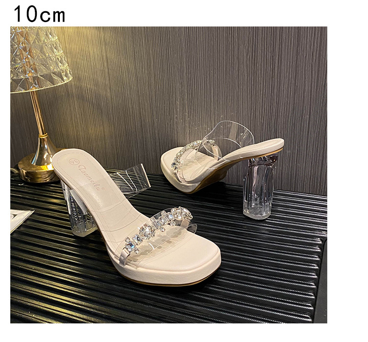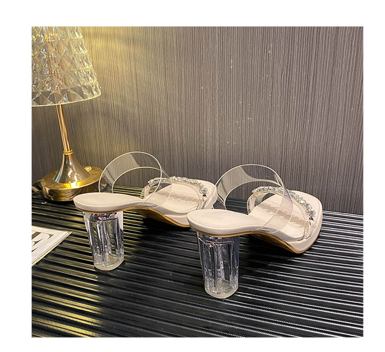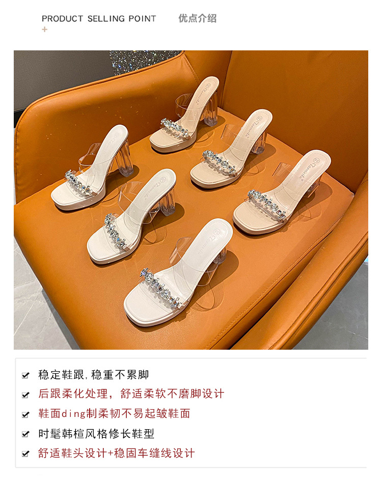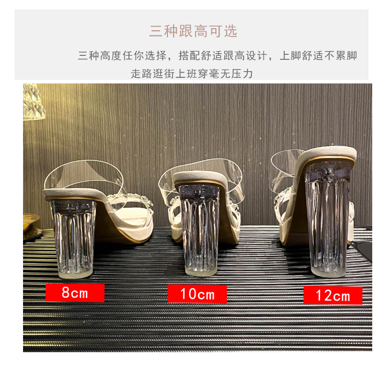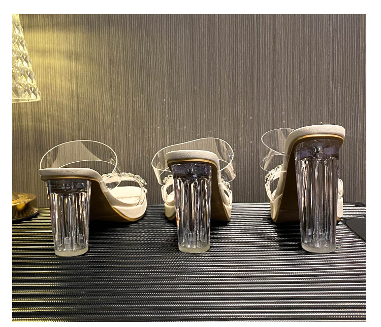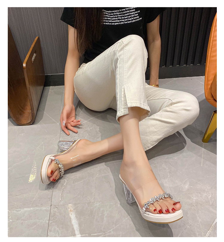샌들과 슬리퍼 여성용 Ins 트렌디 한 여름 사이버 연예인 투명 오픈 발가락 하이힐 프렌치 스타일 우아한 라인스톤 슬리퍼 사이버 연예인스토어 가기