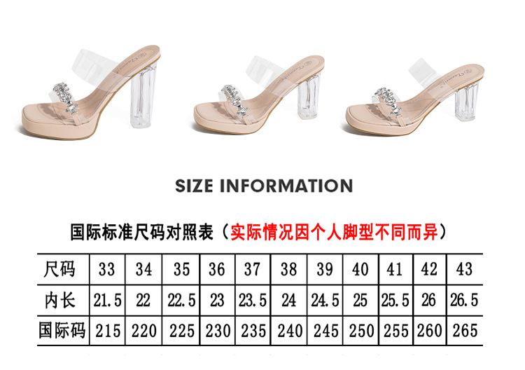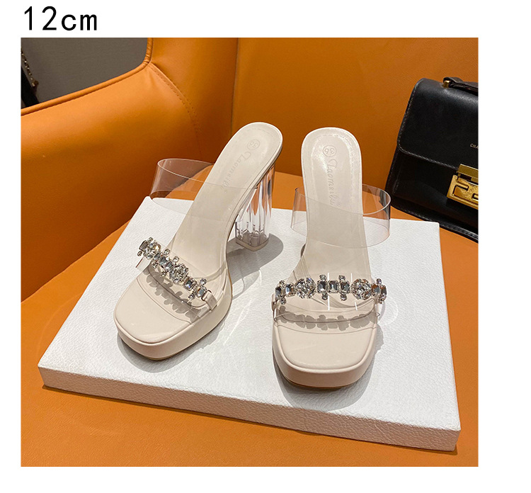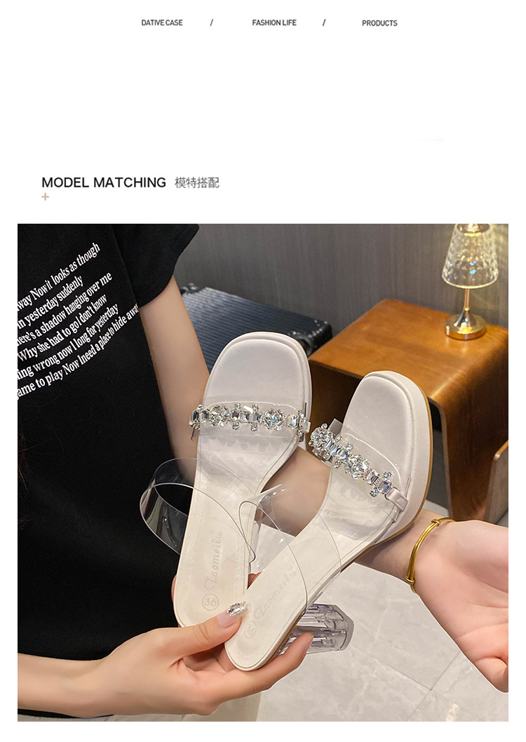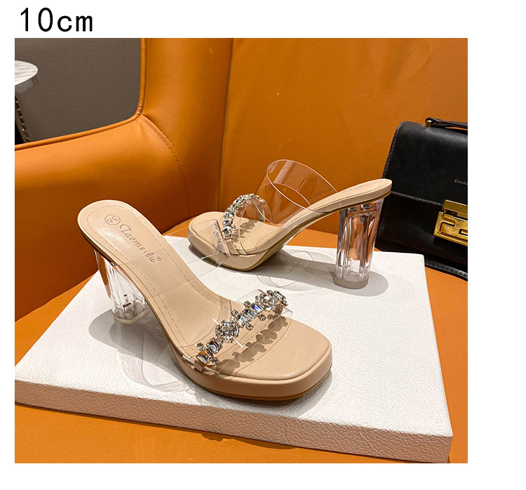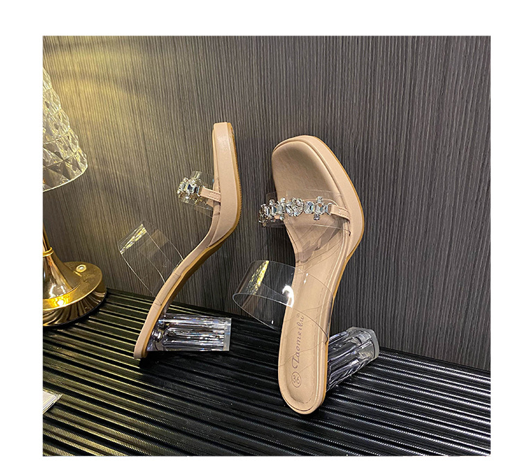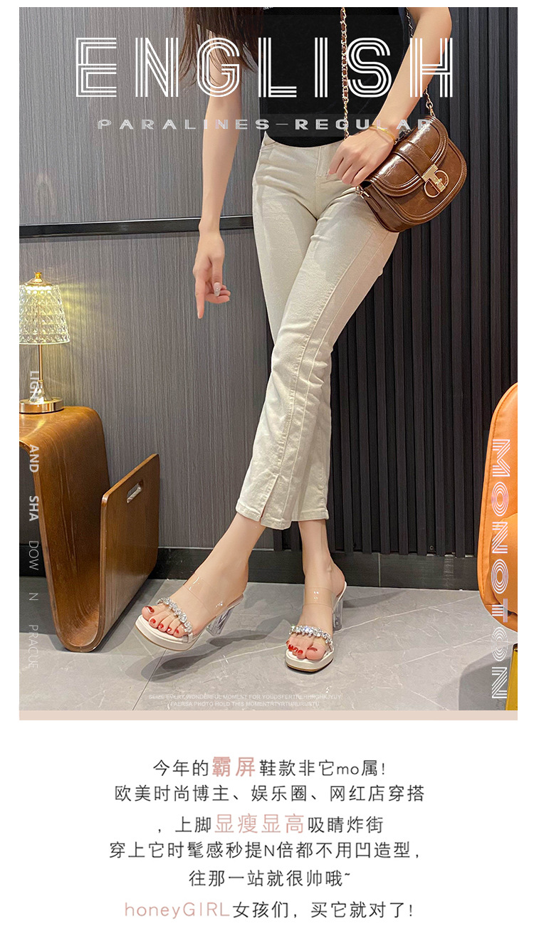 샌들과 슬리퍼 여성용 Ins 트렌디 한 여름 사이버 연예인 투명 오픈 발가락 하이힐 프렌치 스타일 우아한 라인스톤 슬리퍼 사이버 연예인스토어 가기